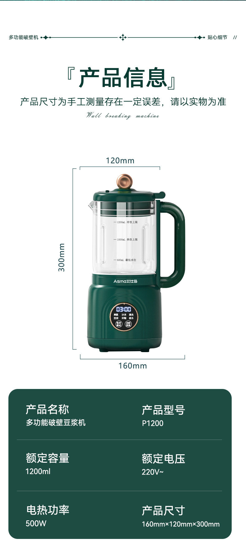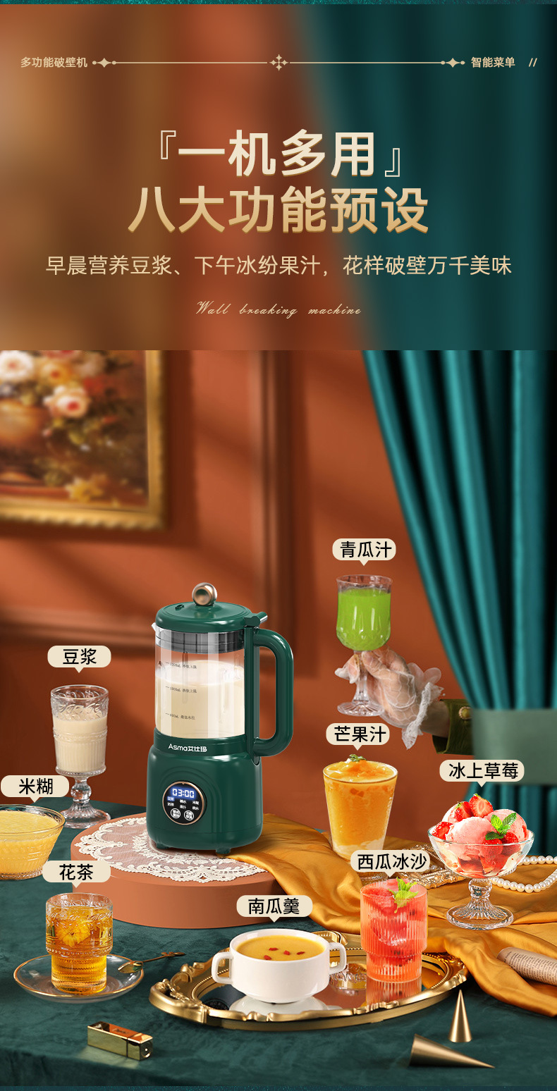 Ashma 난방 및 끓는 필터가없는 자동 다기능 고출력 주스 기계 벽 깨는 기계 가정용 대두 우유 기계스토어 가기