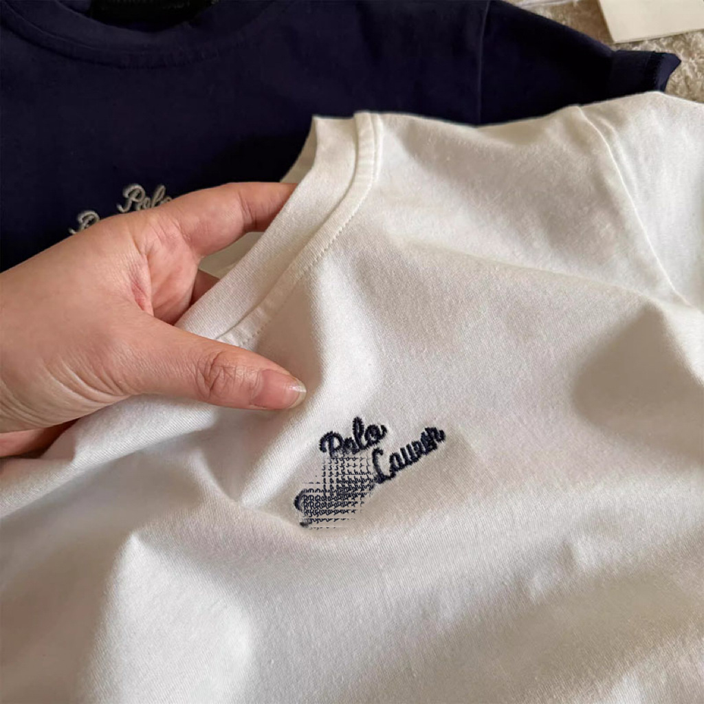 순수 코튼 어린이 반팔 티셔츠 여름 2025 새로운 다목적 패션 트렌디 브랜드 자수 캐주얼 탑 소년과 소녀스토어 가기