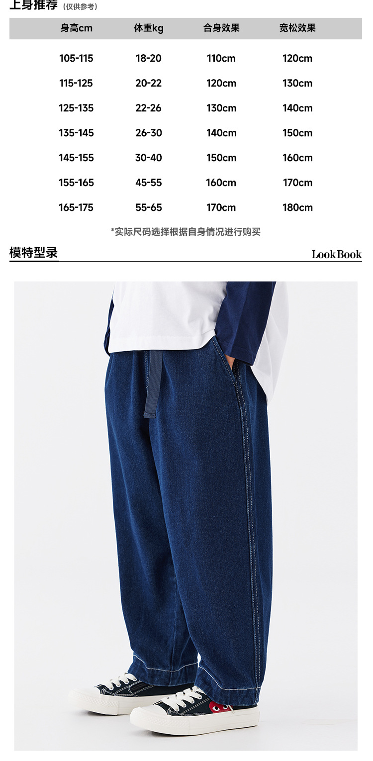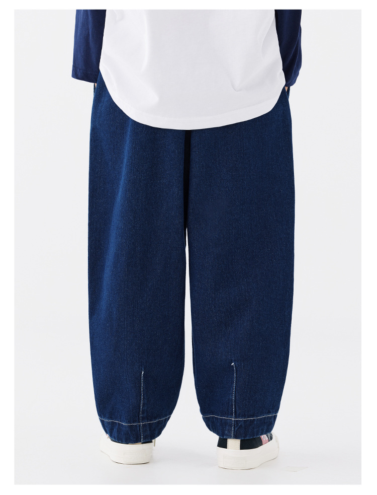 EK 아동복 간단한 단색 소년 서양식 데님 바지 느슨한 보라색 라벨 올매치 대형 어린이 트렌디 쿨 롱 바지
