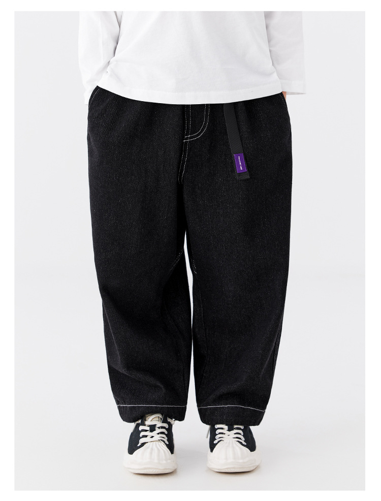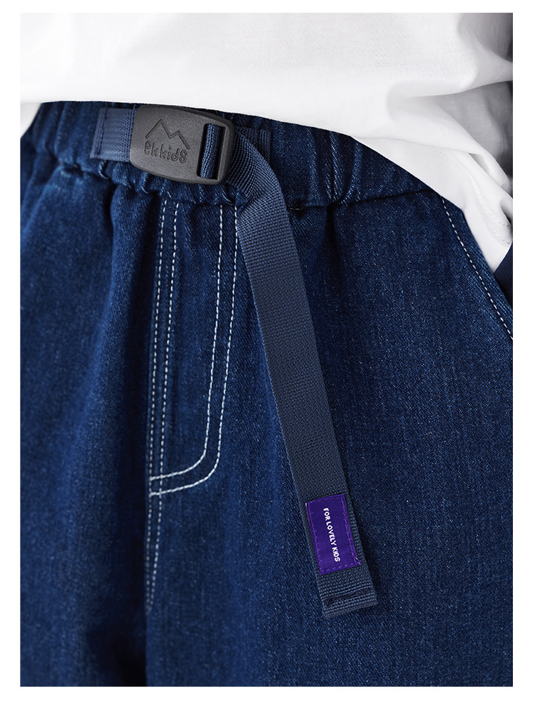 EK 아동복 간단한 단색 소년 서양식 데님 바지 느슨한 보라색 라벨 올매치 대형 어린이 트렌디 쿨 롱 바지스토어 가기