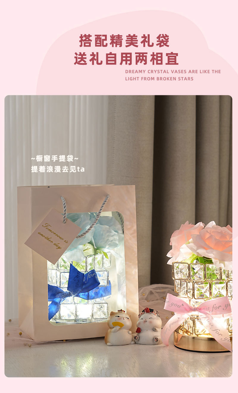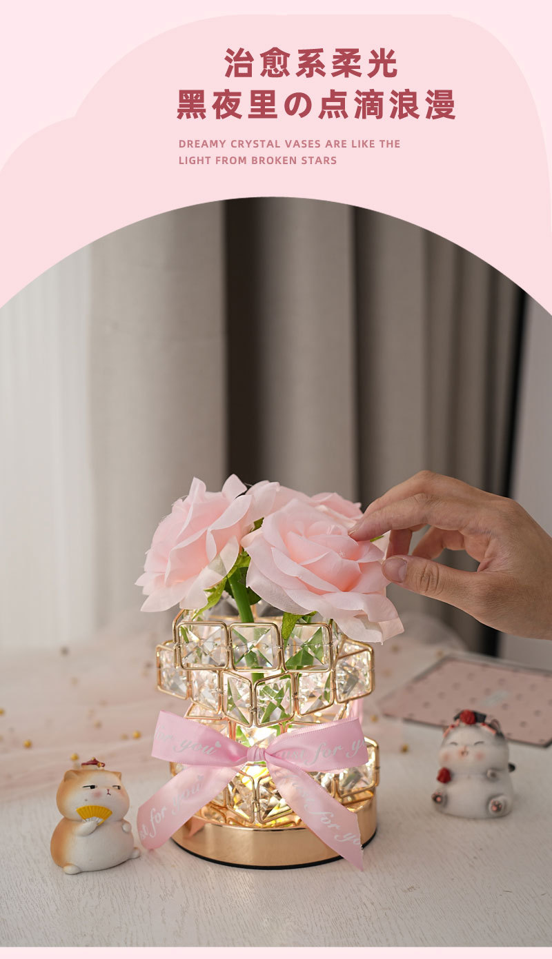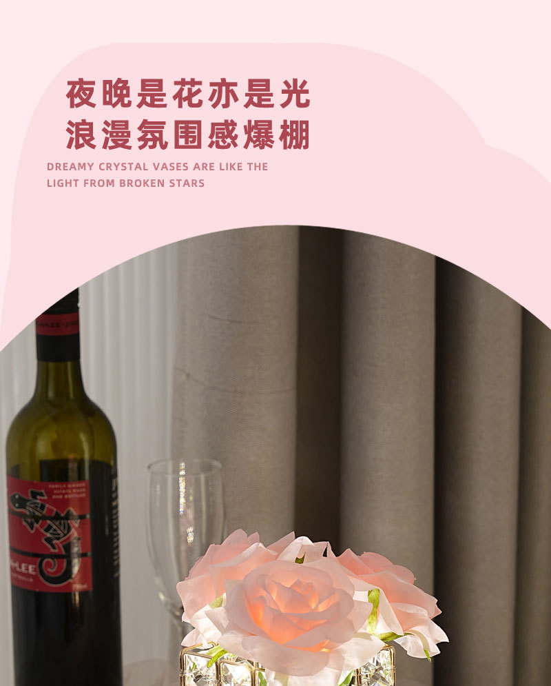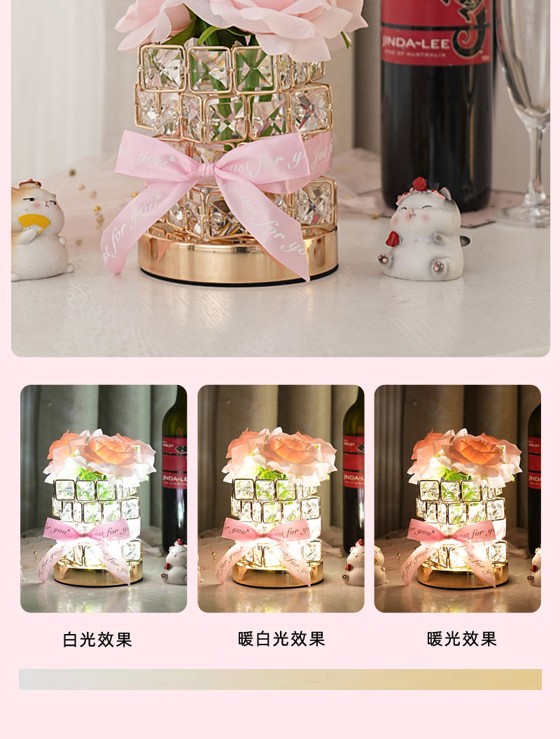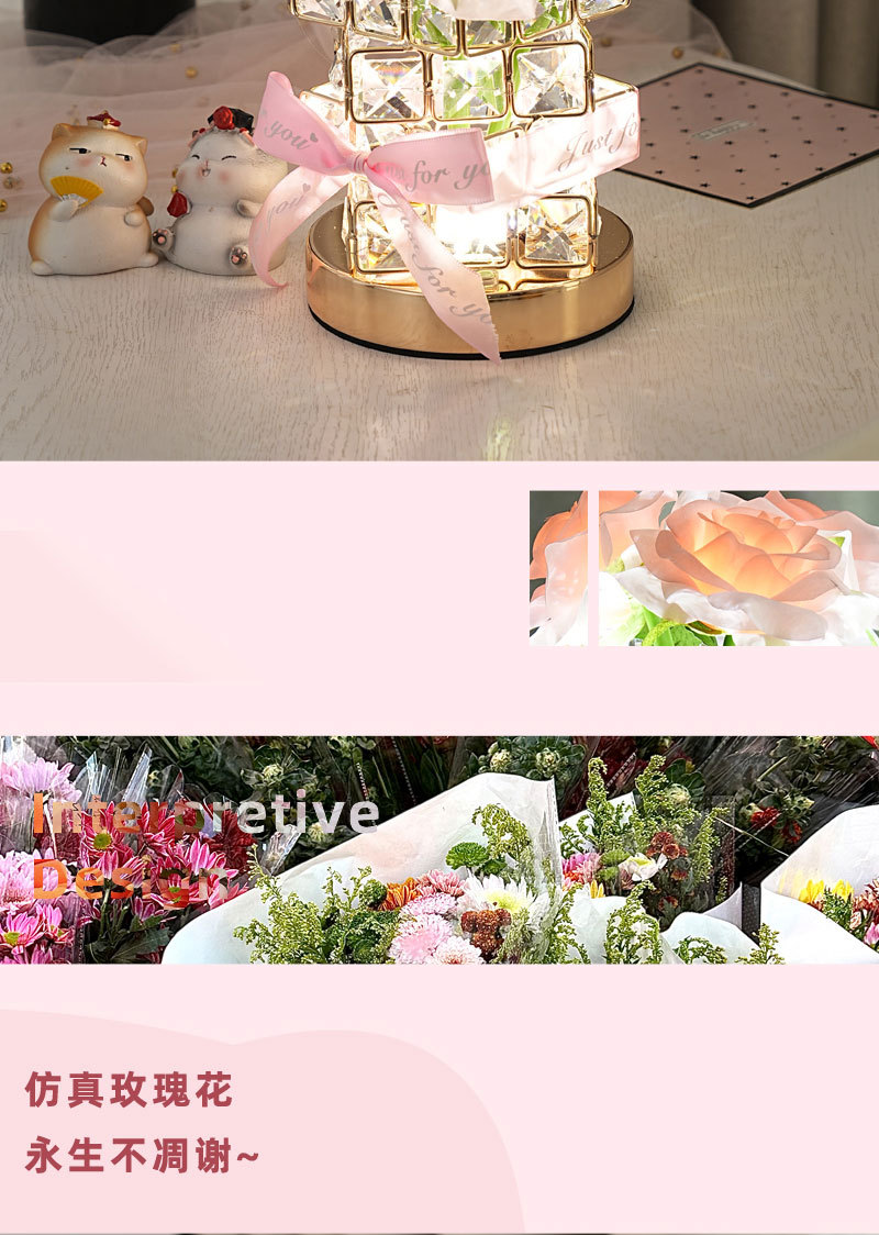 ➲ 새로운 큐브 LED 장미꽃 무드등 장식 테이블 램프 분위기 조명 발렌타인데이 생일 선물 꽃다발