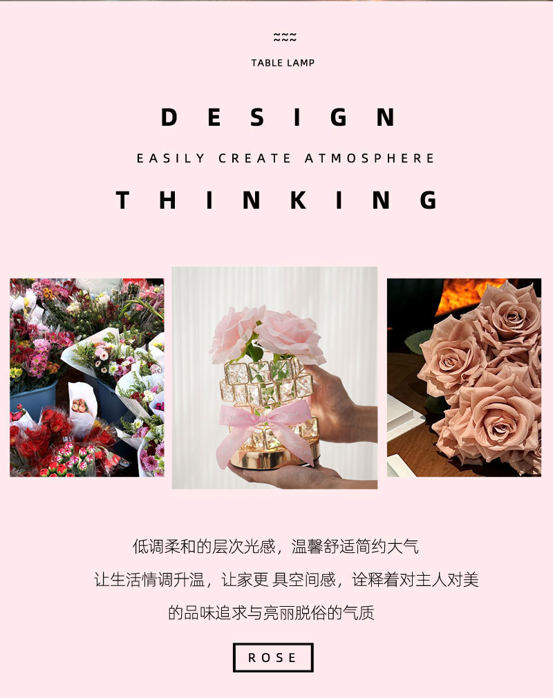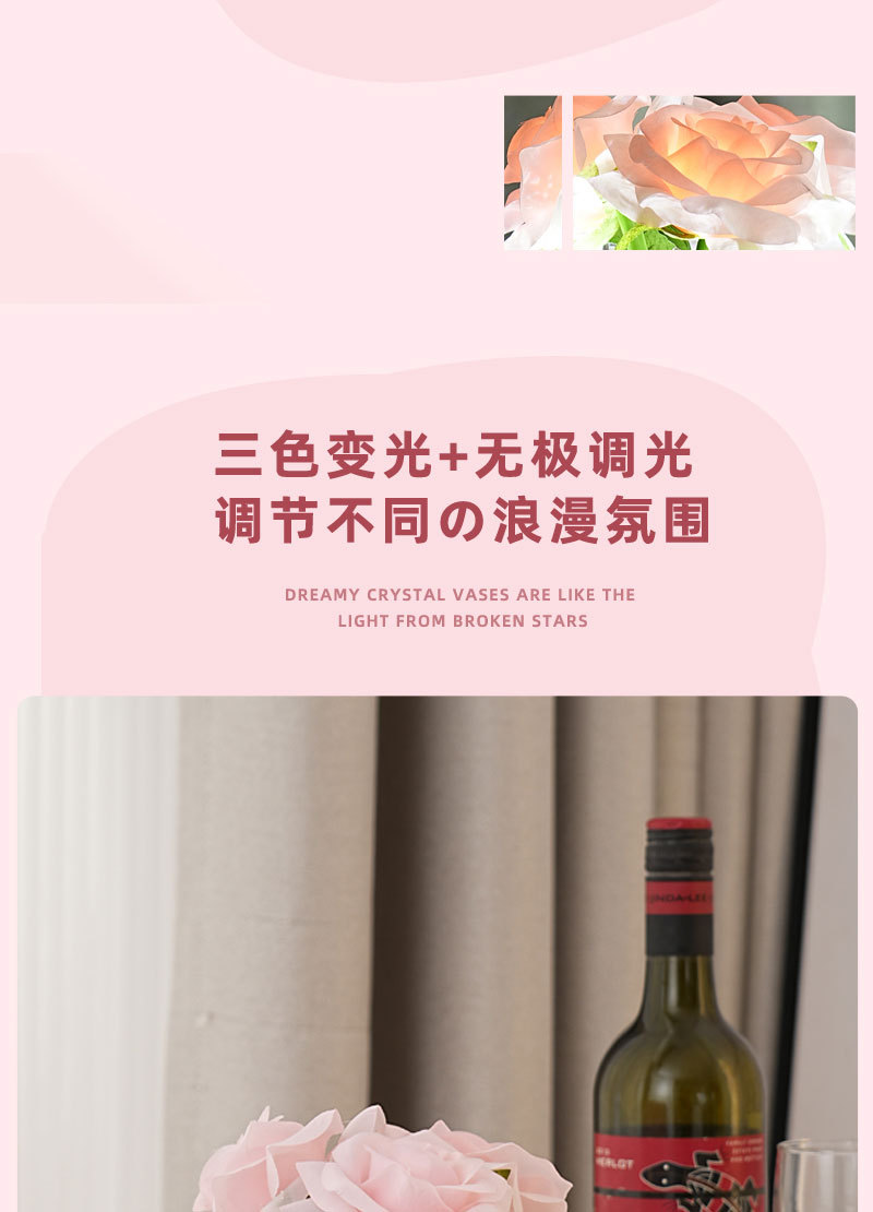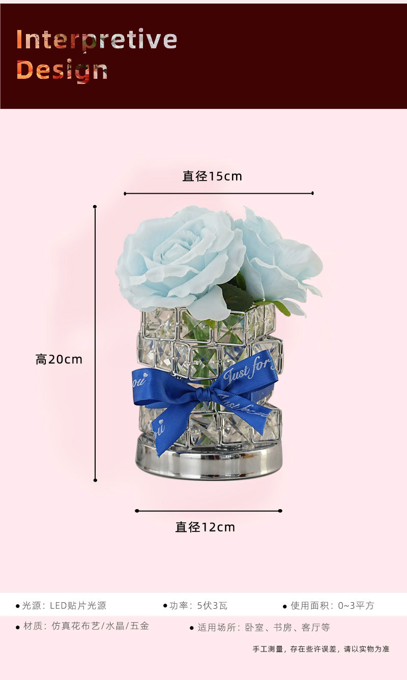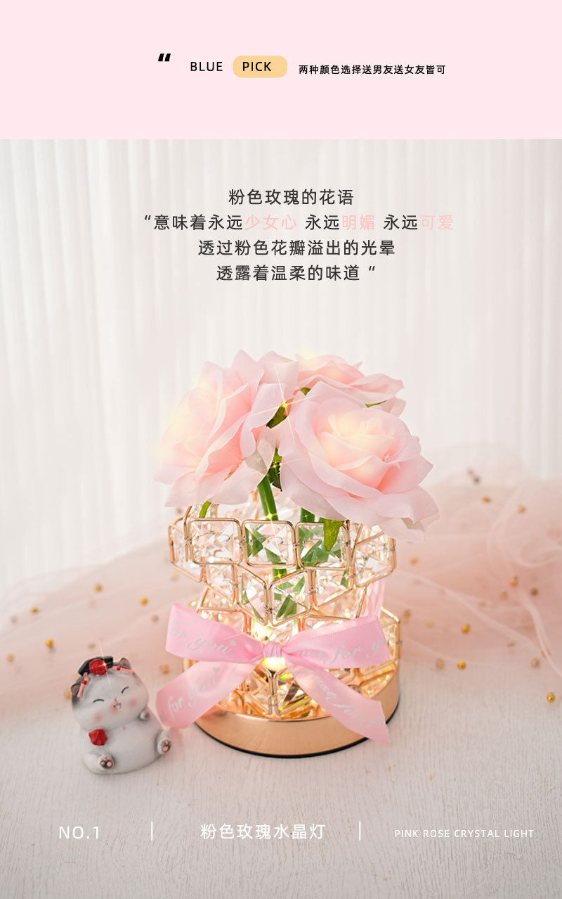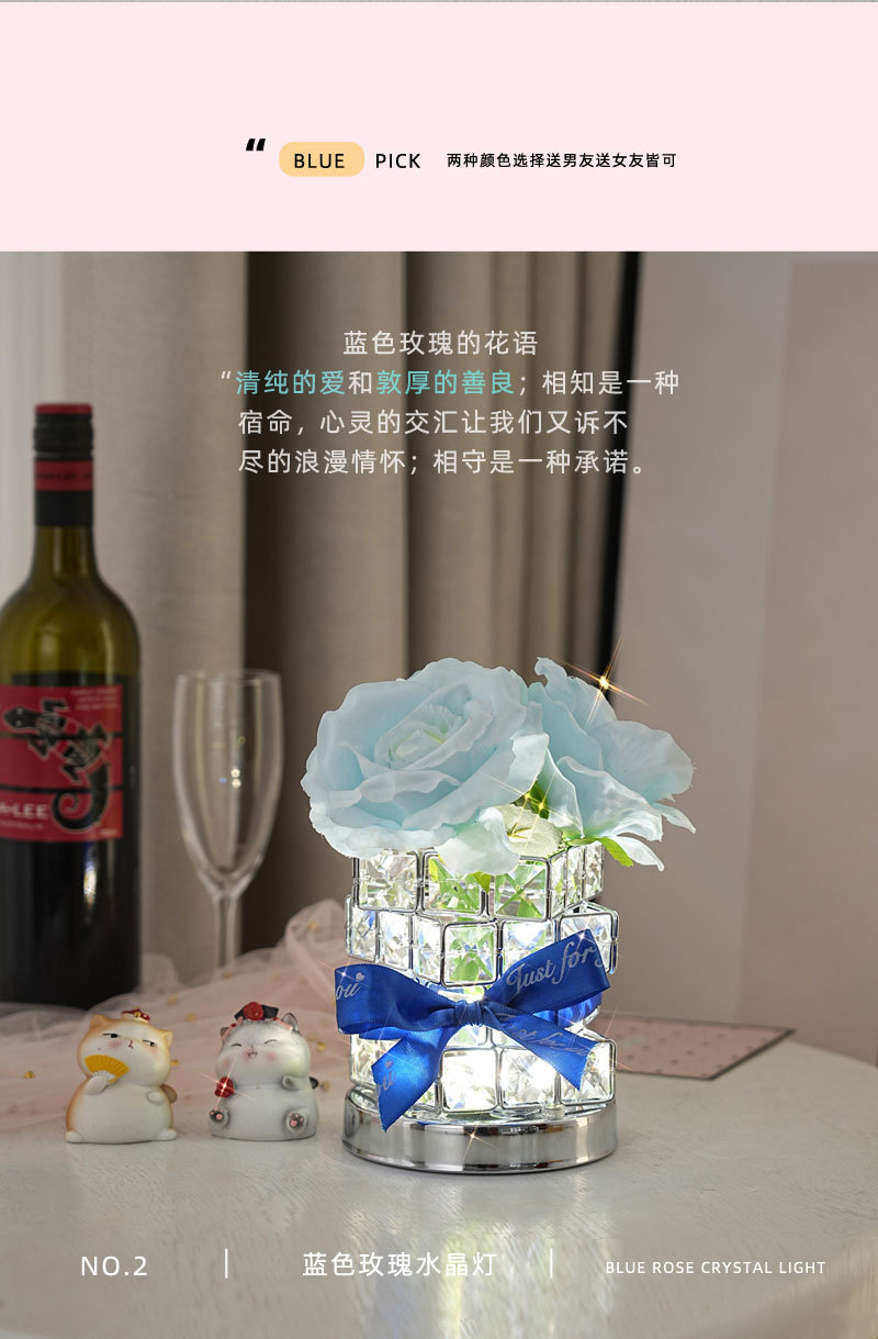 ➲ 새로운 큐브 LED 장미꽃 무드등 장식 테이블 램프 분위기 조명 발렌타인데이 생일 선물 꽃다발