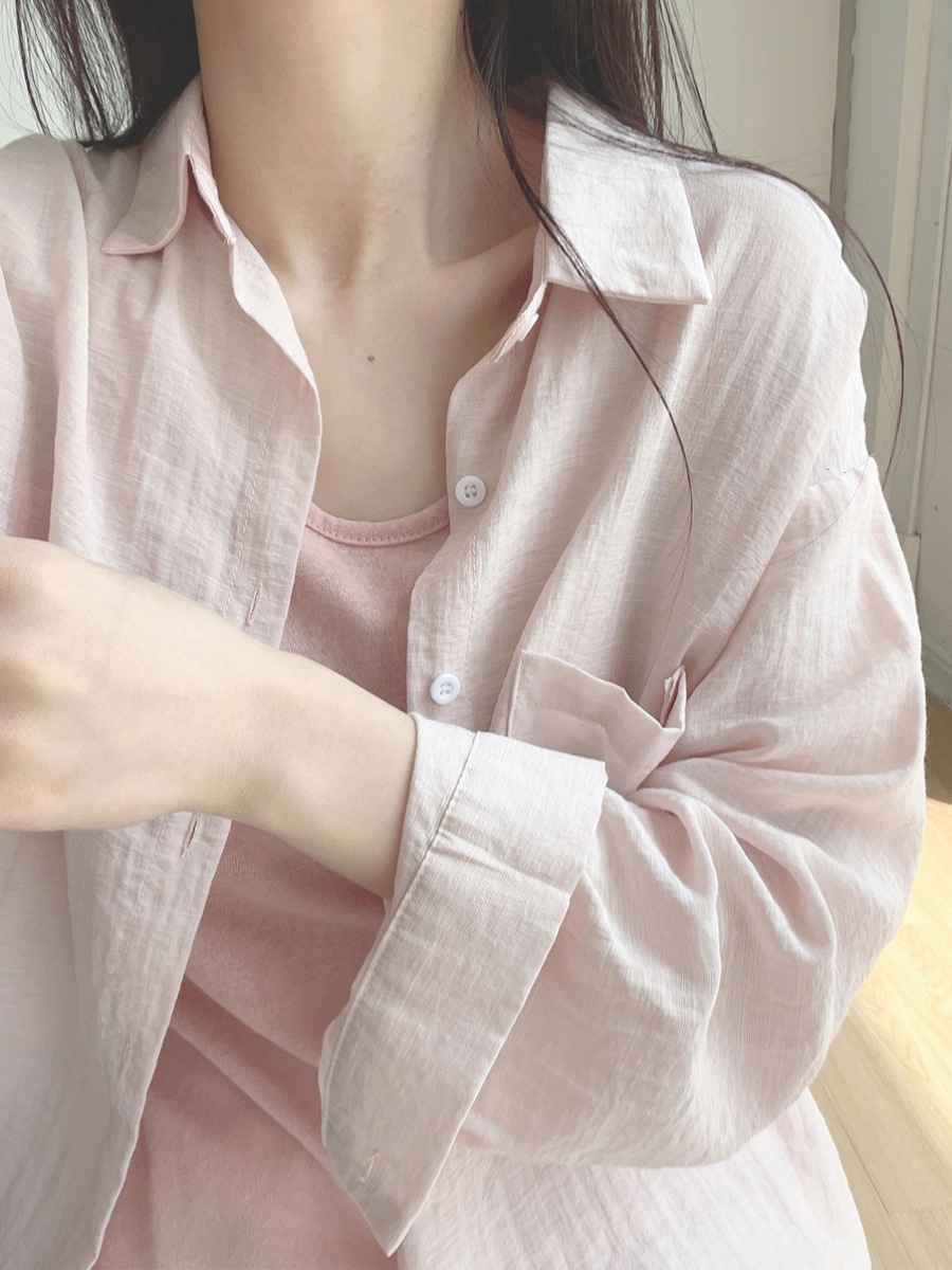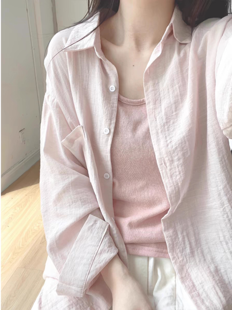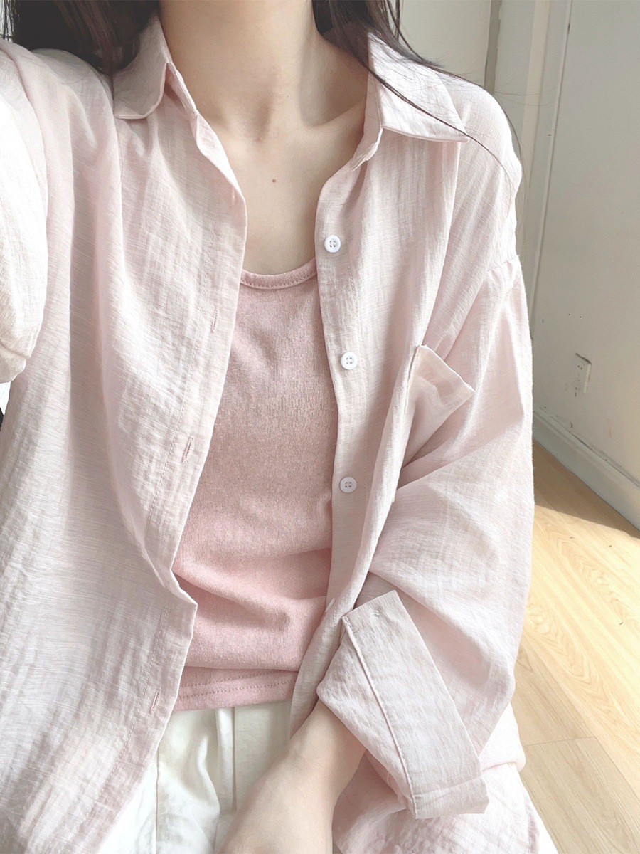선스크린 셔츠 코트 여성용 여름 얇은 카디건 핑크 텐셀 시폰 탑