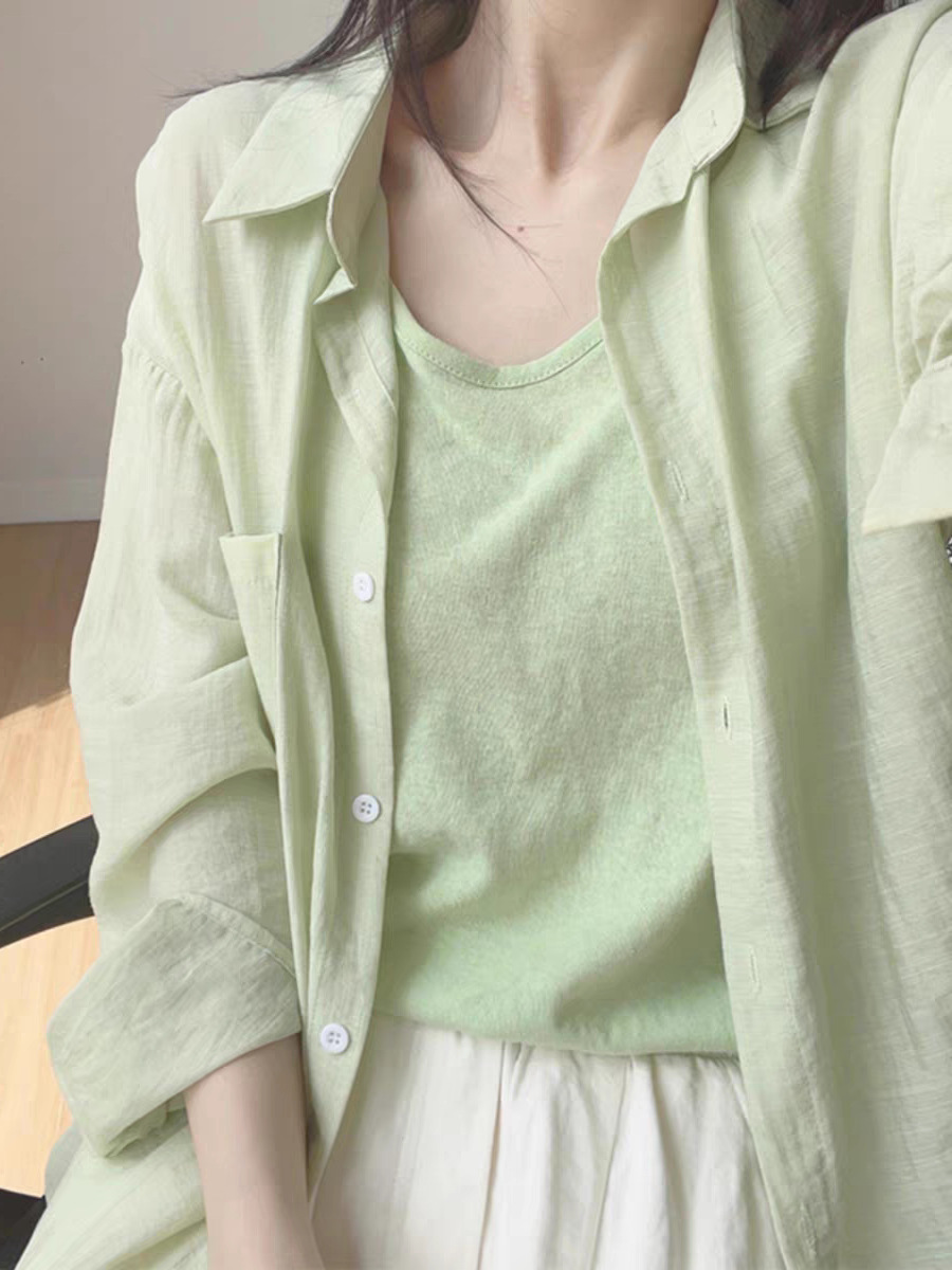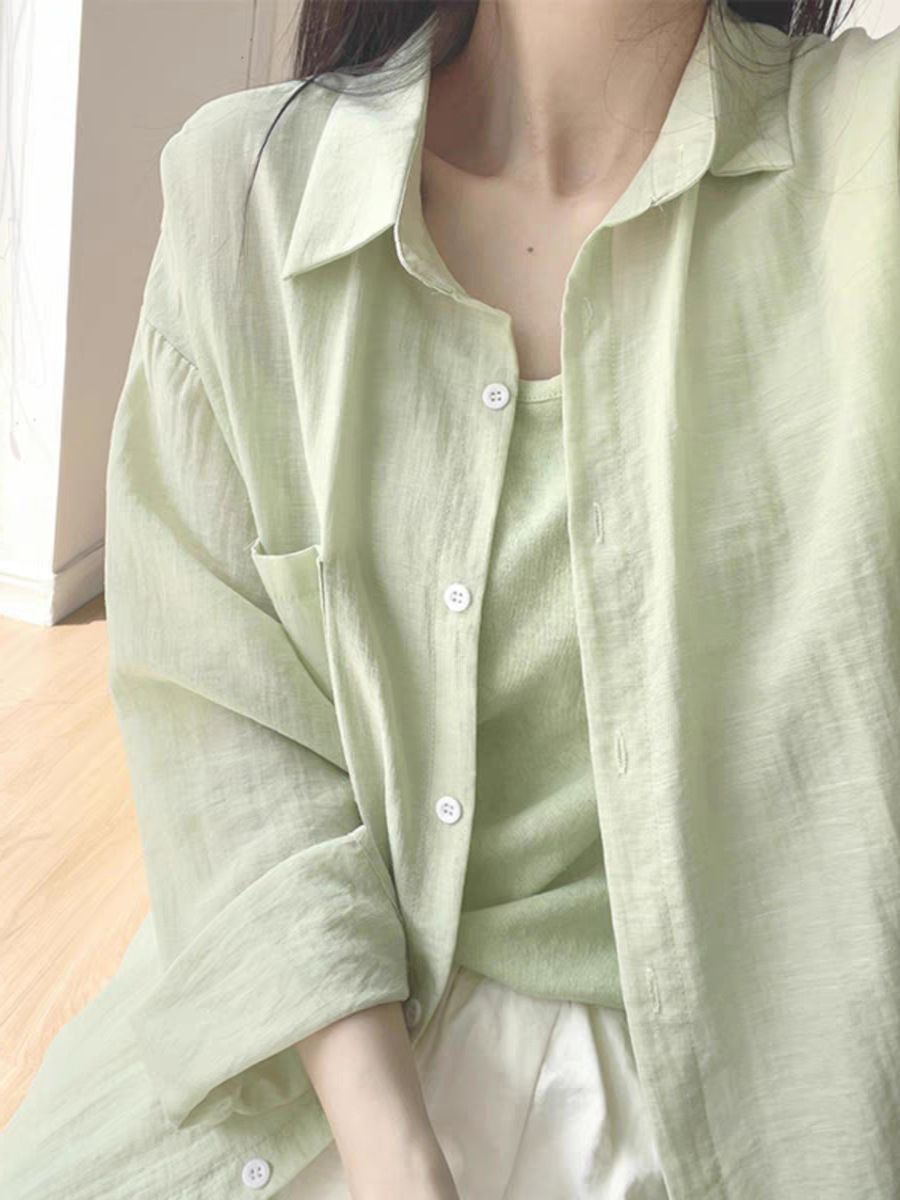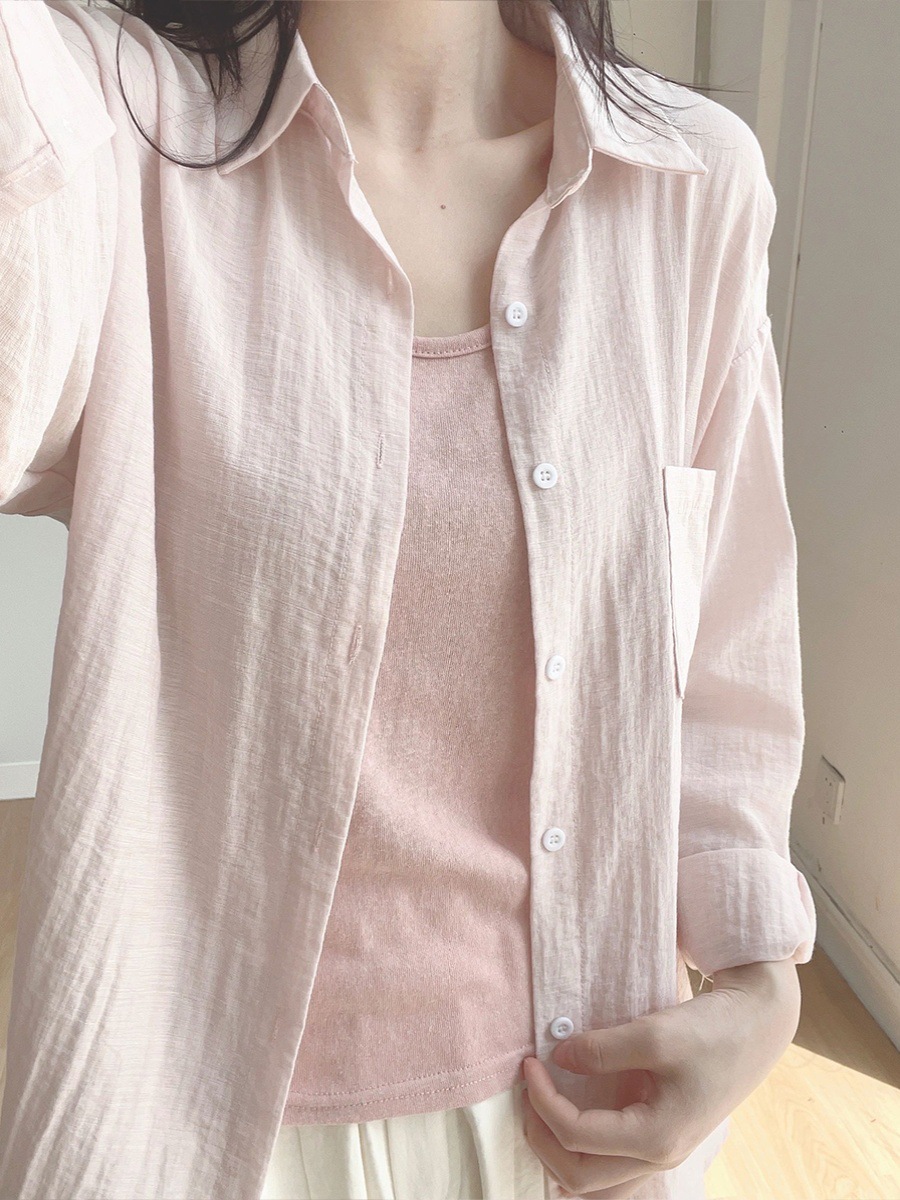 선스크린 셔츠 코트 여성용 여름 얇은 카디건 핑크 텐셀 시폰 탑