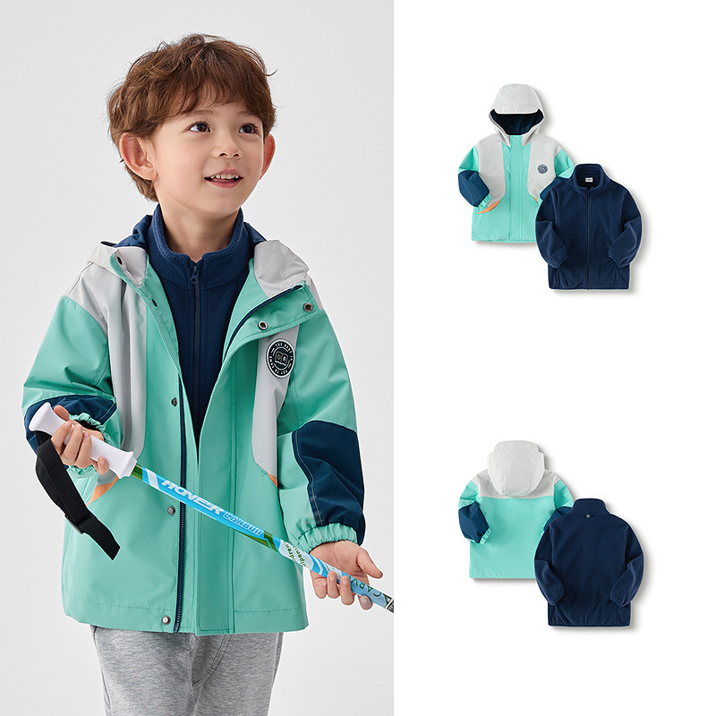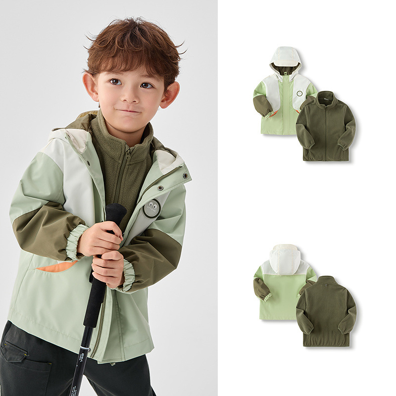 어린이 충전 옷 2 대 1 소년 코트 아기의 후드 소프트 쉘 옷 2025 년 봄과 가을 새로운 어린이 의류 트렌디 두 조각