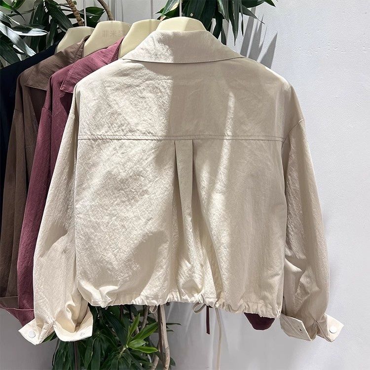 서양식 올 매치 워크 드로우 스트링 디자인 센스 루즈 캐주얼 긴팔 셔츠 쇼트 코트 탑 여성의 봄과 가을스토어 가기