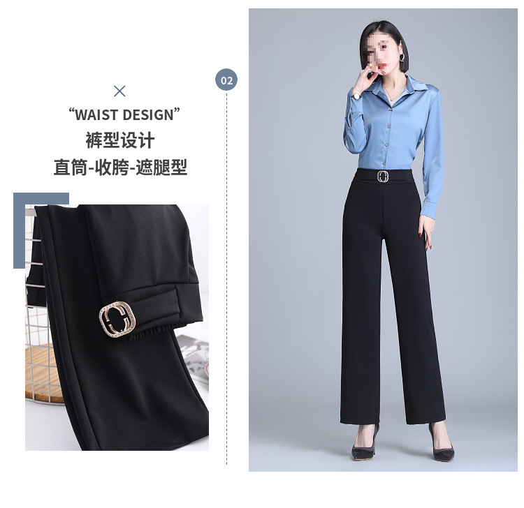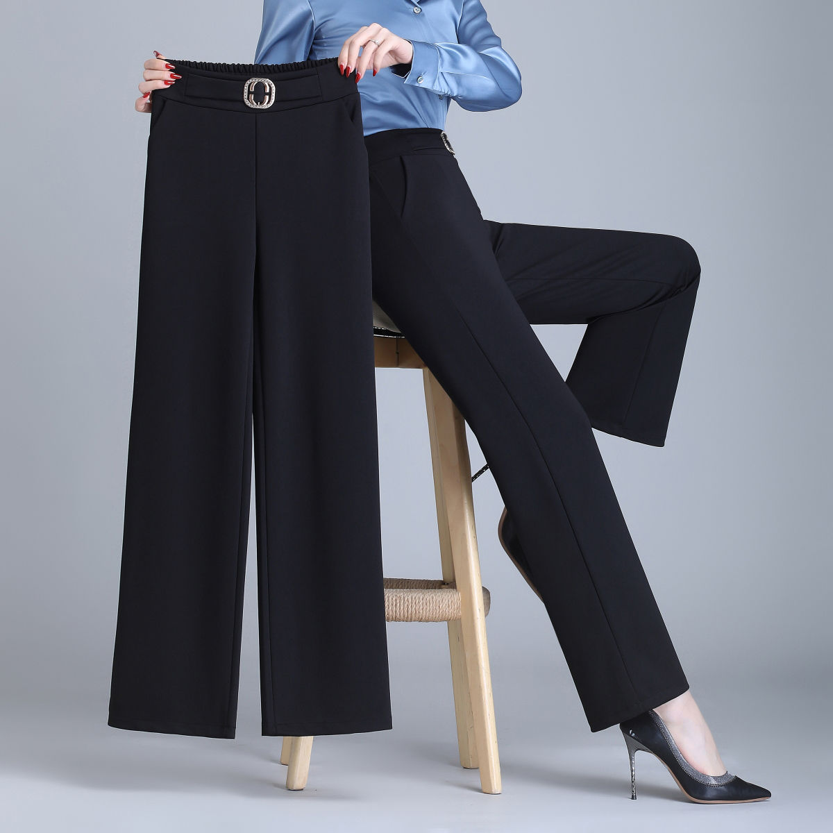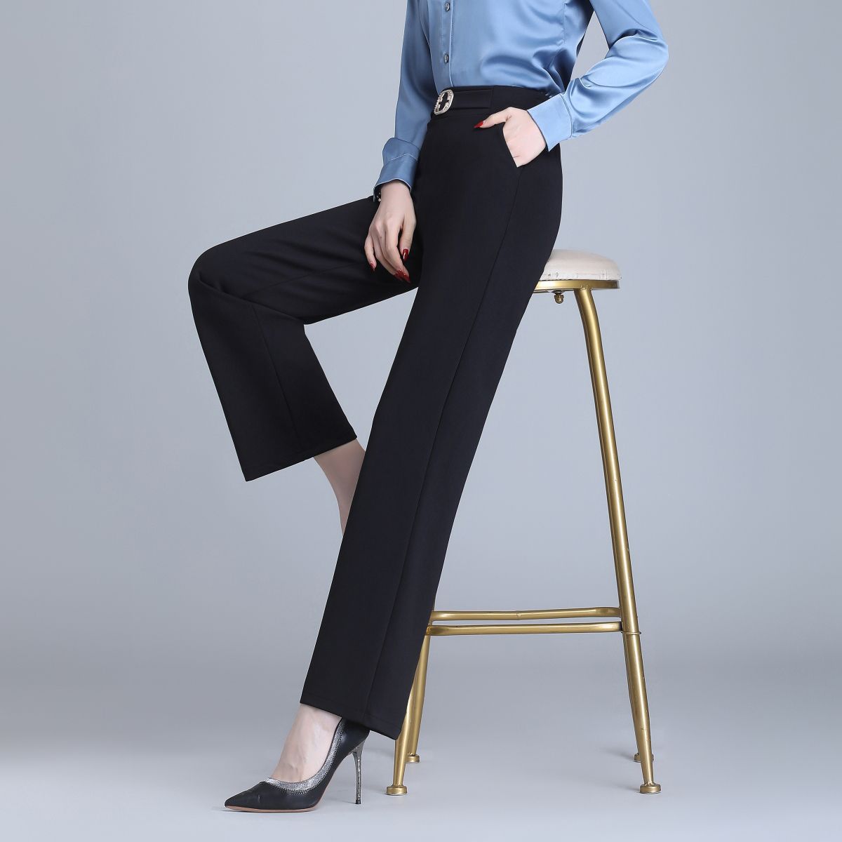스트레이트 레그 와이드 레그 팬츠 여성의 봄과 가을 새로운 하이 웨이스트 슬리밍 슬림핏 올매치 편안한 블랙 캐주얼 와이드 레그 팬츠스토어 가기