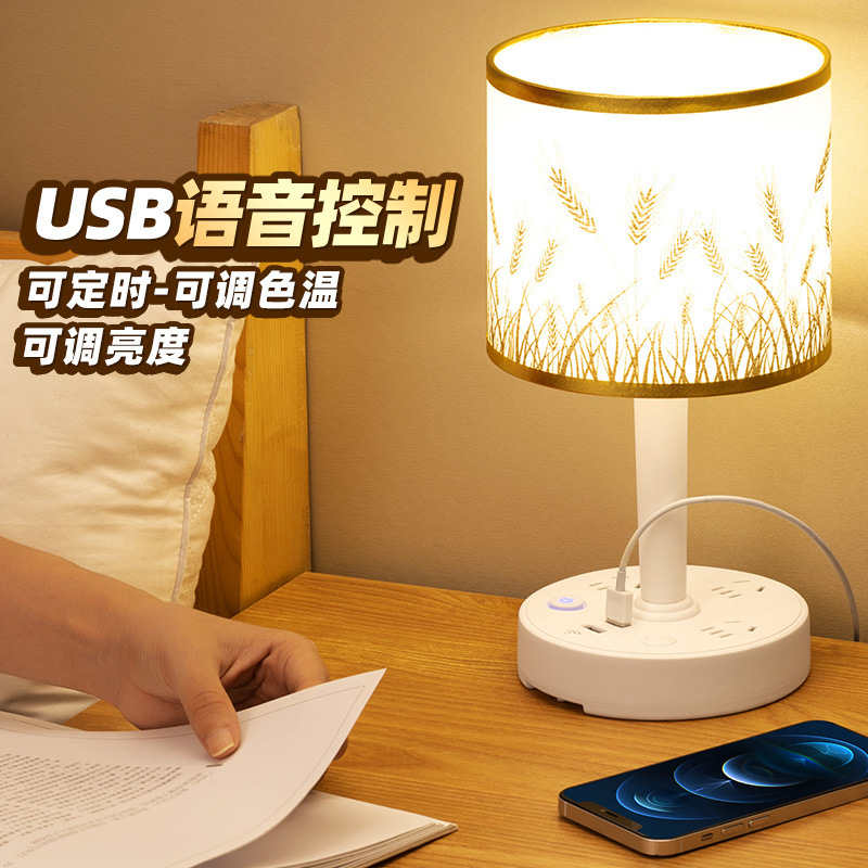 책상 램프 플러그인 지능형 음성 램프 침실 침대 옆 램프 리모컨 조절 하이 엔드 투인원 음성 제어 야간 조명