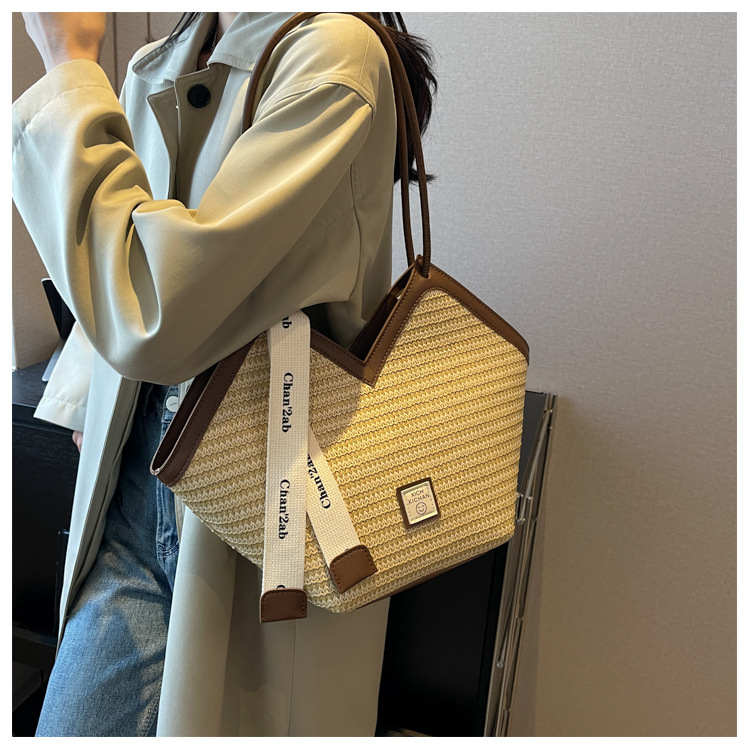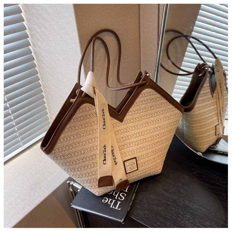 짠 밀짚 가방 여성 대용량 2023 새로운 여름 해변 어깨 가방 해변 휴일 통근 토트 백스토어 가기
