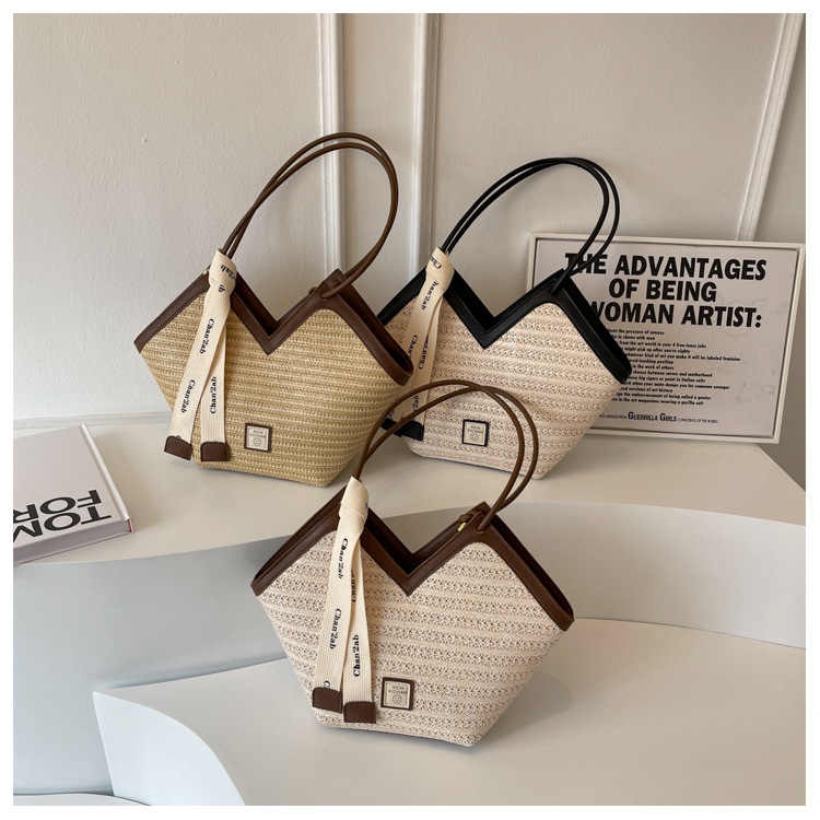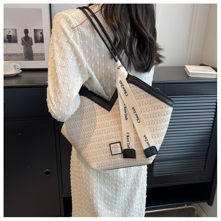 짠 밀짚 가방 여성 대용량 2023 새로운 여름 해변 어깨 가방 해변 휴일 통근 토트 백