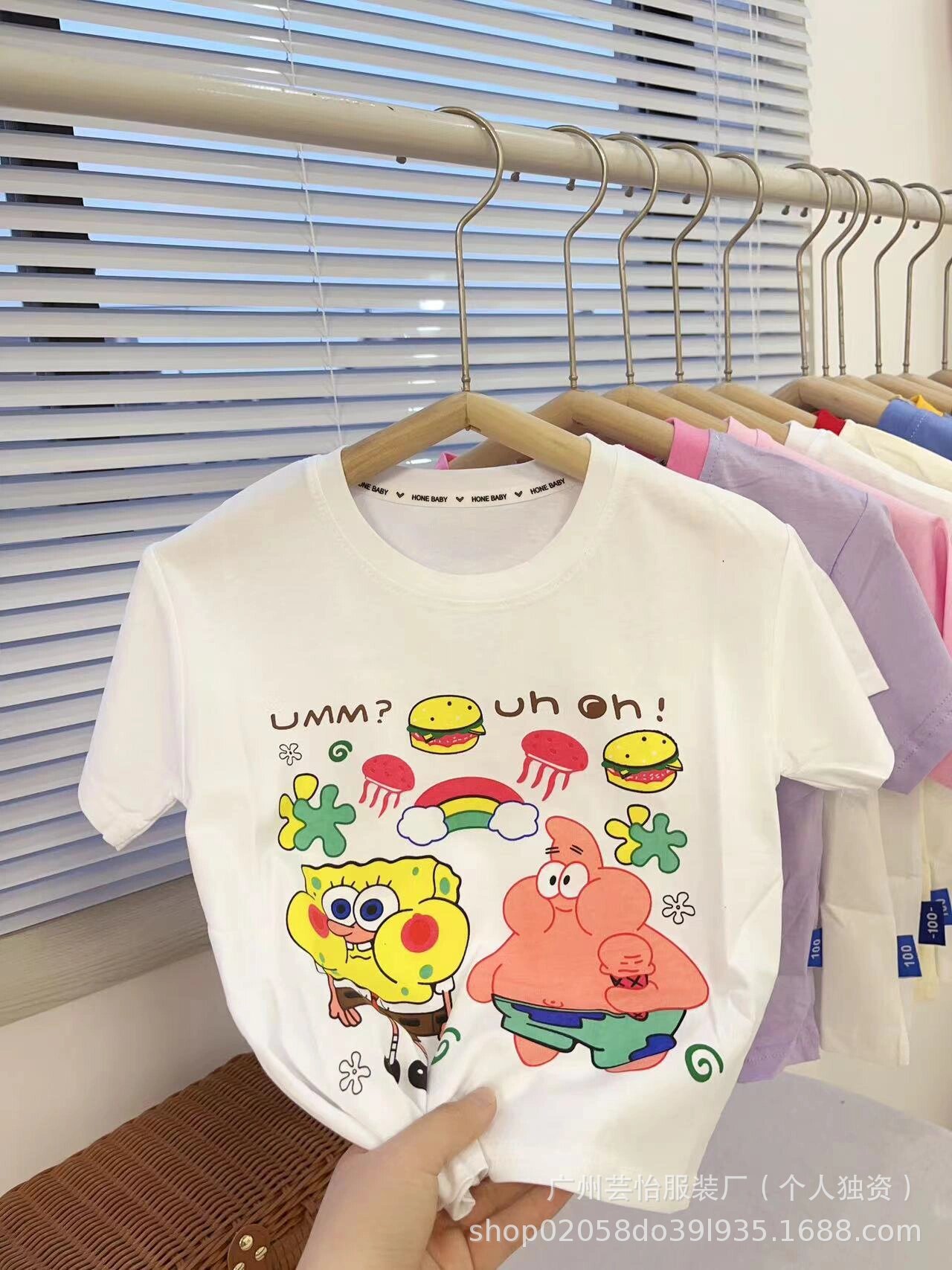 여름 어린이 반팔 티셔츠 코튼 Bottoming 셔츠 소년 소녀 어린이 코튼 반팔 만화 티셔츠 올매치
