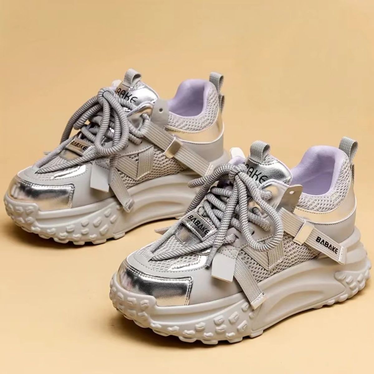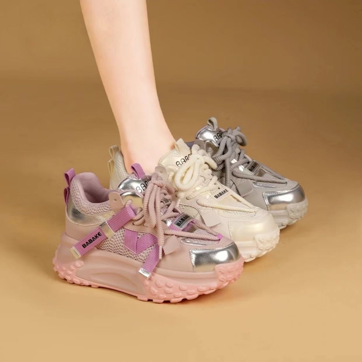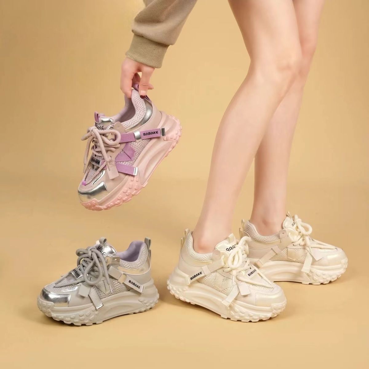 메시 두꺼운 밑창 운동화 여성의 봄과 여름 2025 새로운 슬리밍 로퍼 캐주얼 신발 작은 높이 증가 토르 신발스토어 가기