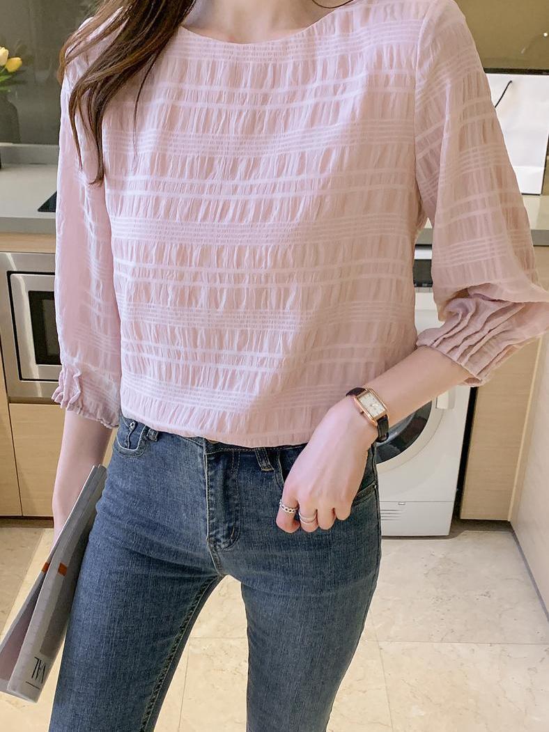 달콤한 여성 7부 소매 쉬폰 셔츠 2025 여름 신작 캐주얼 배 커버 탑 패셔너블하고 다재다능한 셔츠스토어 가기