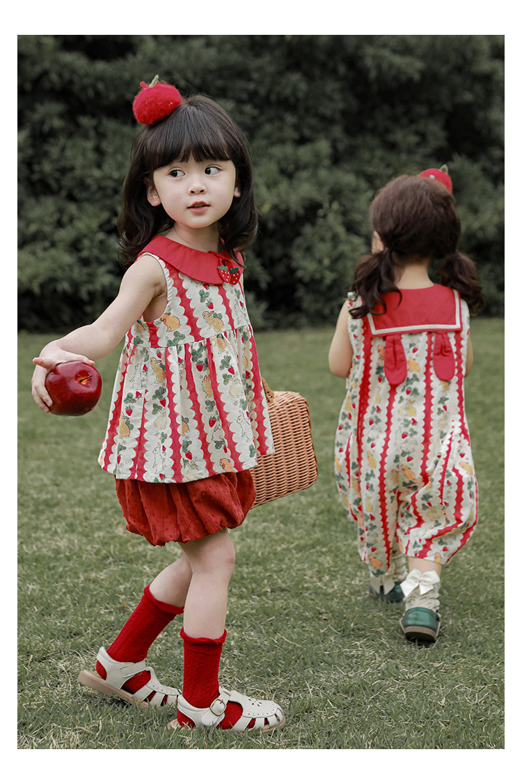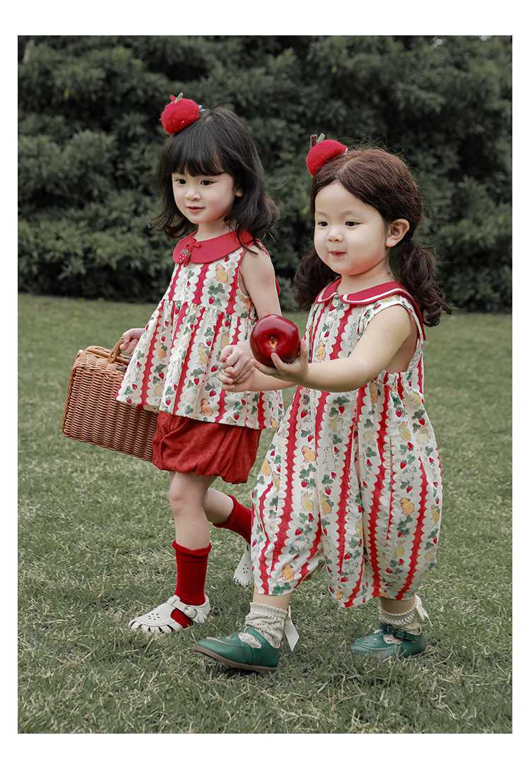 소녀 세트 귀여운 인형 칼라 셔츠 2025 여름 새로운 꽃 만화 아기 느슨한 얇은 바지스토어 가기