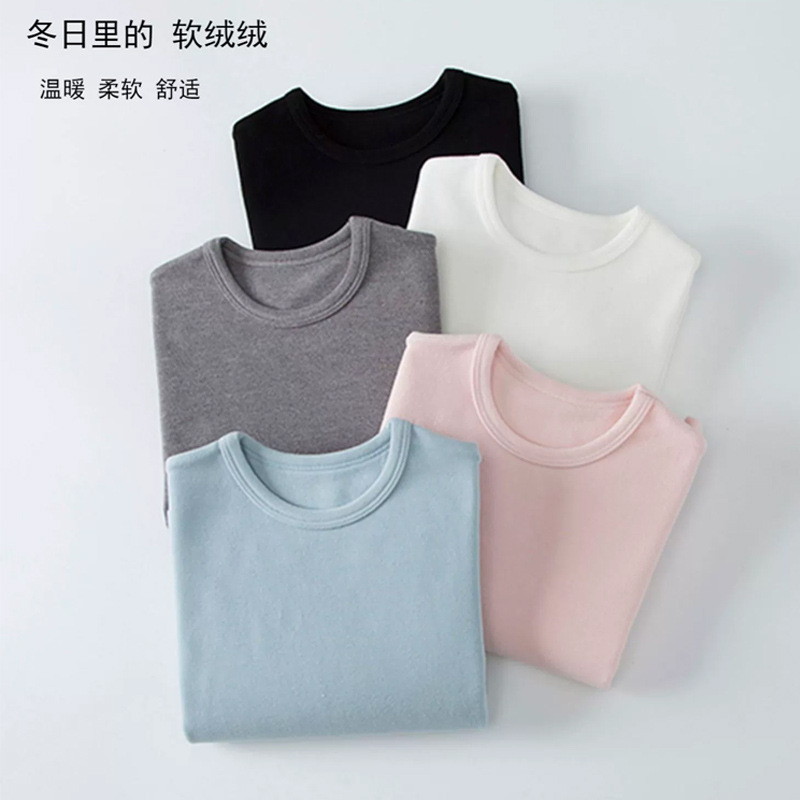 어린이 긴 소매베이스 셔츠 소년들과 소녀들의 따뜻한 가을과 겨울 독일 벨벳 단색 블랙 화이트 크루 넥 티셔츠스토어 가기