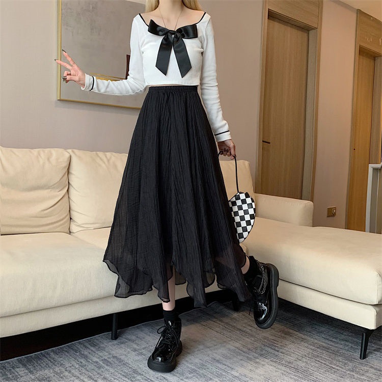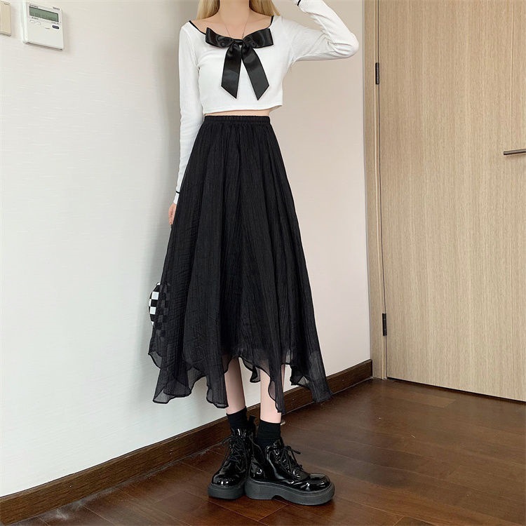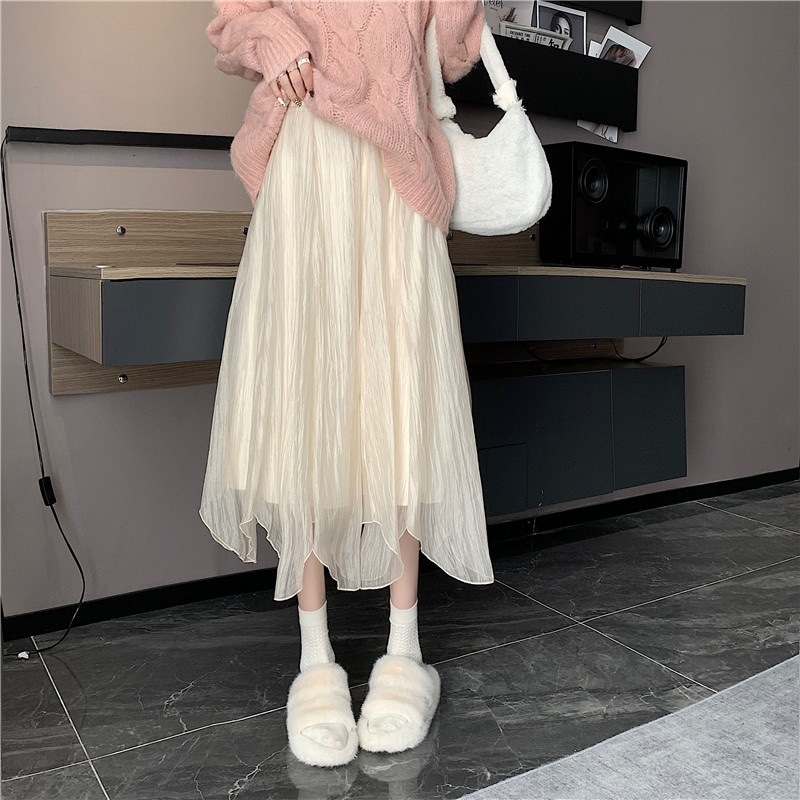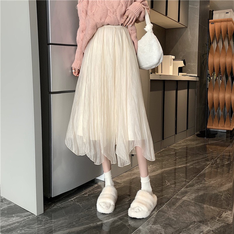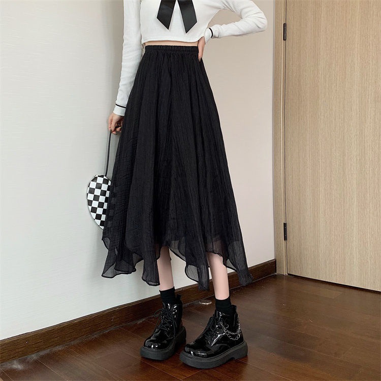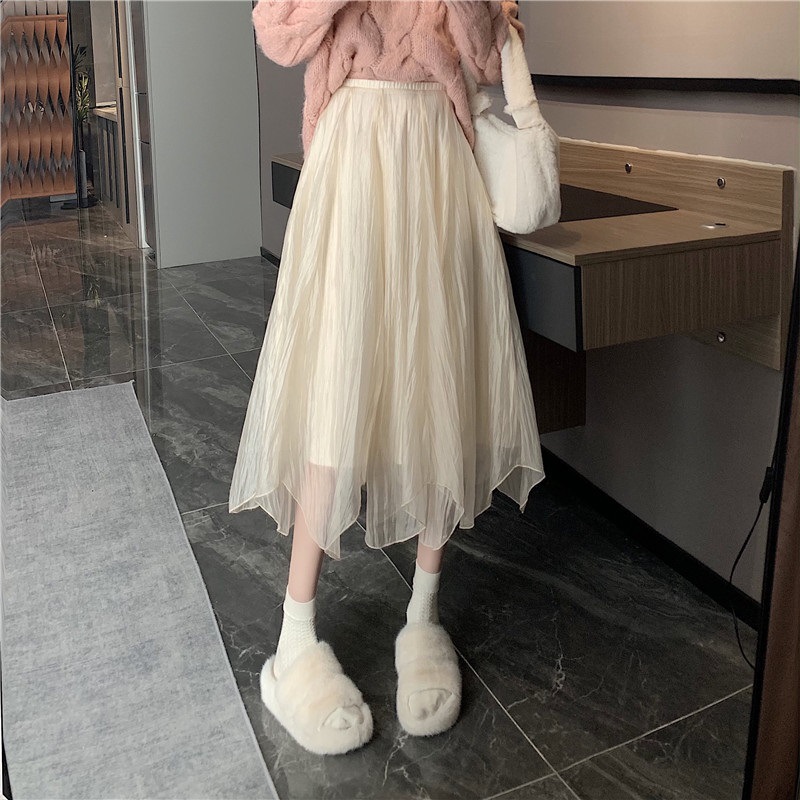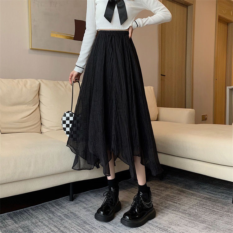 오간자 불규칙한 치마 여성의 봄과 여름 작은 높은 허리 A 라인 스커트 서양식 주름 중간 길이 스커트스토어 가기