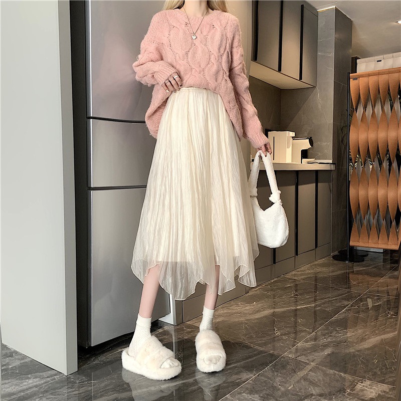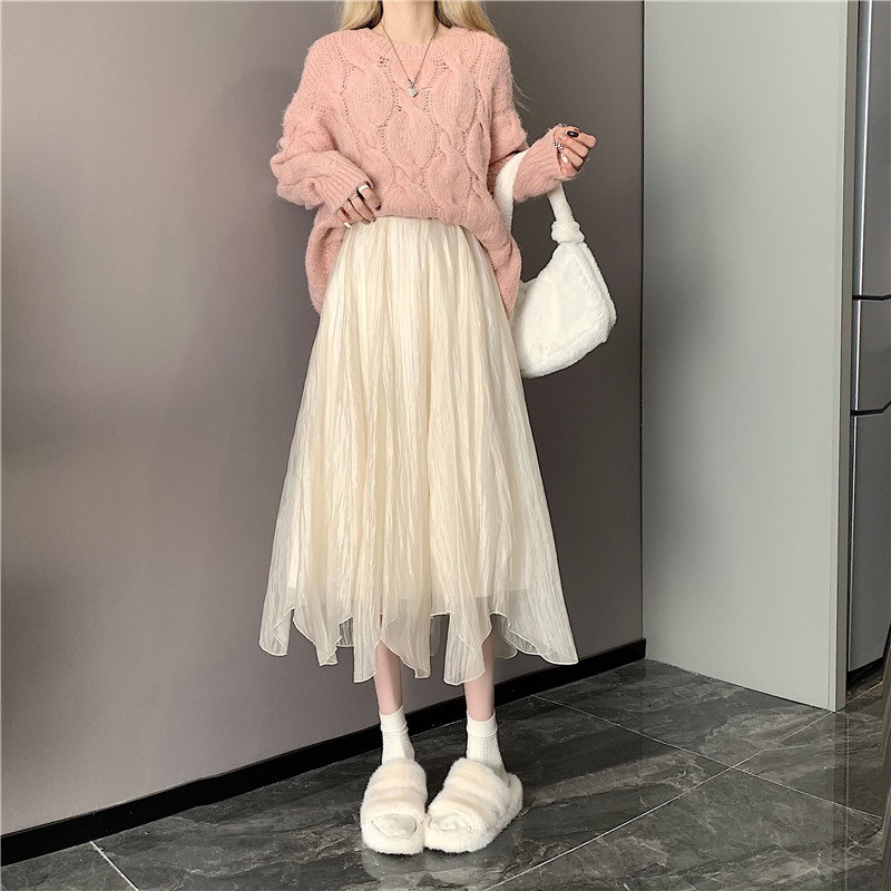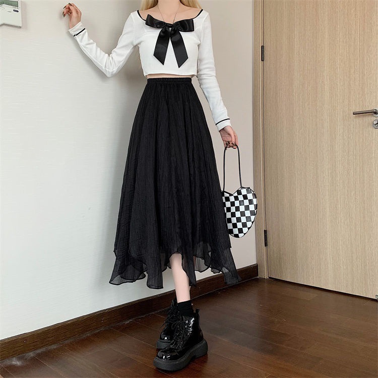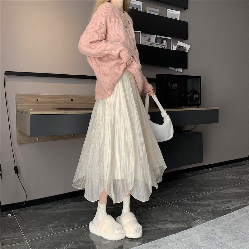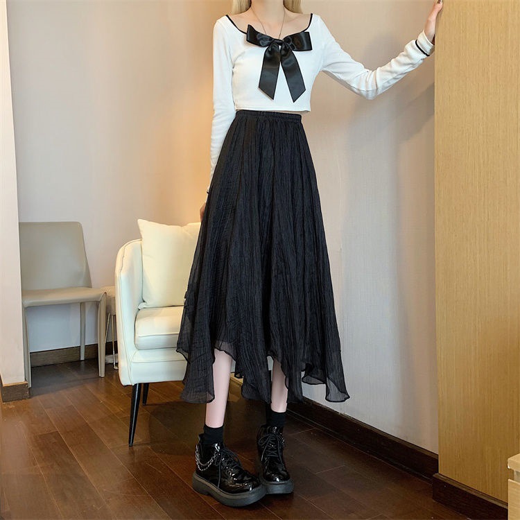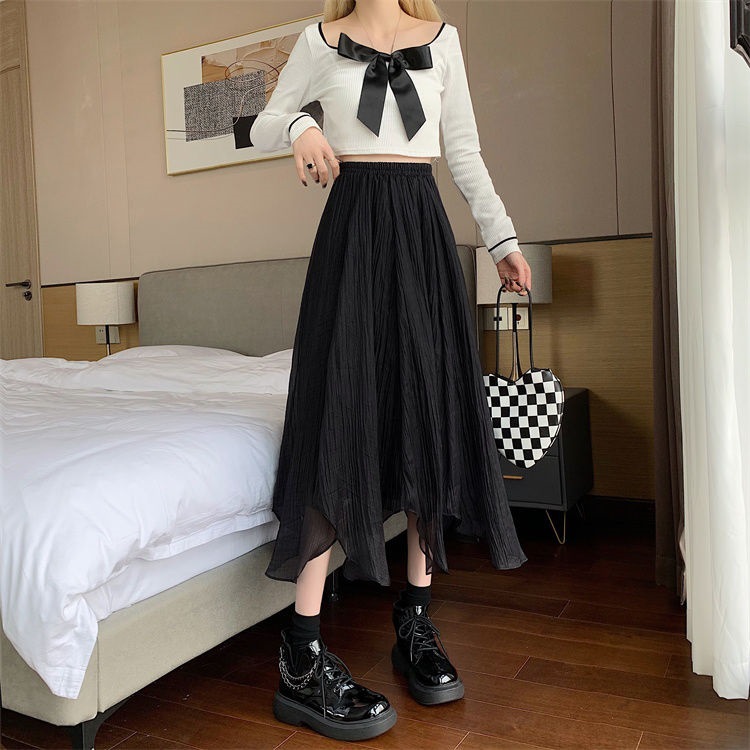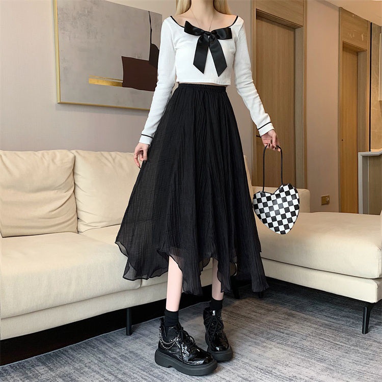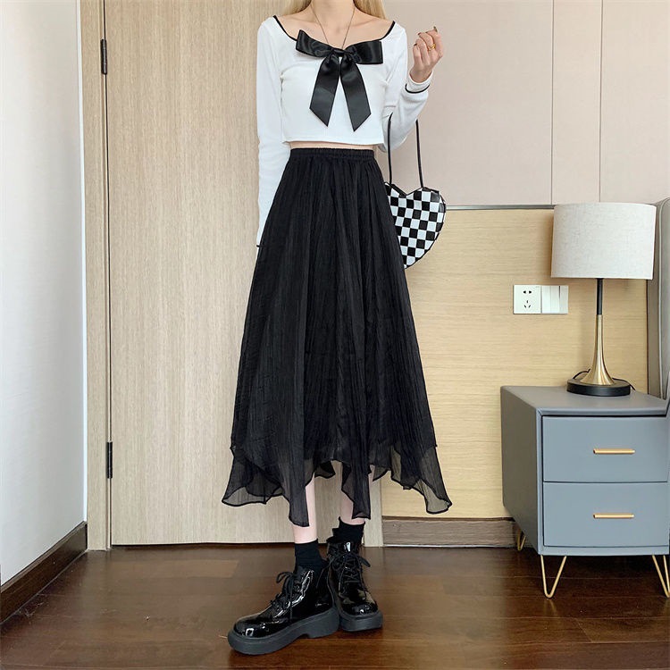 오간자 불규칙한 치마 여성의 봄과 여름 작은 높은 허리 A 라인 스커트 서양식 주름 중간 길이 스커트스토어 가기