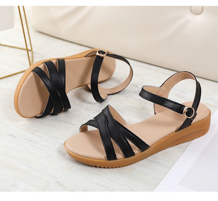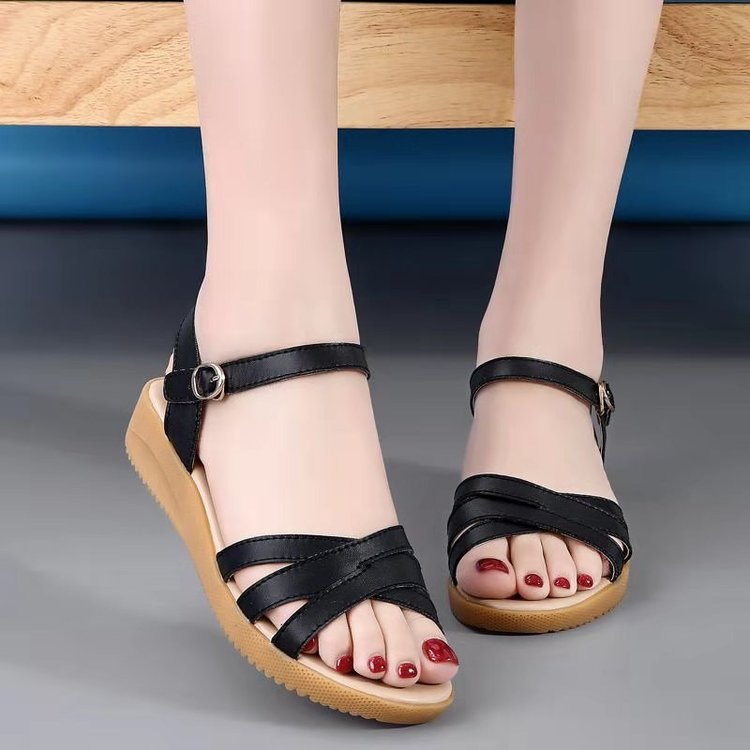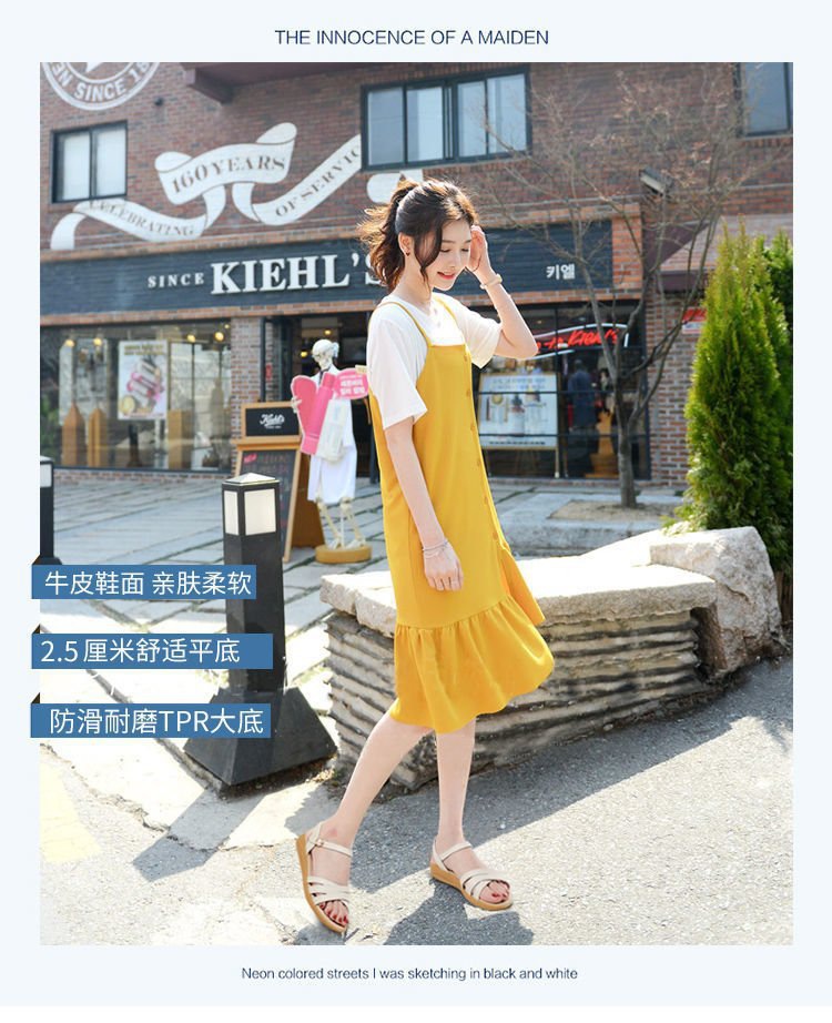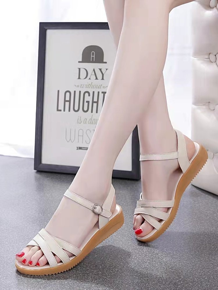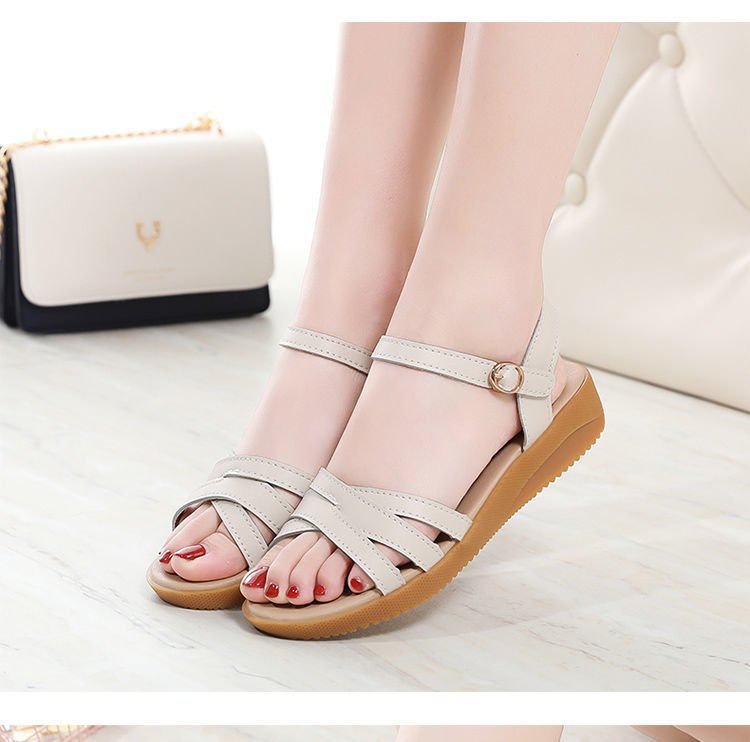 쇠고기 단독 샌들 여성용 2025 년 여름 새로운 유행 플랫 가죽 샌들 여성 아웃웨어 소프트 솔 샌들 여성용 신발스토어 가기