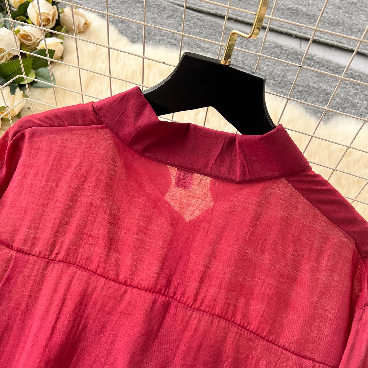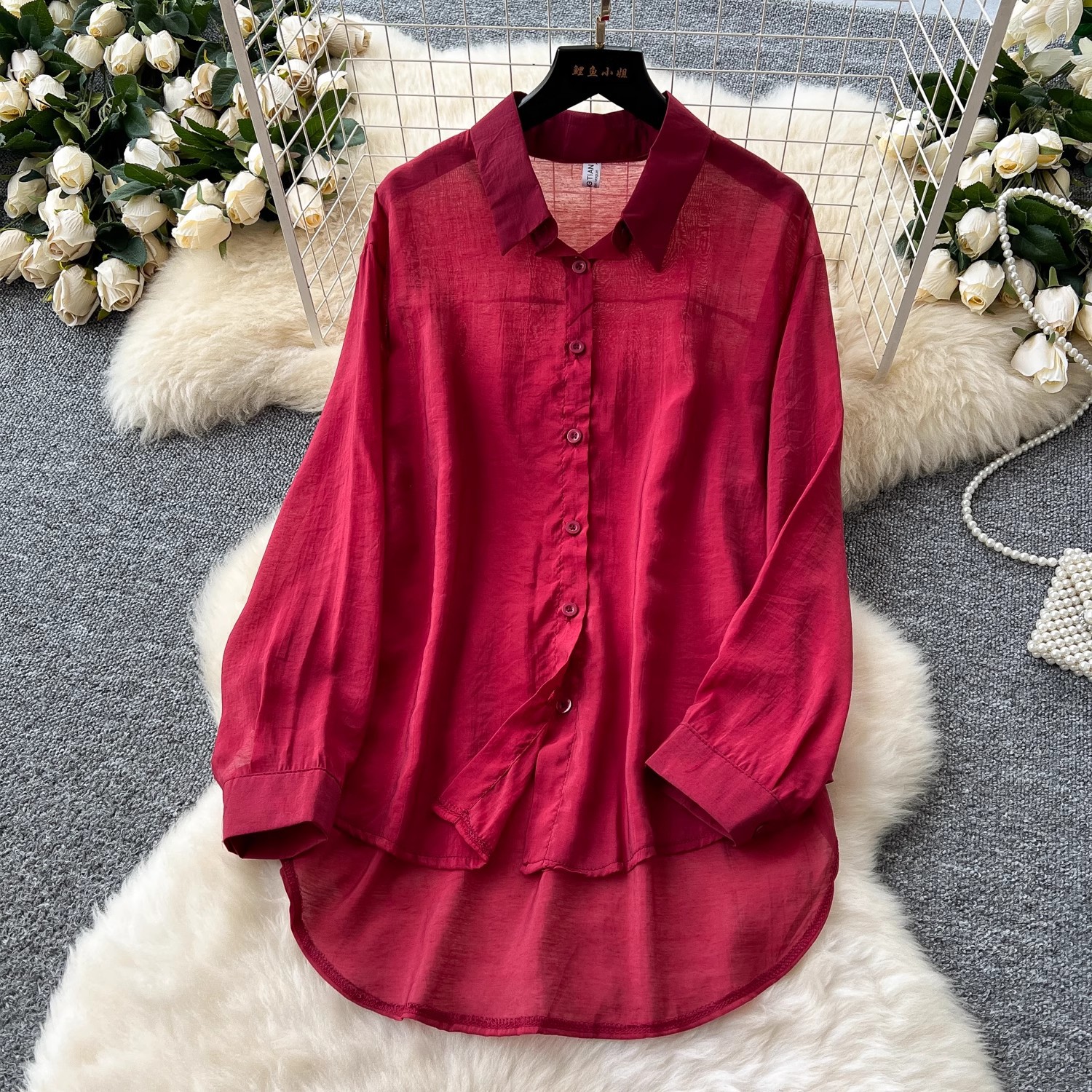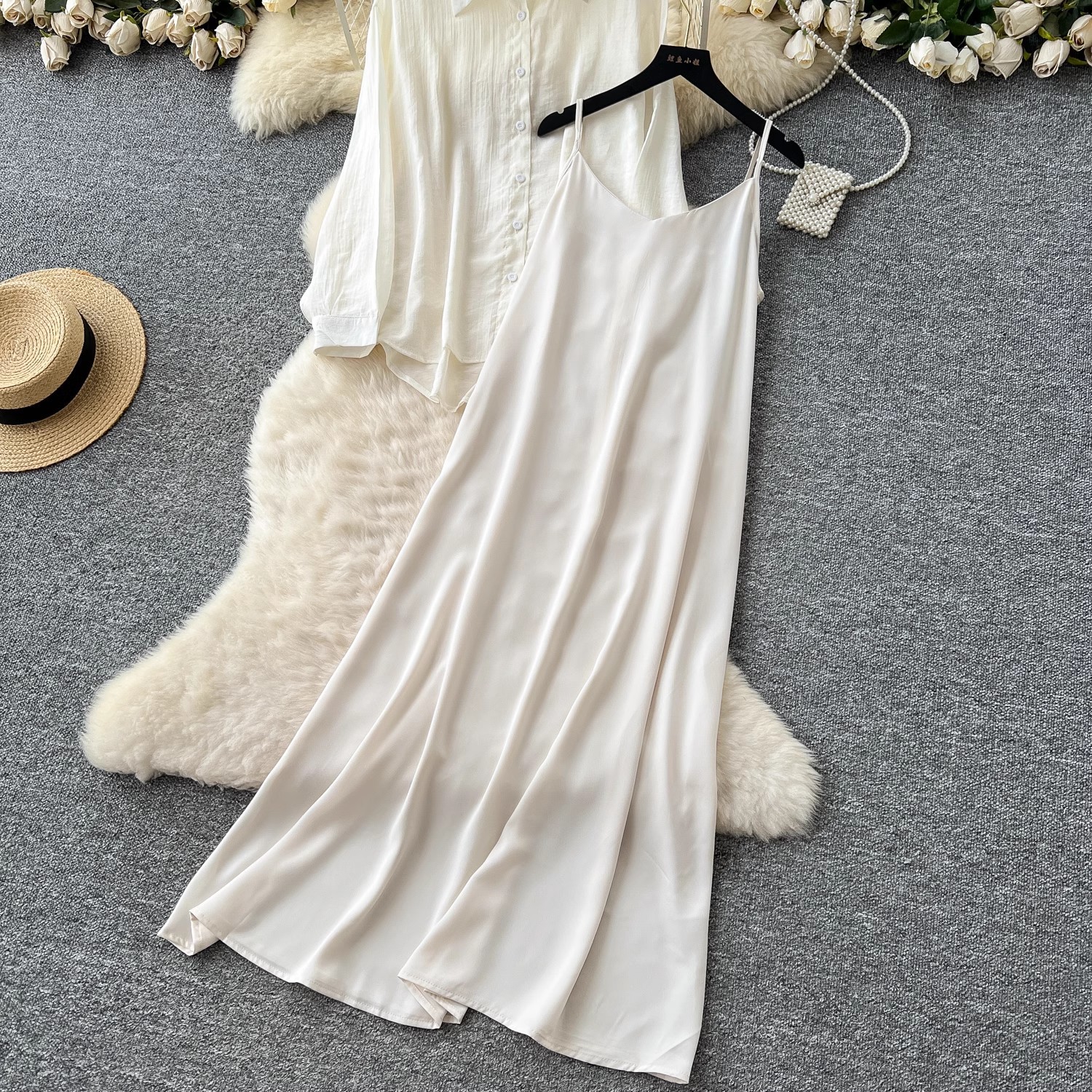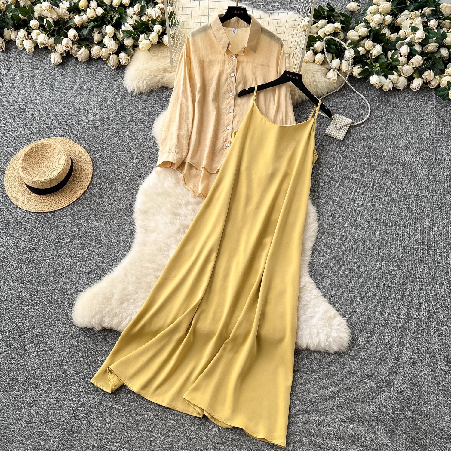 우아한 투피스 세트 여성용 틈새 게으른 스타일 아우터 원피스 스트랩이 달린 얇은 느슨한 긴팔 태양 보호 셔츠 재킷