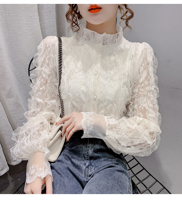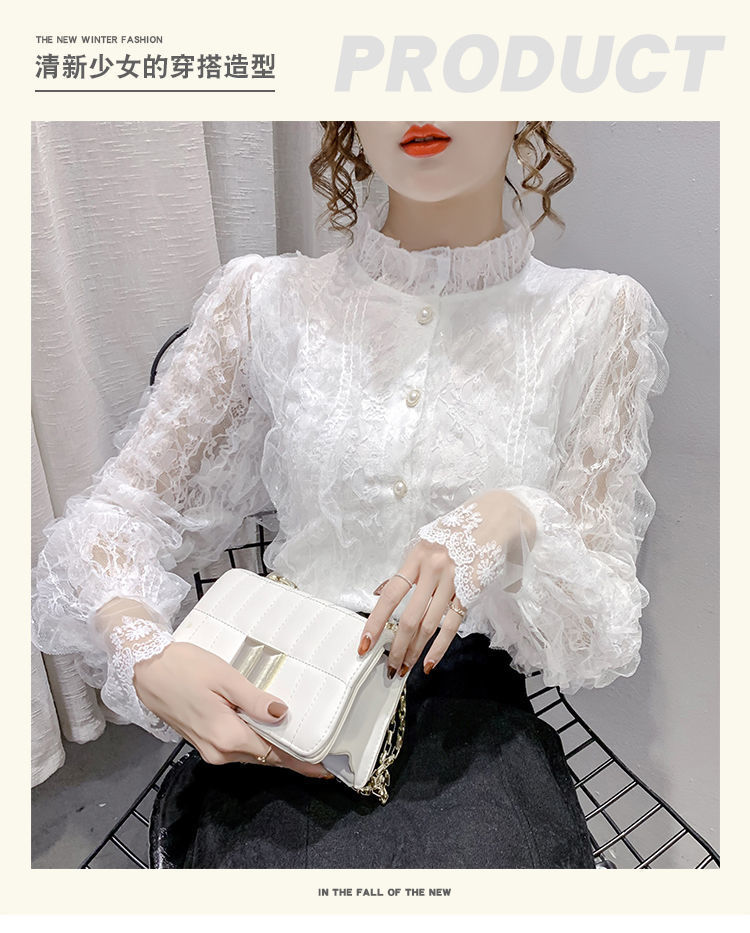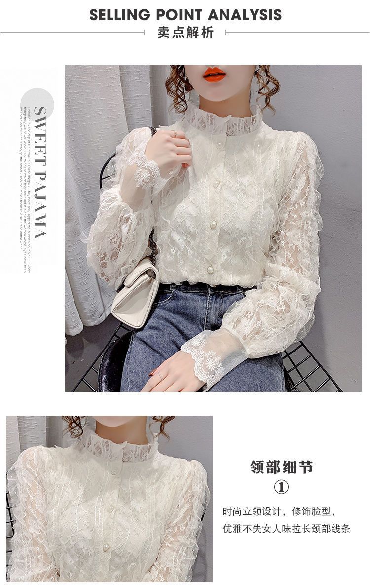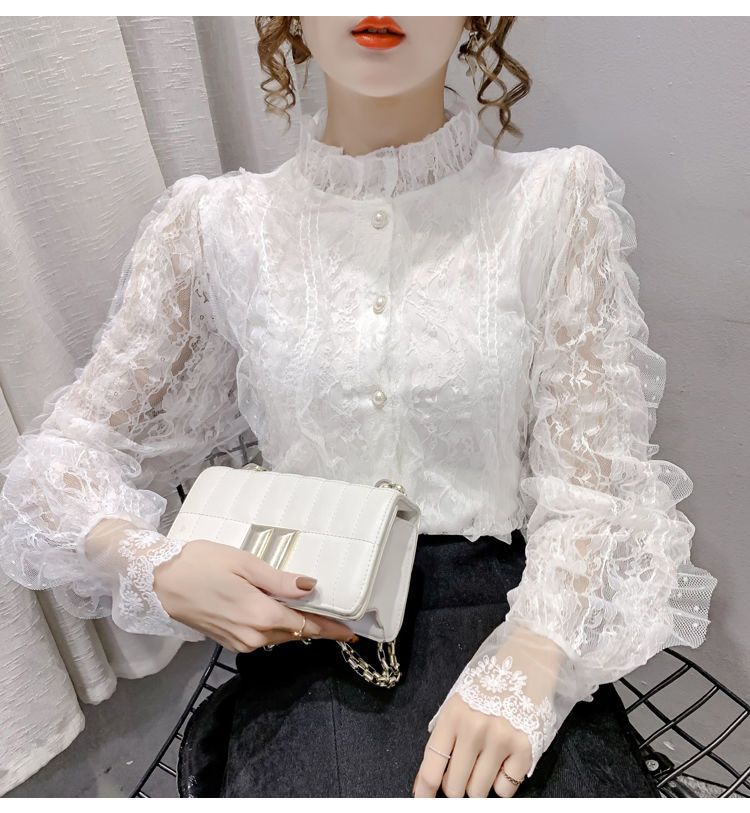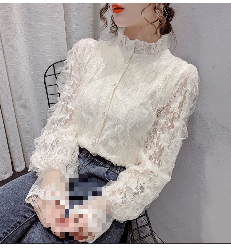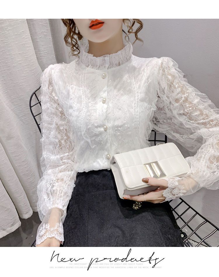 레이스베이스 셔츠 여성용 봄과 가을 새로운 도착 기모 웨스턴 스타일 레이스 카디건 프렌치 스타일 칼라 롱 슬리브 탑