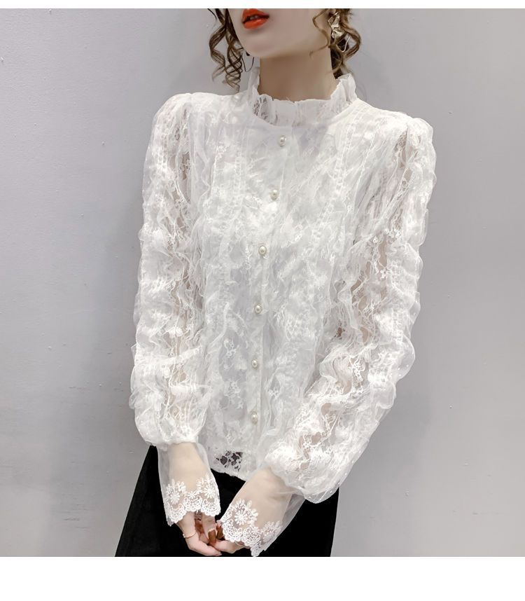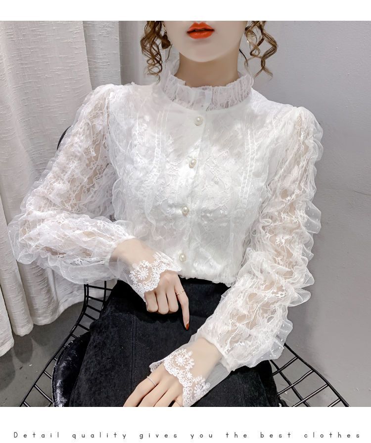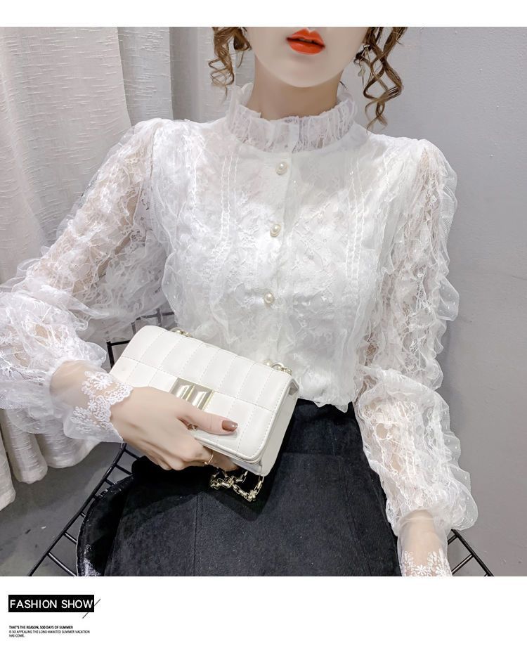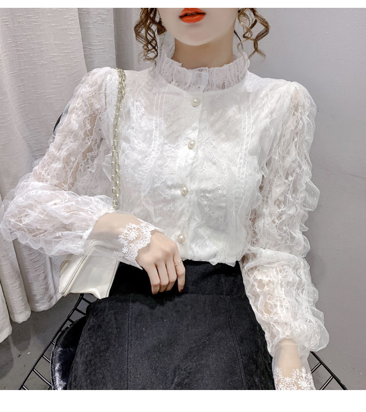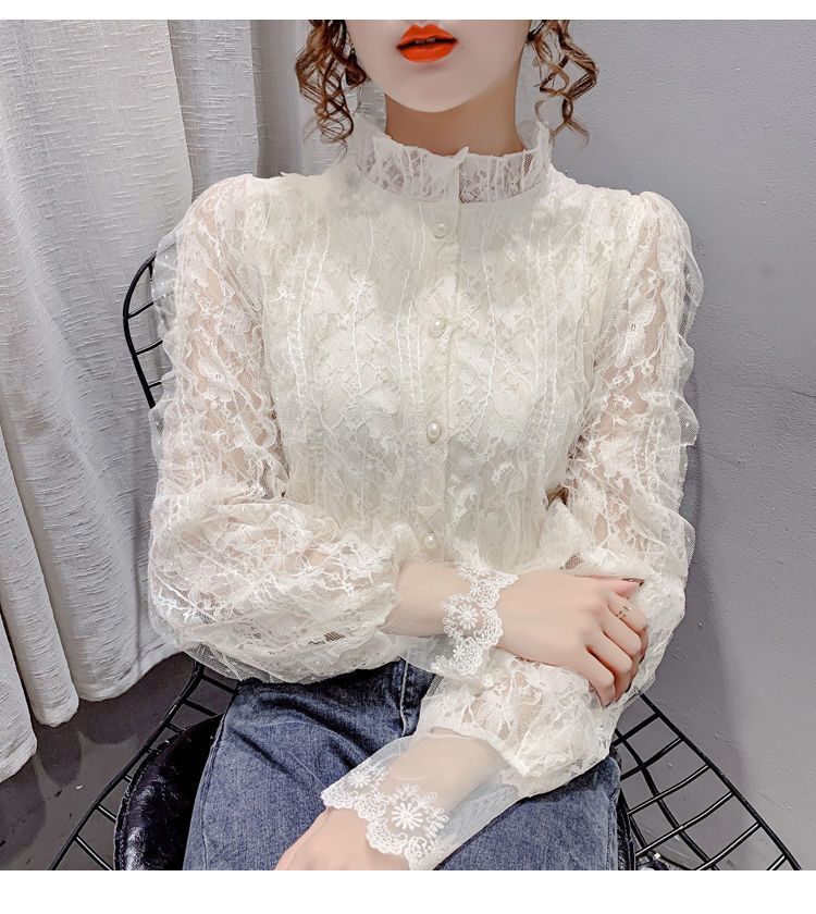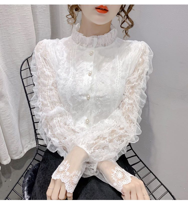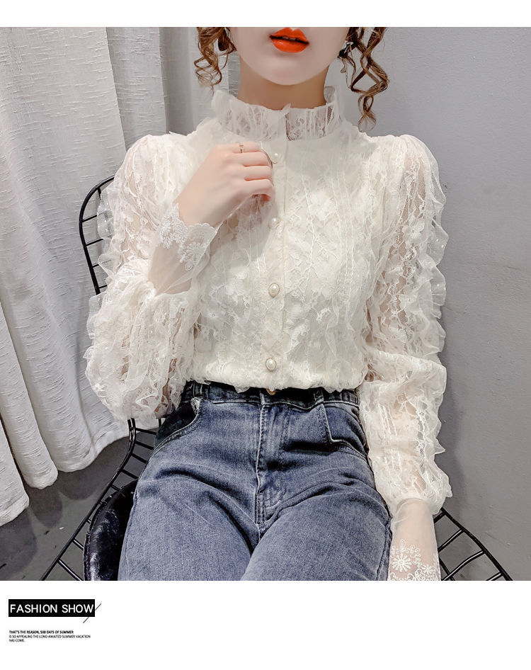 레이스베이스 셔츠 여성용 봄과 가을 새로운 도착 기모 웨스턴 스타일 레이스 카디건 프렌치 스타일 칼라 롱 슬리브 탑