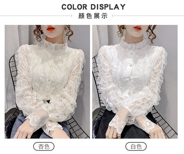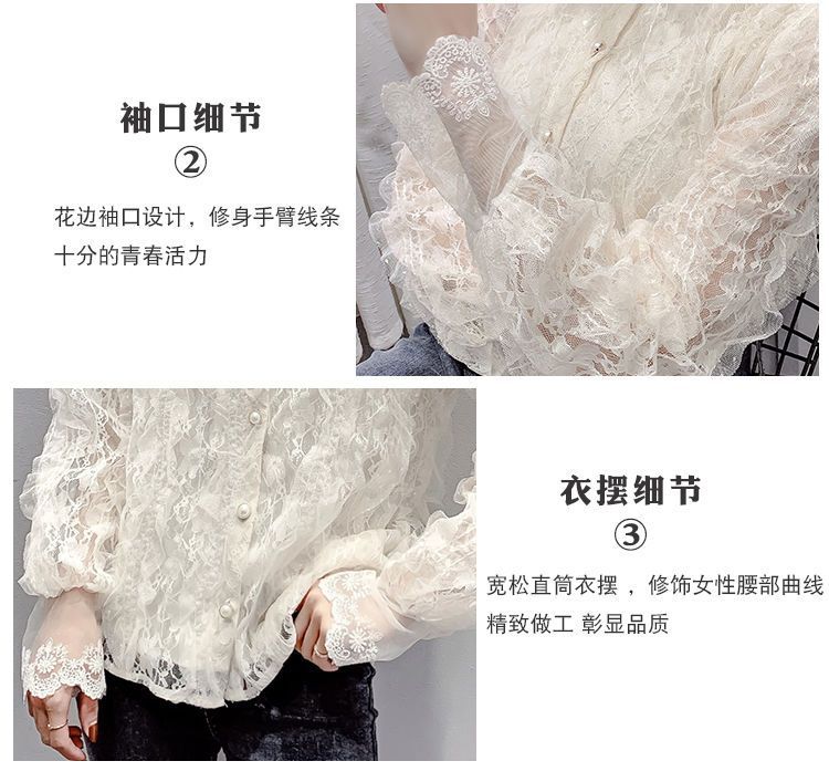 레이스베이스 셔츠 여성용 봄과 가을 새로운 도착 기모 웨스턴 스타일 레이스 카디건 프렌치 스타일 칼라 롱 슬리브 탑스토어 가기