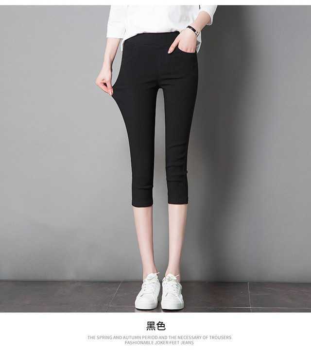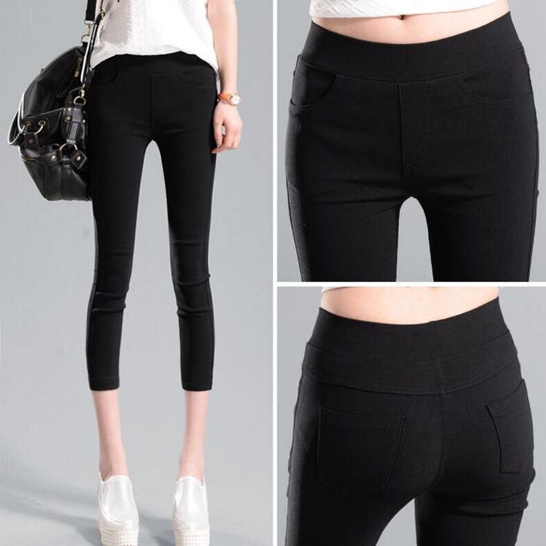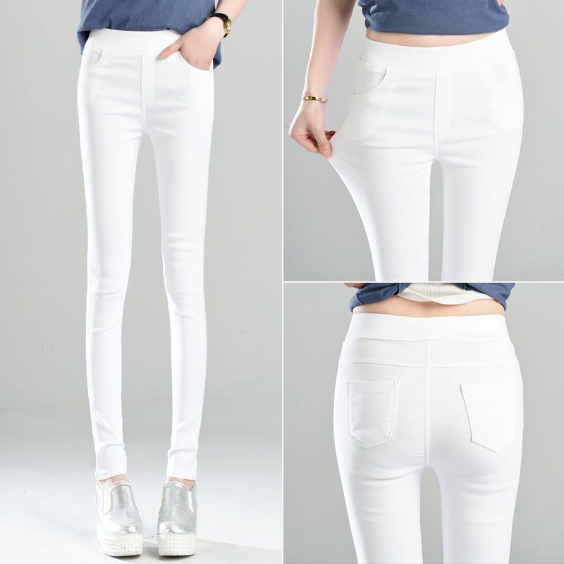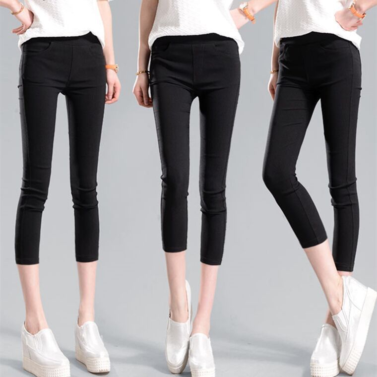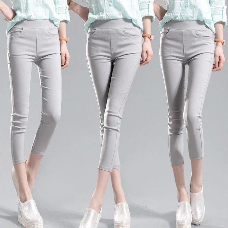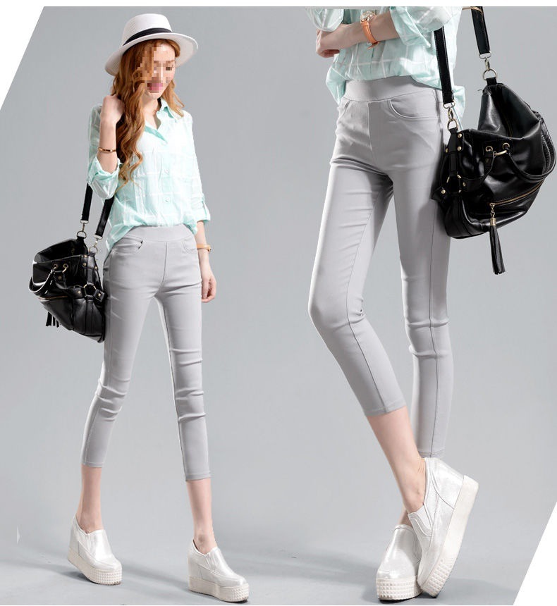 봄과 여름 새로운 회색 검은 색 바지 바깥 쪽 얇은 레깅스 연필 바지 높은 허리 얇은 레깅스 여성의 높은 스트레칭스토어 가기