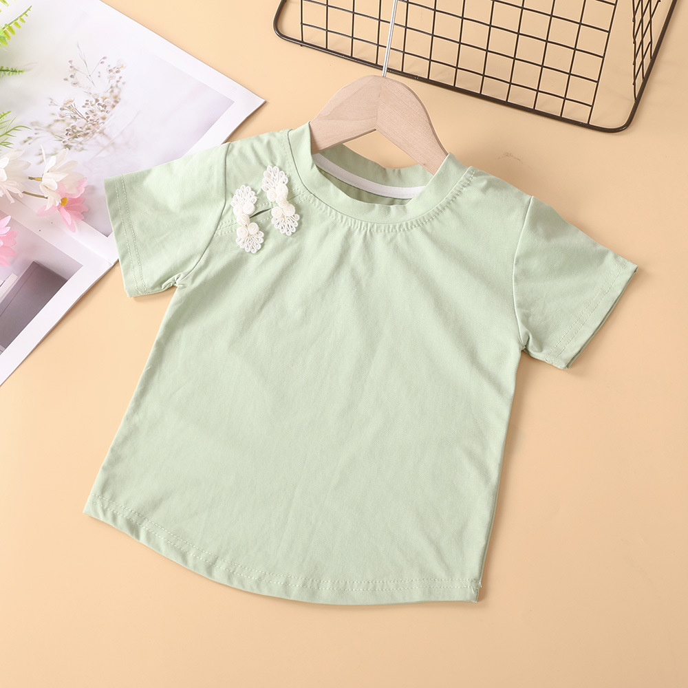 여아 2025 여름 반팔 의류 아동용 베이스 레이어 셔츠 여름 신상 중국풍 반팔 티셔츠 공주풍 어린이 민족풍 의류