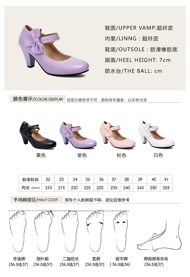 달콤한 활 신발 대외 무역 플러스 사이즈 여성 신발 40-48 사이즈 스몰 사이즈 33 사이즈 두꺼운 하이힐 메리 제인 신발스토어 가기