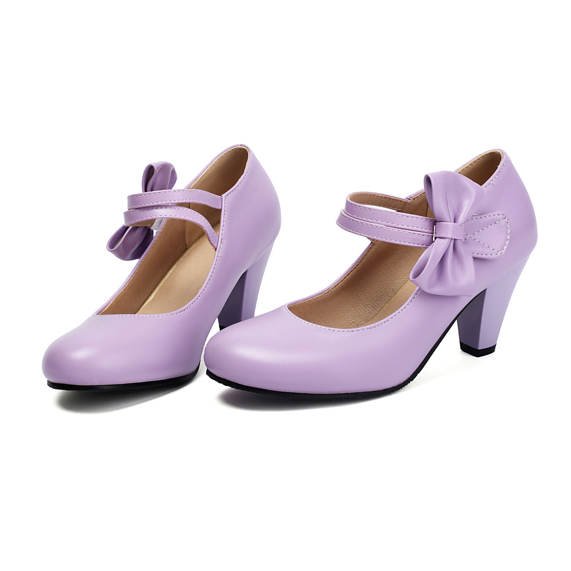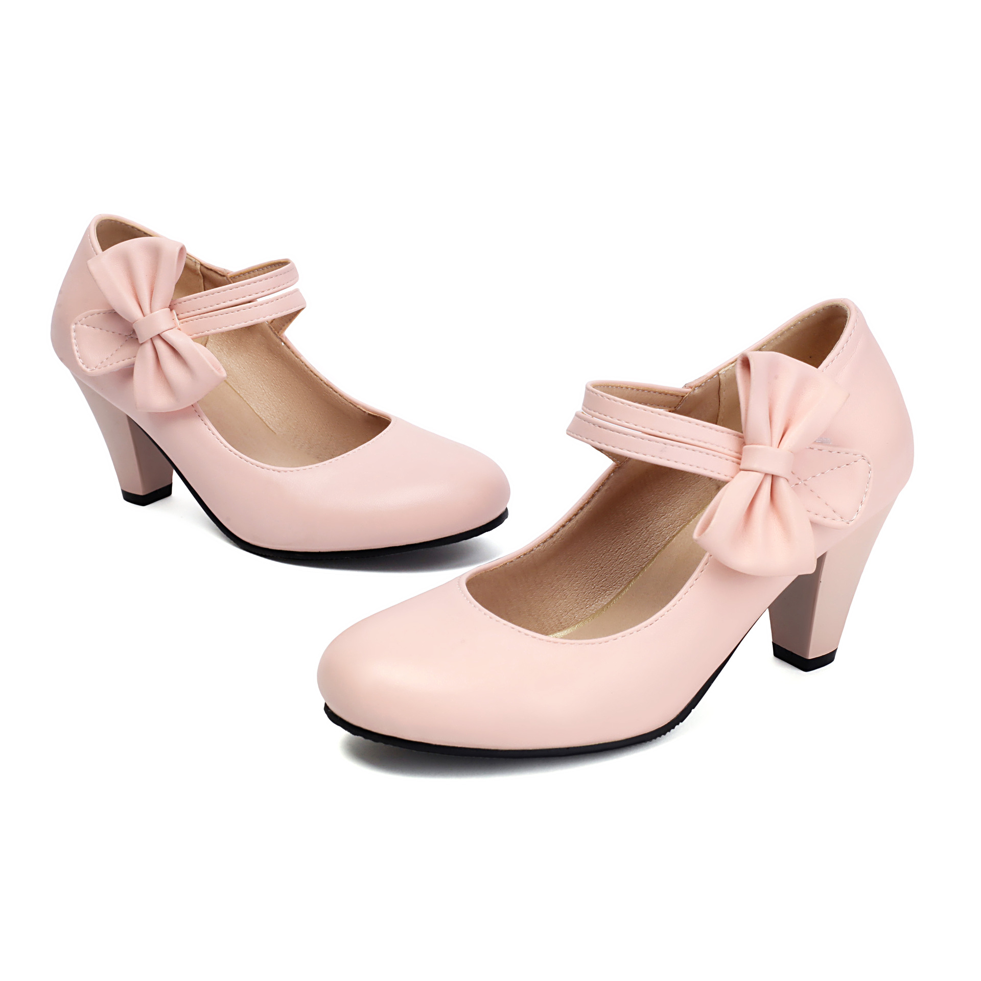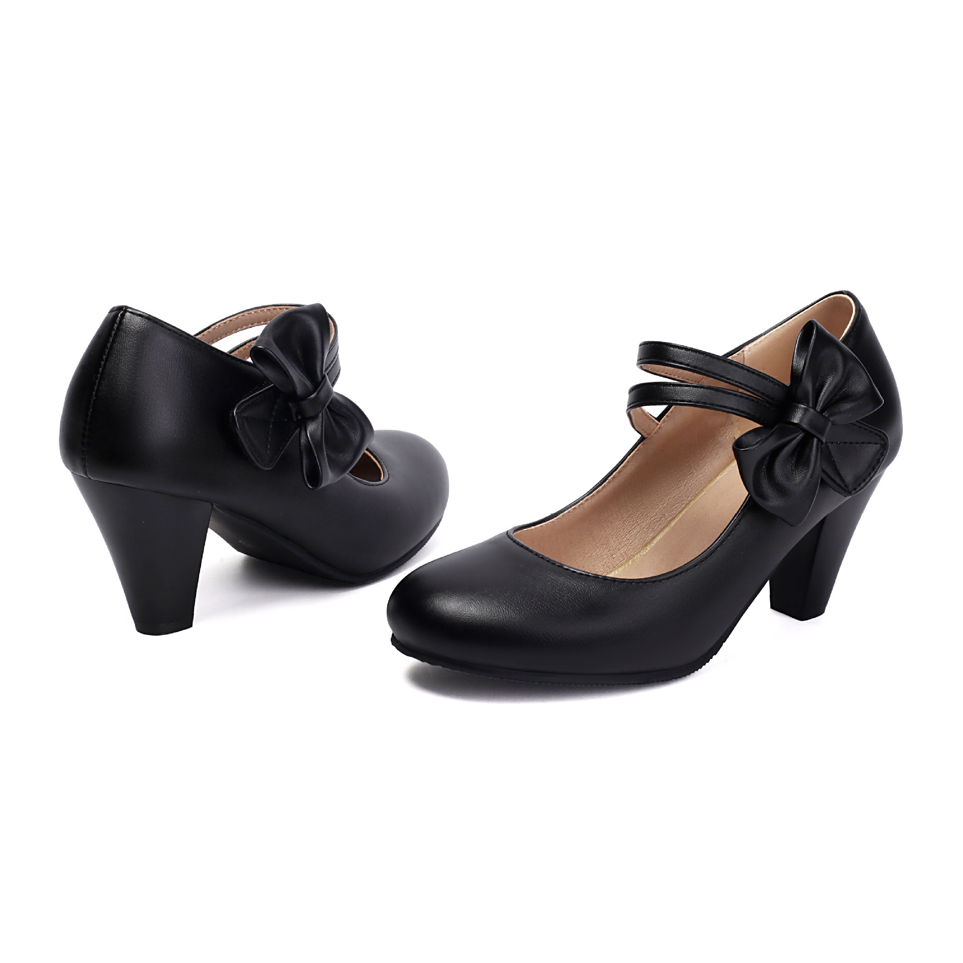 달콤한 활 신발 대외 무역 플러스 사이즈 여성 신발 40-48 사이즈 스몰 사이즈 33 사이즈 두꺼운 하이힐 메리 제인 신발