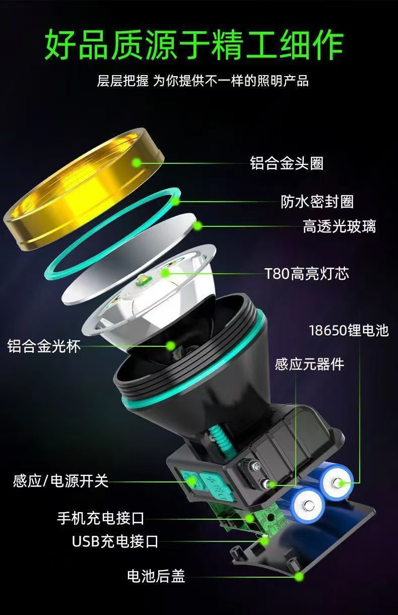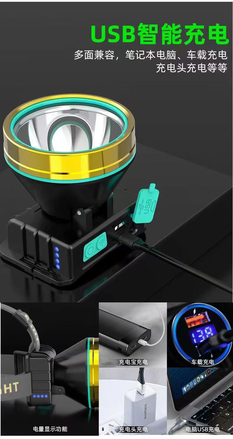 강한 빛 유도 전조등 LED 충전식 야외 조명 손전등 헤드 장착 고출력 광부의 램프 야간 낚시 램프스토어 가기