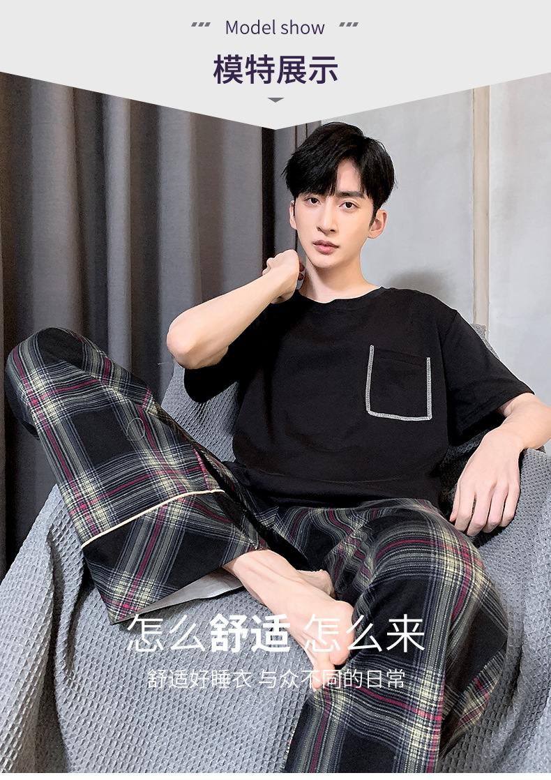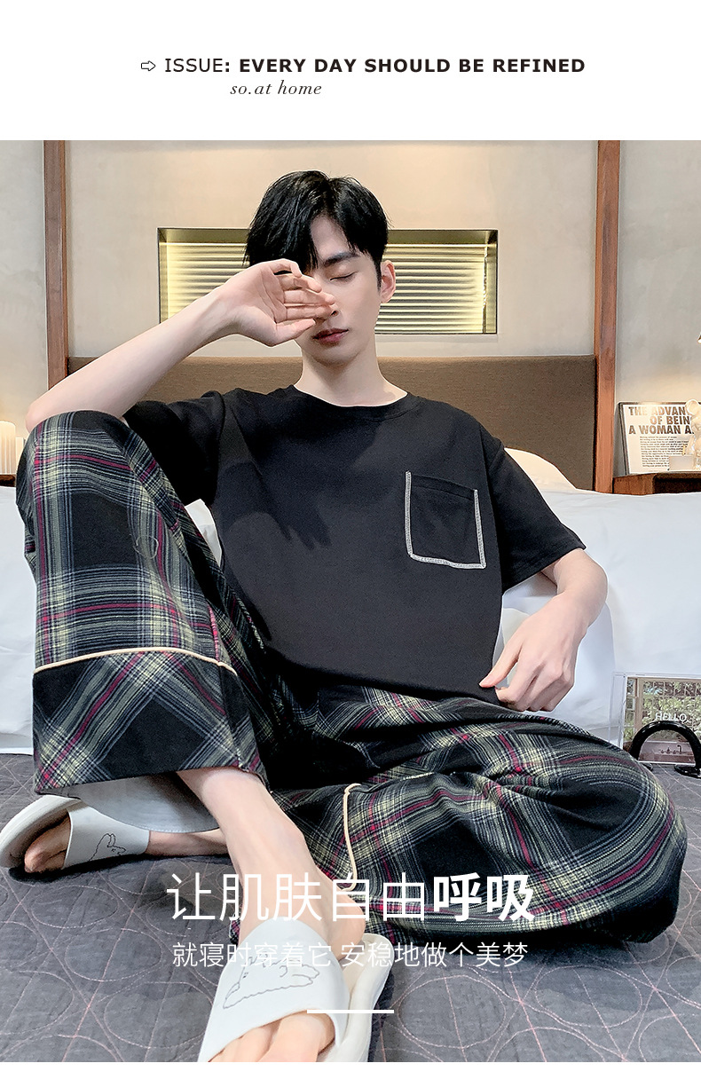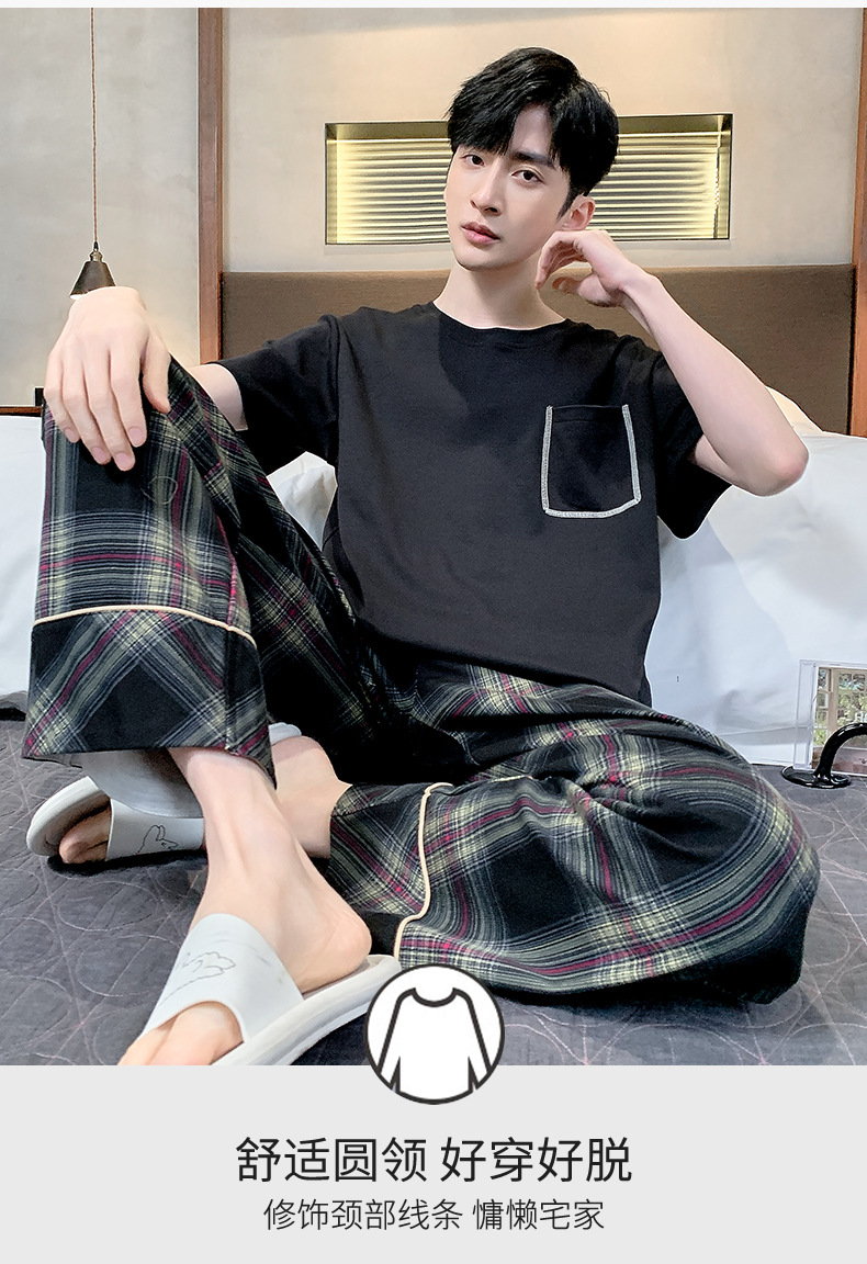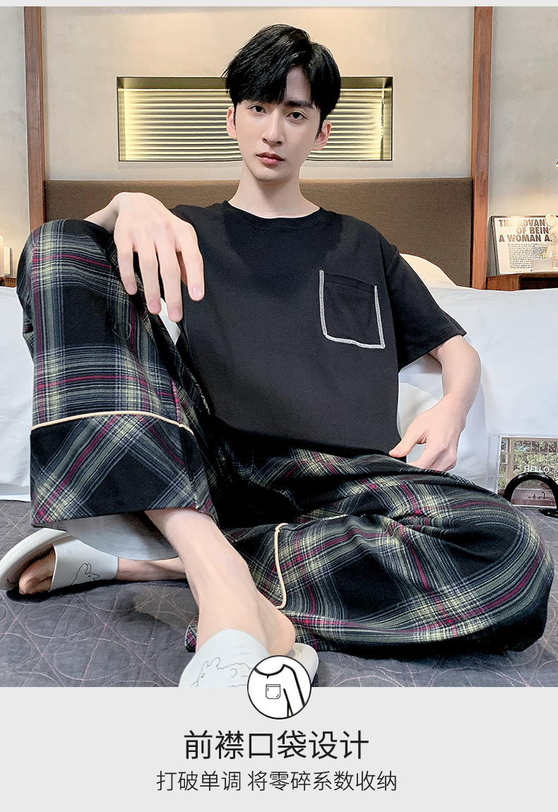 잠옷 남자 여름 반팔 바지 간단한 홈 젊은 학생 및 남성 플러스 사이즈 얇은 면 캐주얼 잠옷