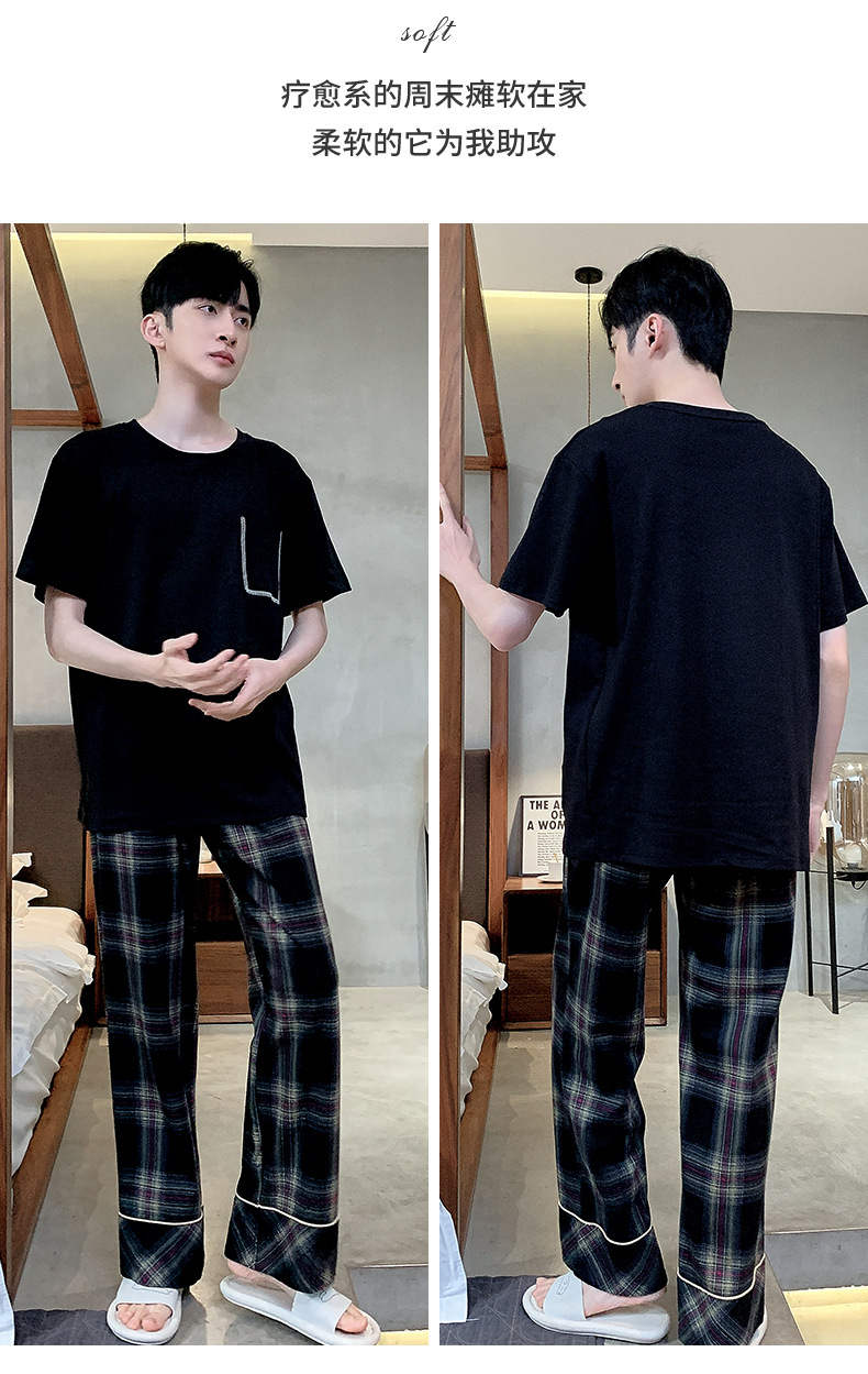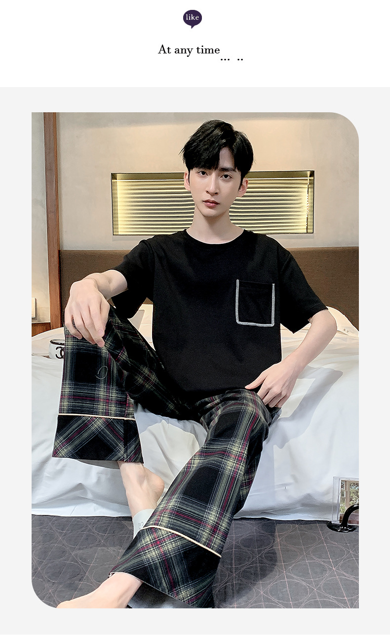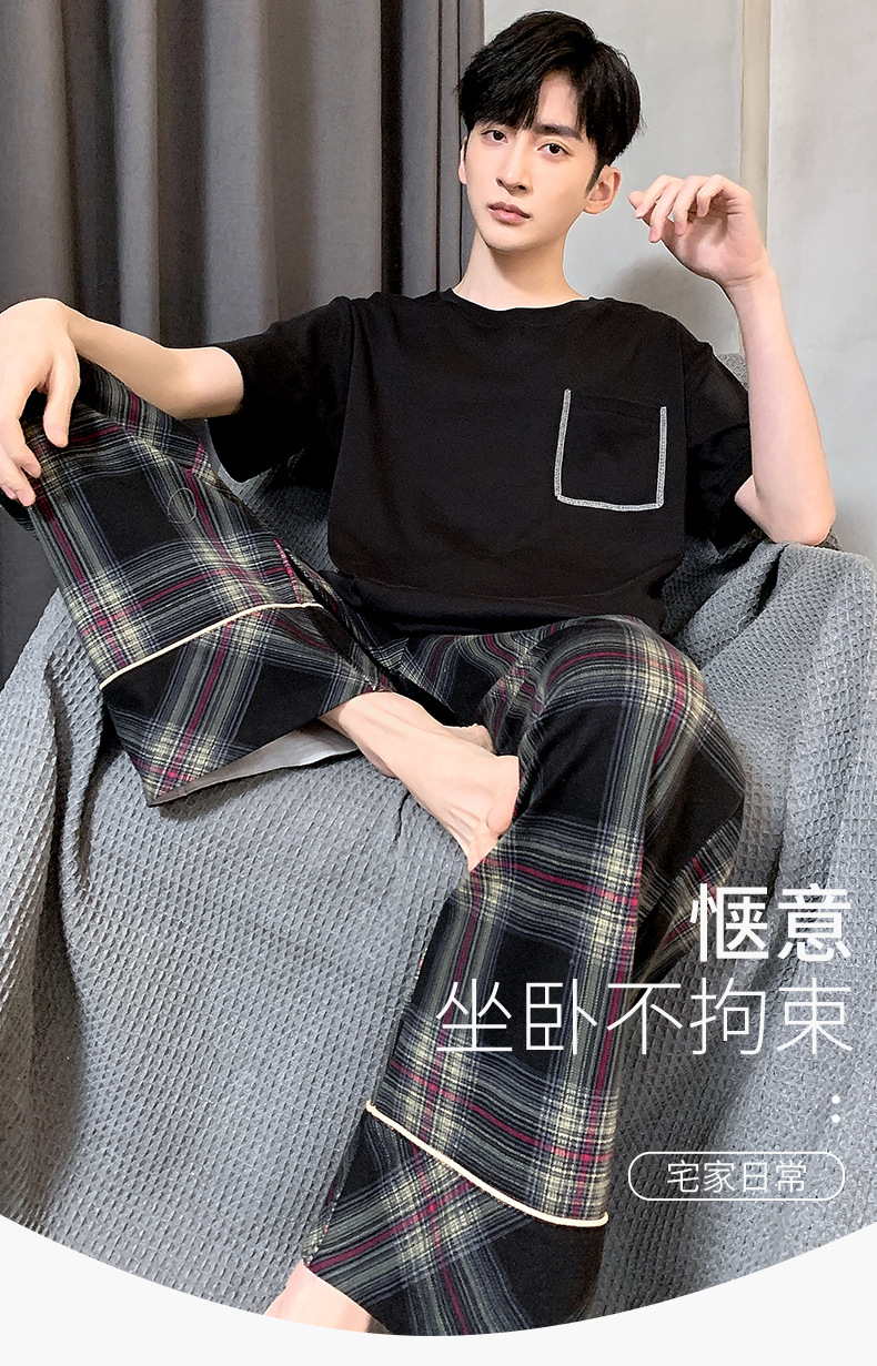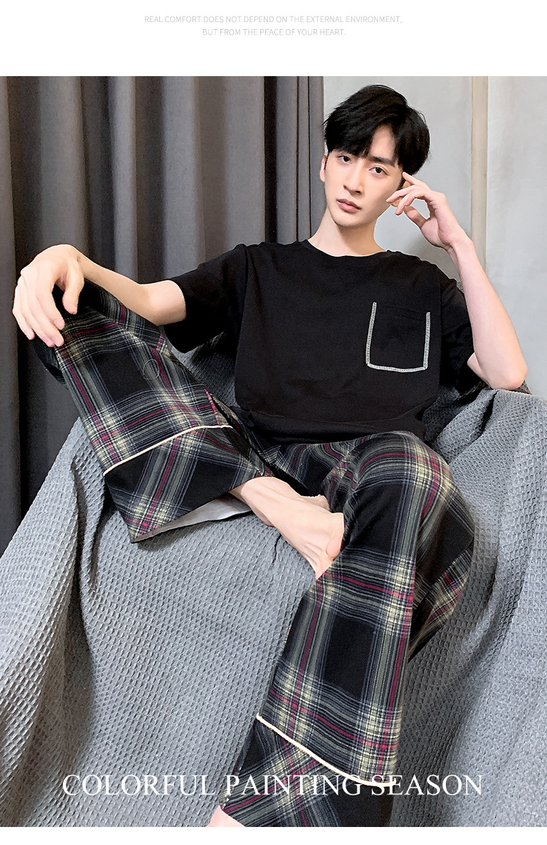 잠옷 남자 여름 반팔 바지 간단한 홈 젊은 학생 및 남성 플러스 사이즈 얇은 면 캐주얼 잠옷