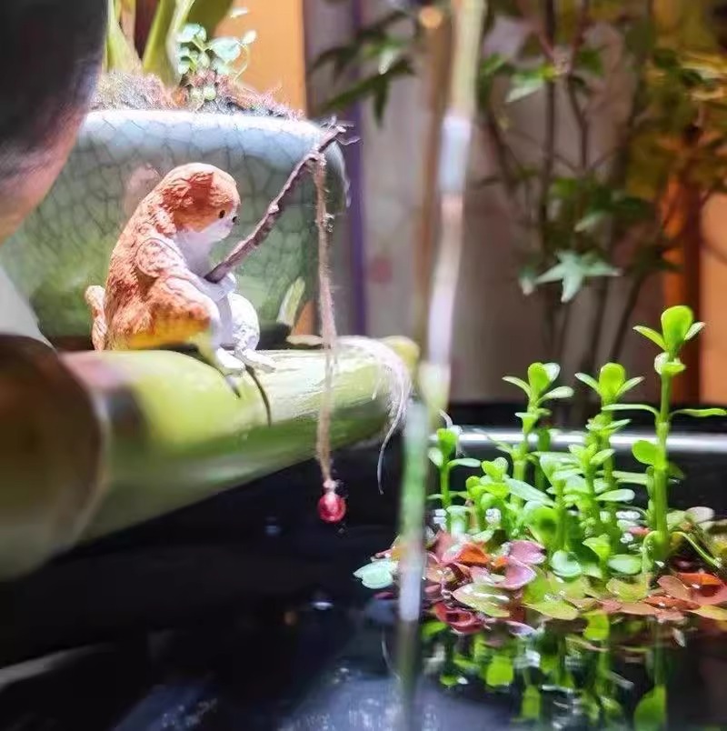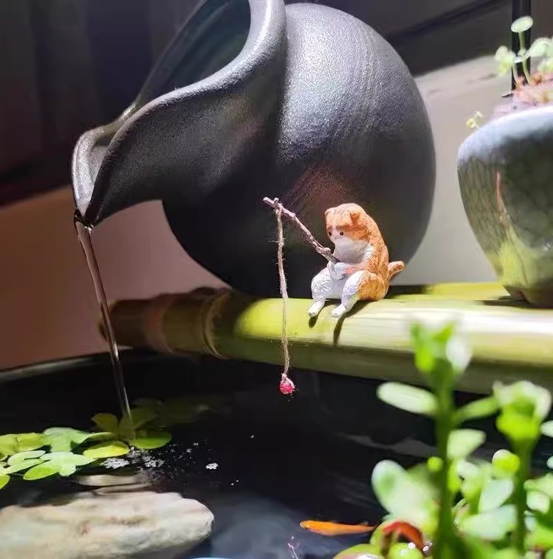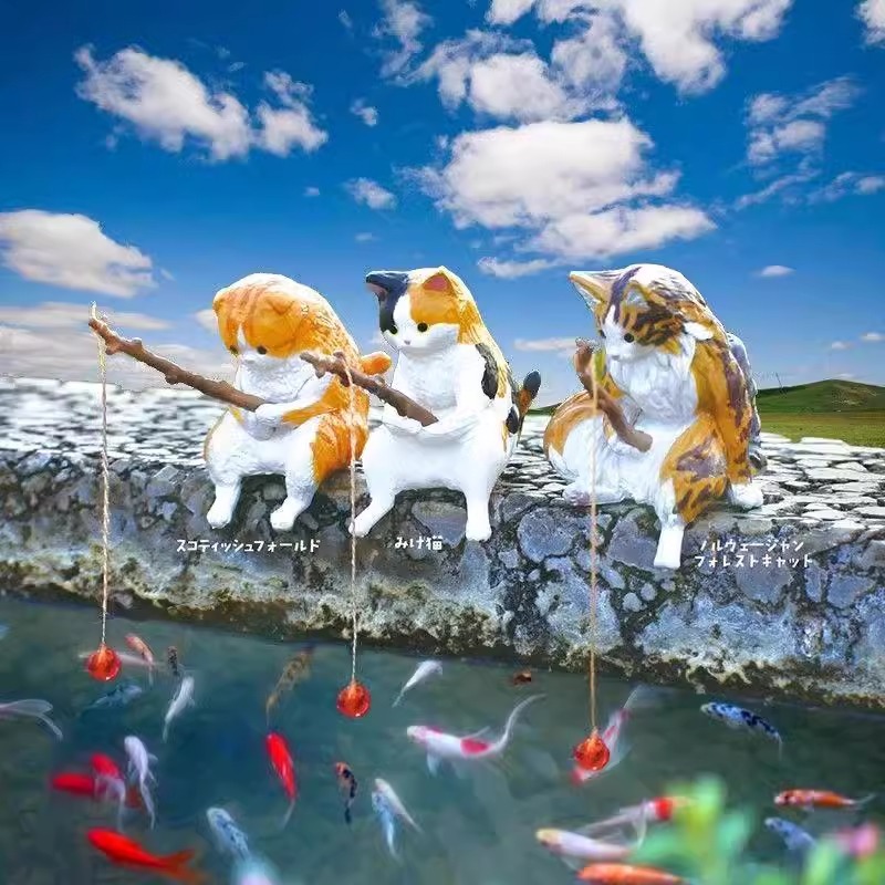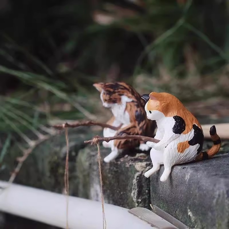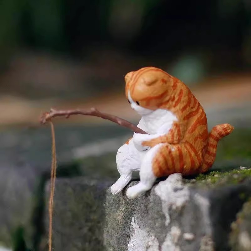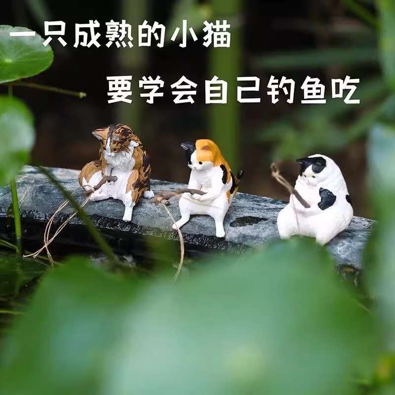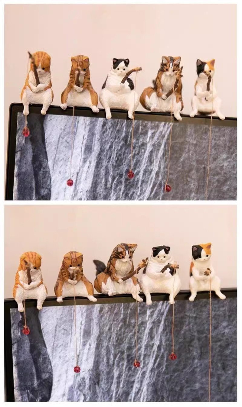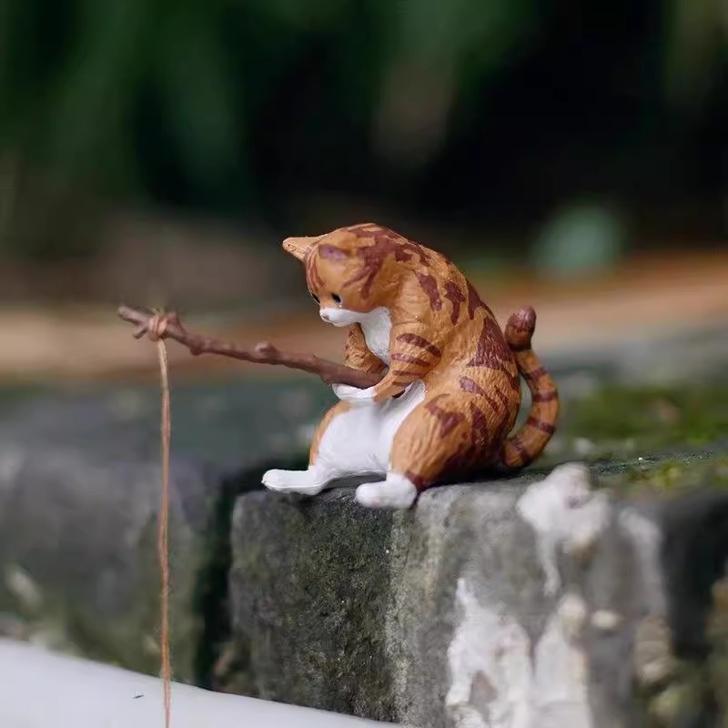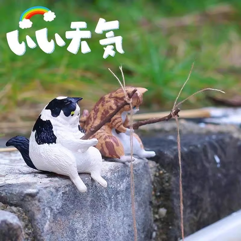 물고기 탱크 낚시 고양이 교수형 창조적 인 조경 장식품 사무실 장식품 낚시 좋은 날씨 미니 장식 마이크로 풍경스토어 가기