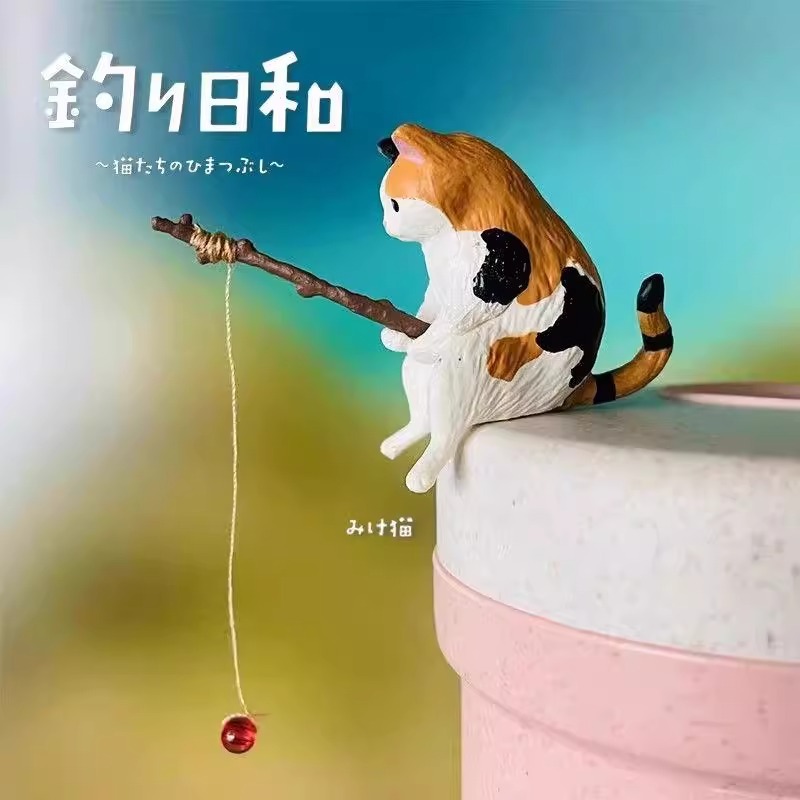 물고기 탱크 낚시 고양이 교수형 창조적 인 조경 장식품 사무실 장식품 낚시 좋은 날씨 미니 장식 마이크로 풍경