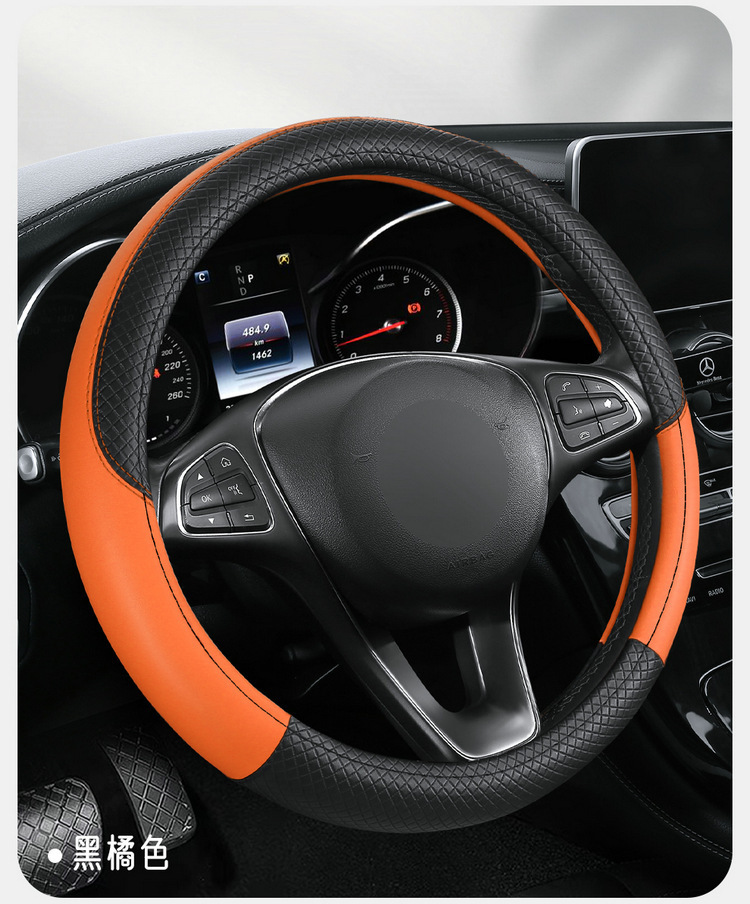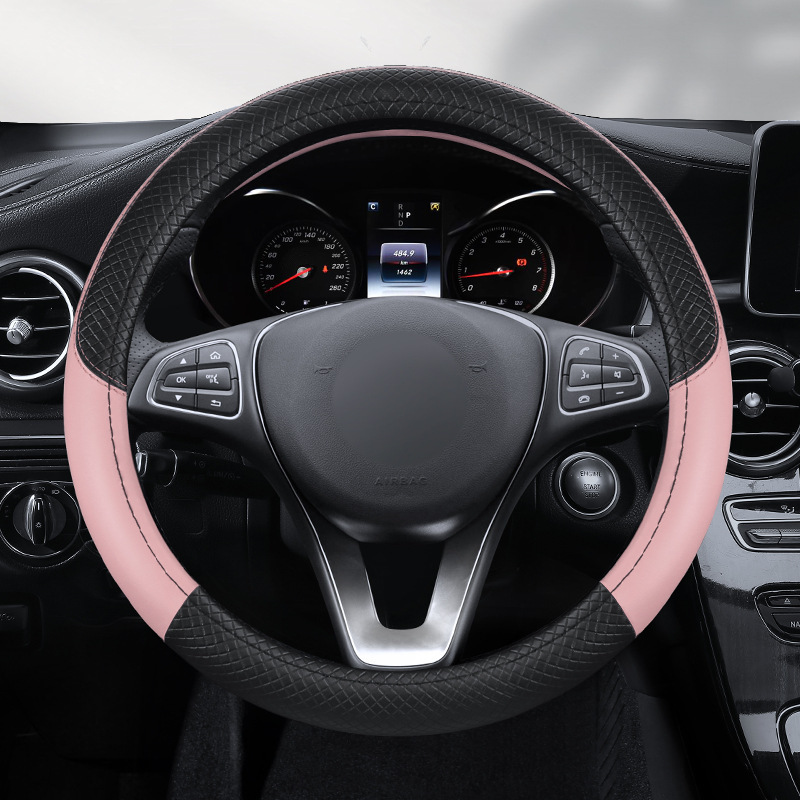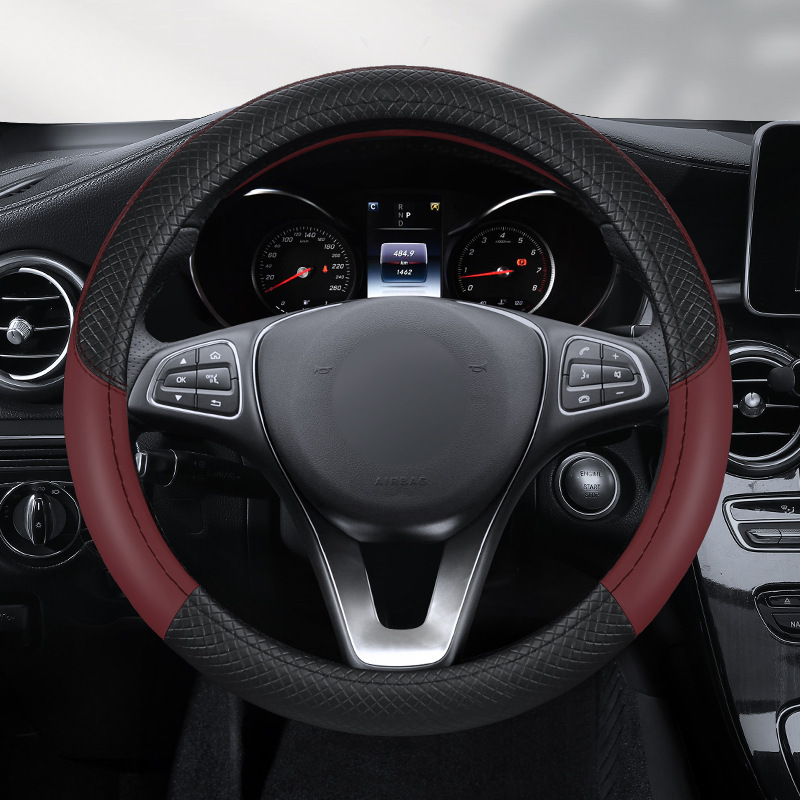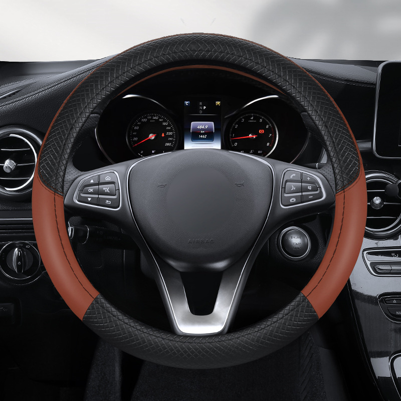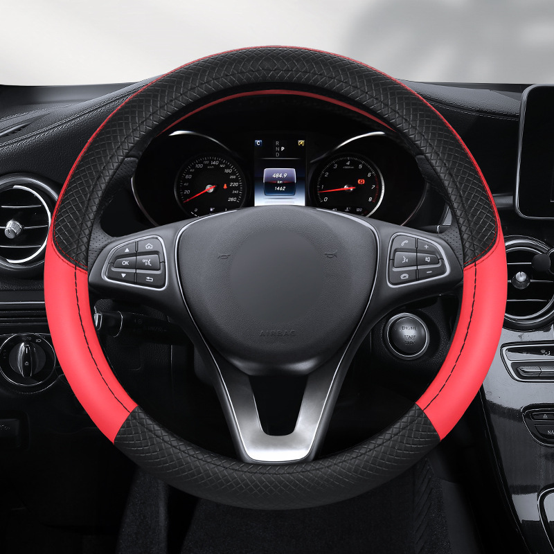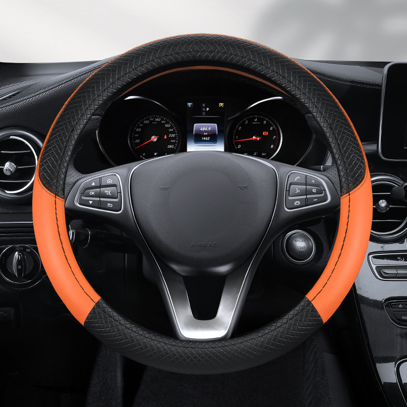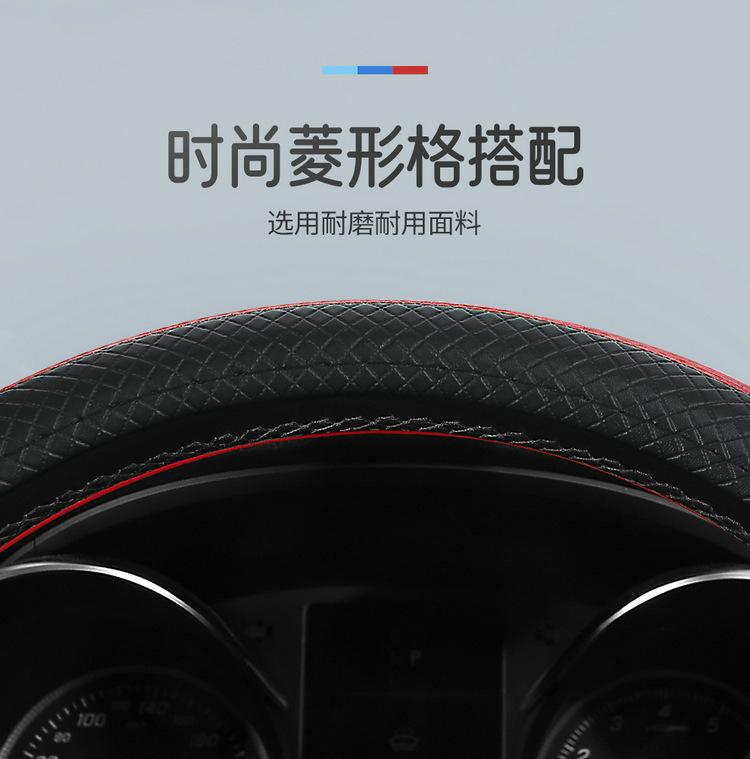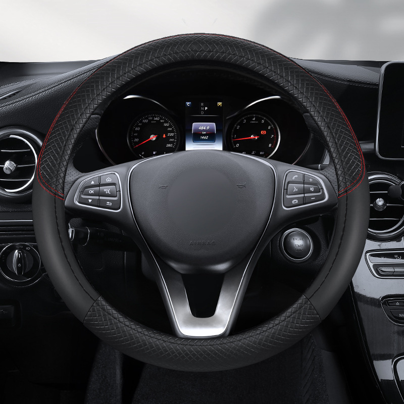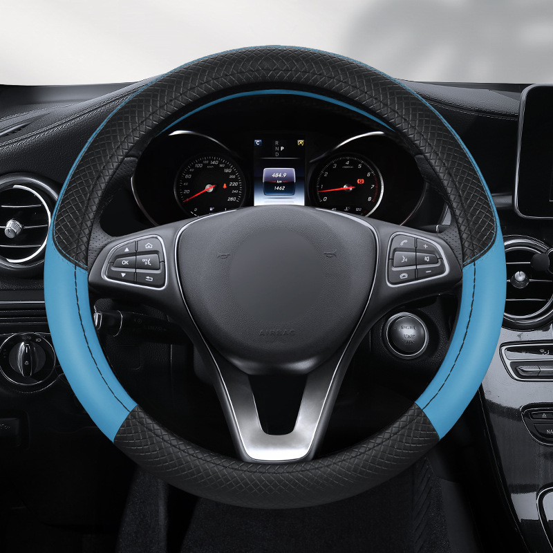 아마존 폭발 더블 라인 미끄럼 방지 통기성 땀 흡수성 스티어링 휠 커버 사계절 유니버설 가죽 양각 환경 보호 자동차 핸디캡 커버