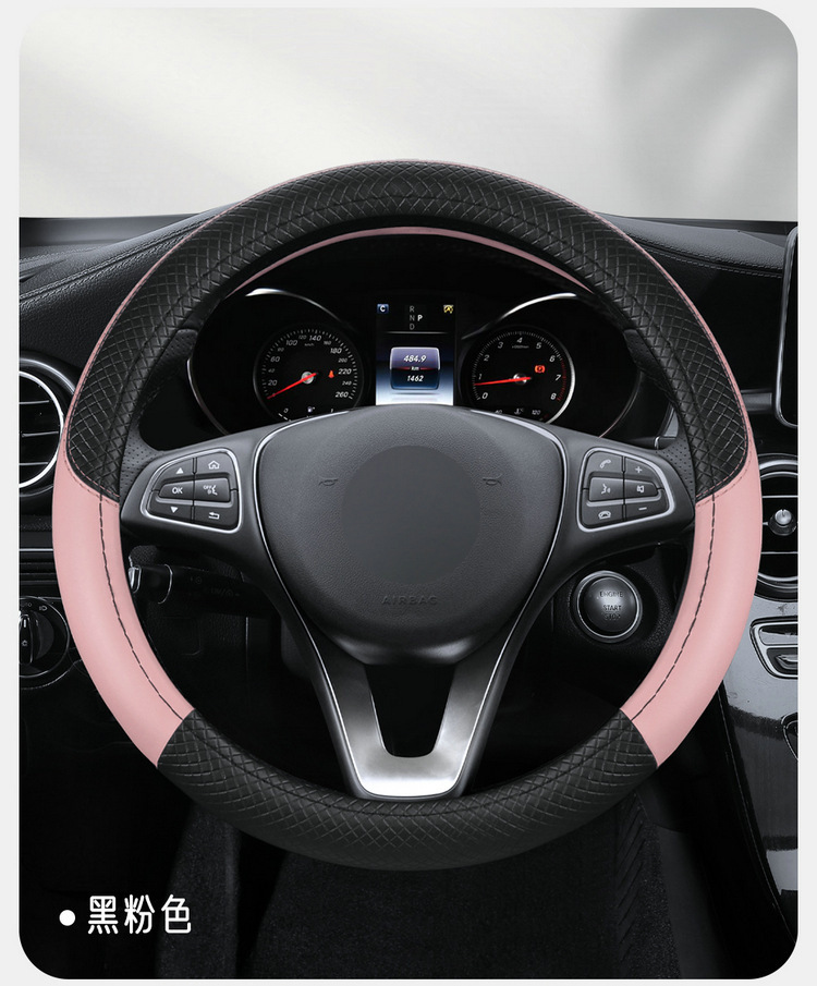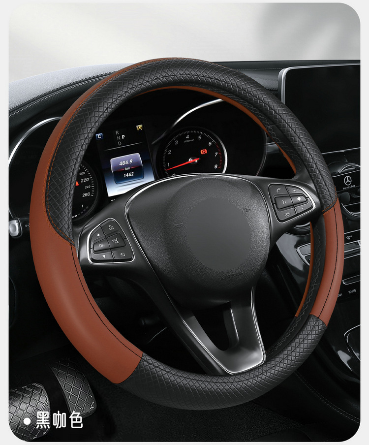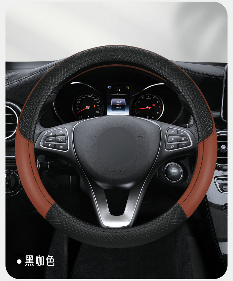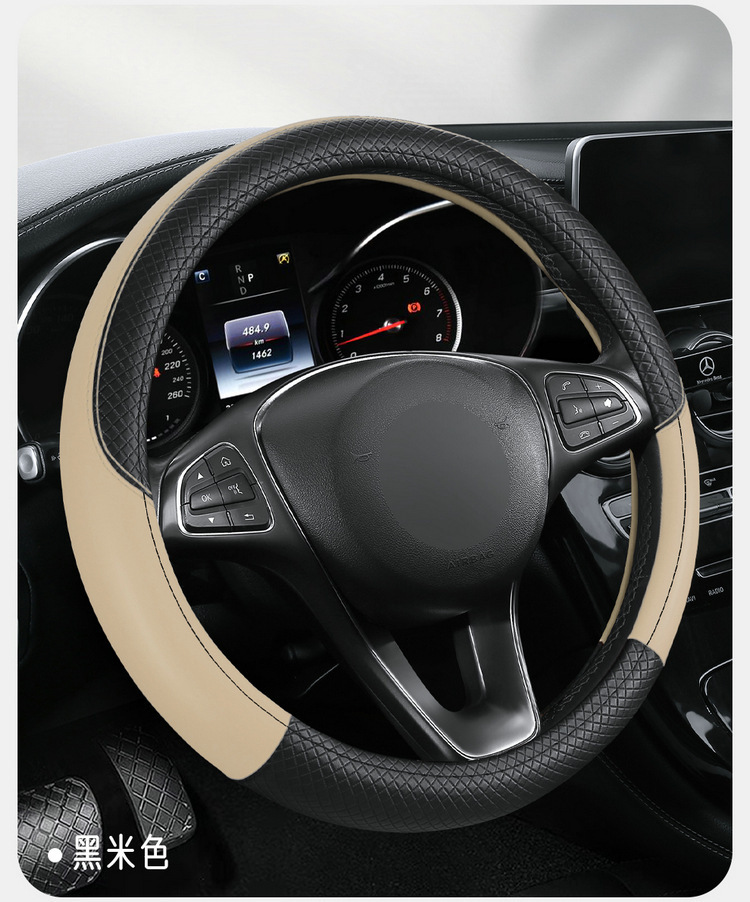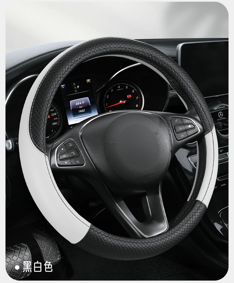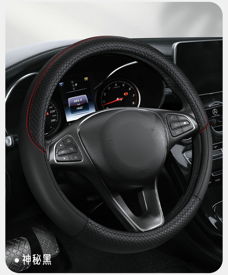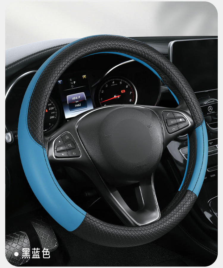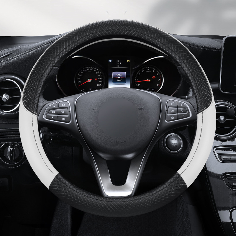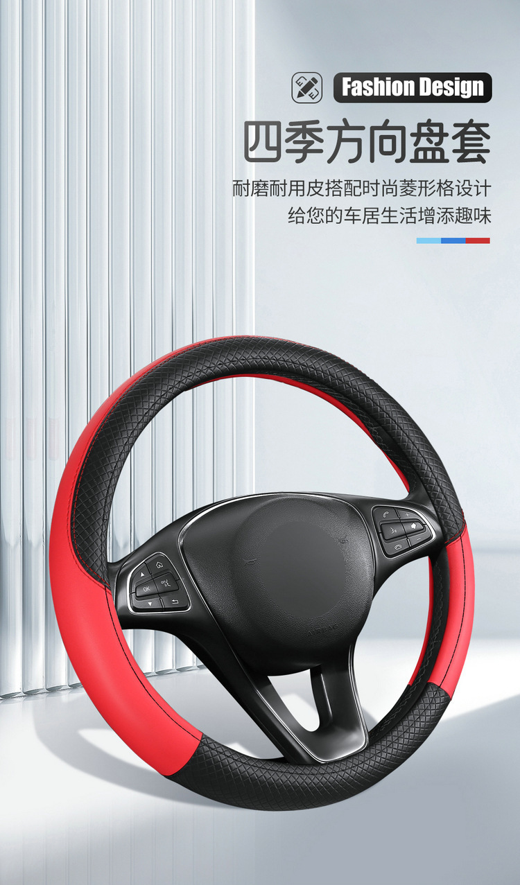 아마존 폭발 더블 라인 미끄럼 방지 통기성 땀 흡수성 스티어링 휠 커버 사계절 유니버설 가죽 양각 환경 보호 자동차 핸디캡 커버