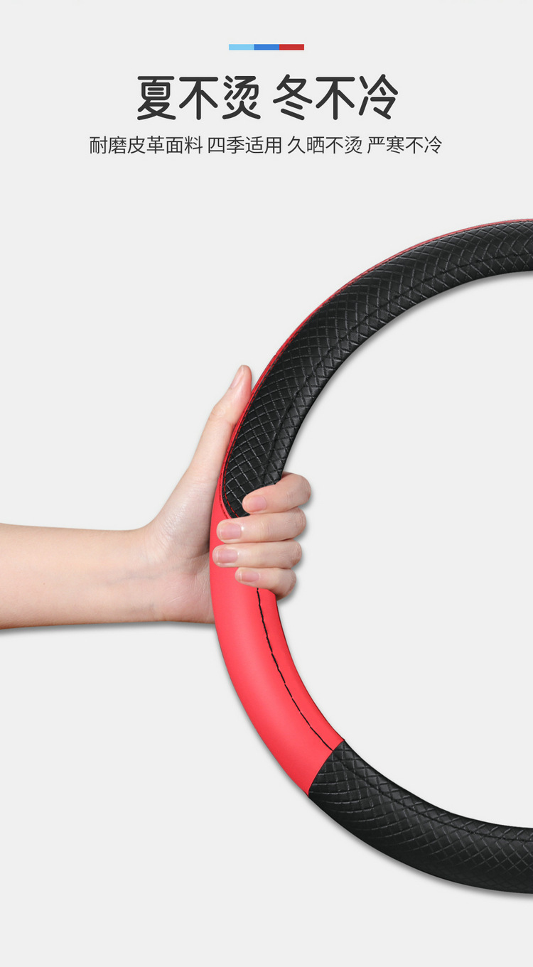 아마존 폭발 더블 라인 미끄럼 방지 통기성 땀 흡수성 스티어링 휠 커버 사계절 유니버설 가죽 양각 환경 보호 자동차 핸디캡 커버스토어 가기
