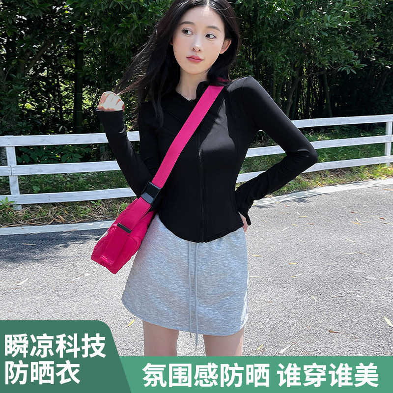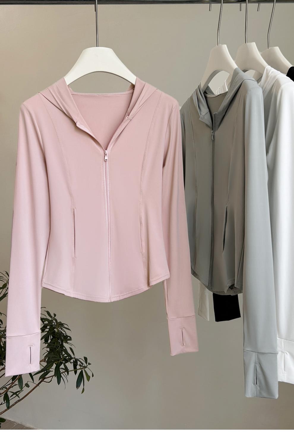 슬림핏 핑크 태양 보호 의류 여성 2025 새로운 도착 벨트 포켓 코트 여성 요가 의류 여름 태양 보호 의류스토어 가기