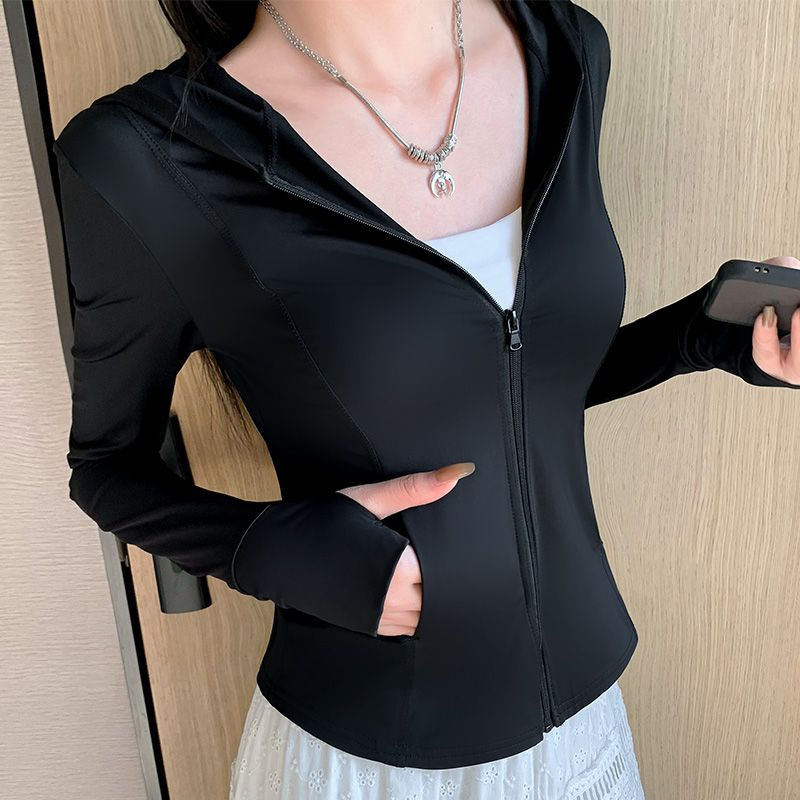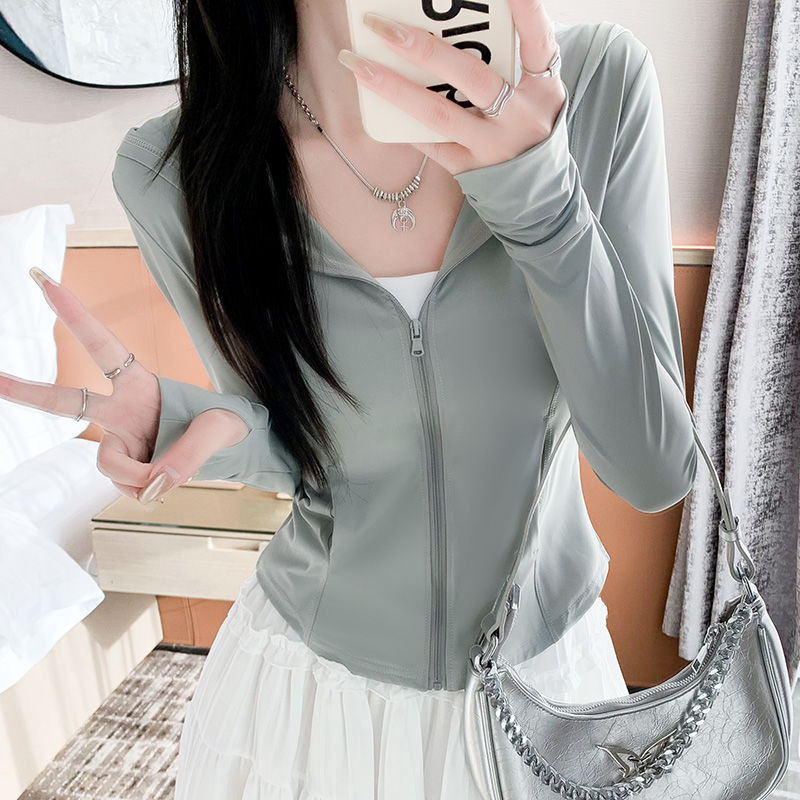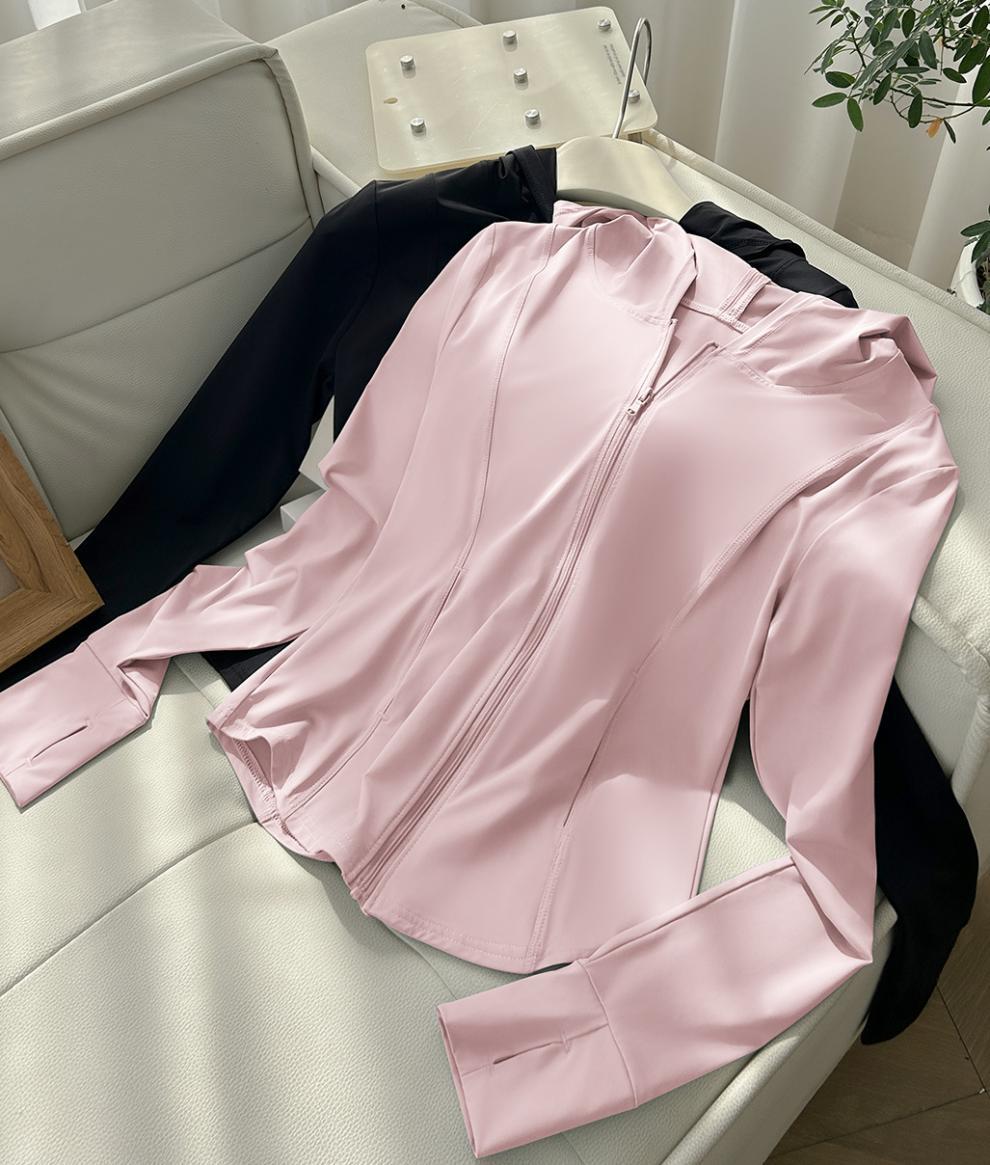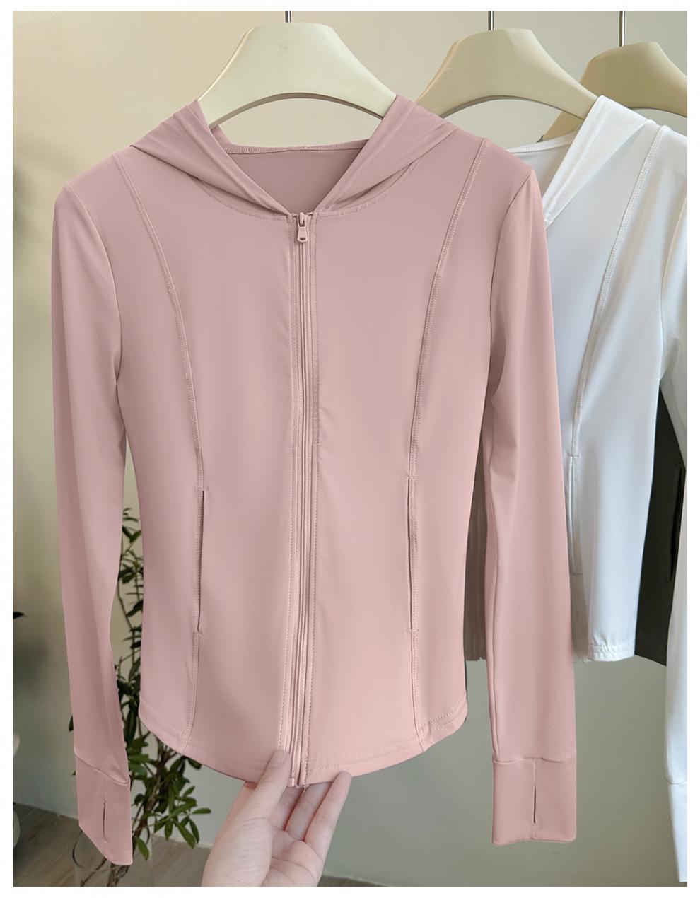 슬림핏 핑크 태양 보호 의류 여성 2025 새로운 도착 벨트 포켓 코트 여성 요가 의류 여름 태양 보호 의류