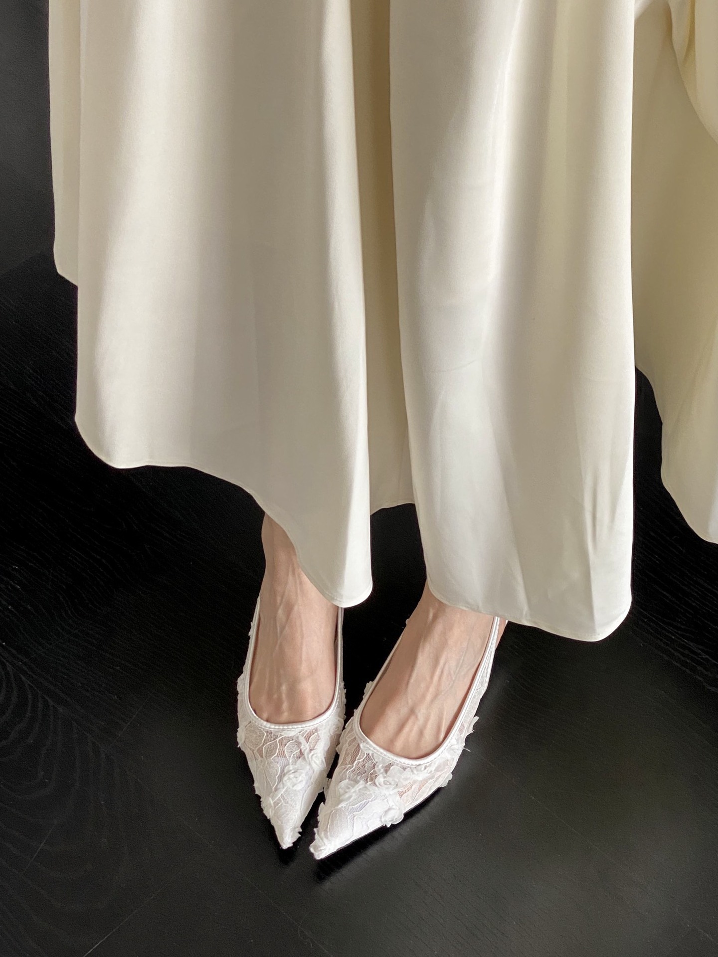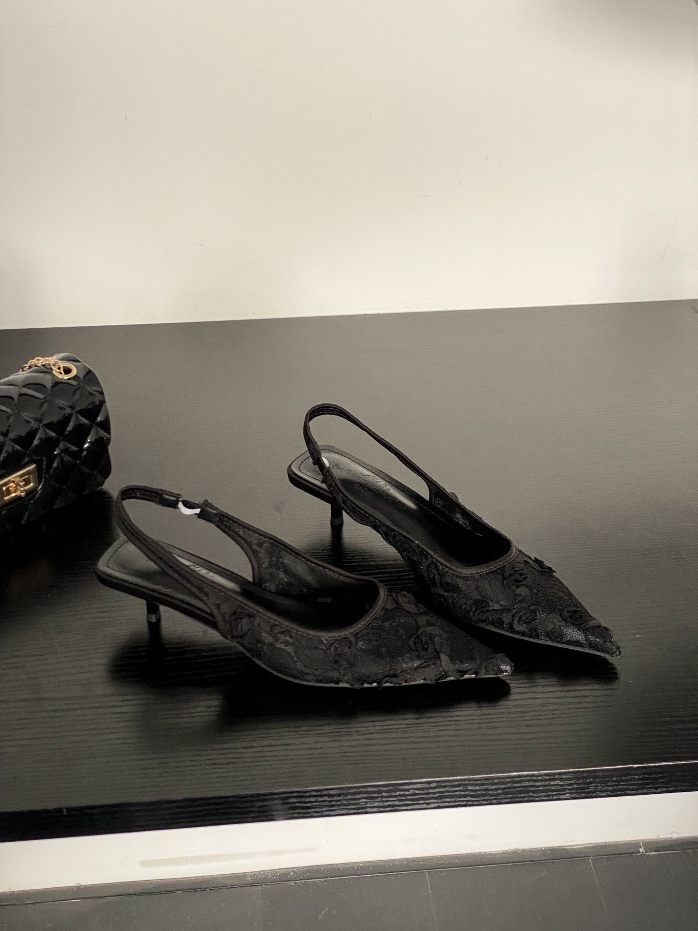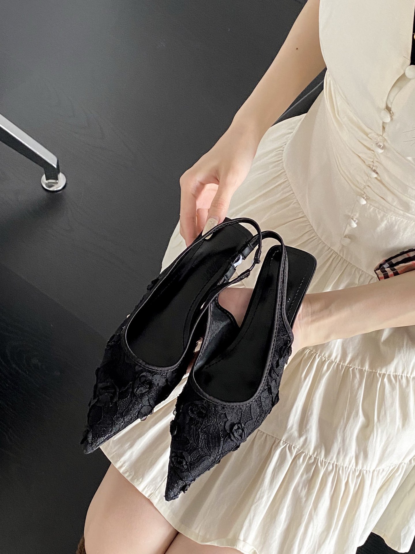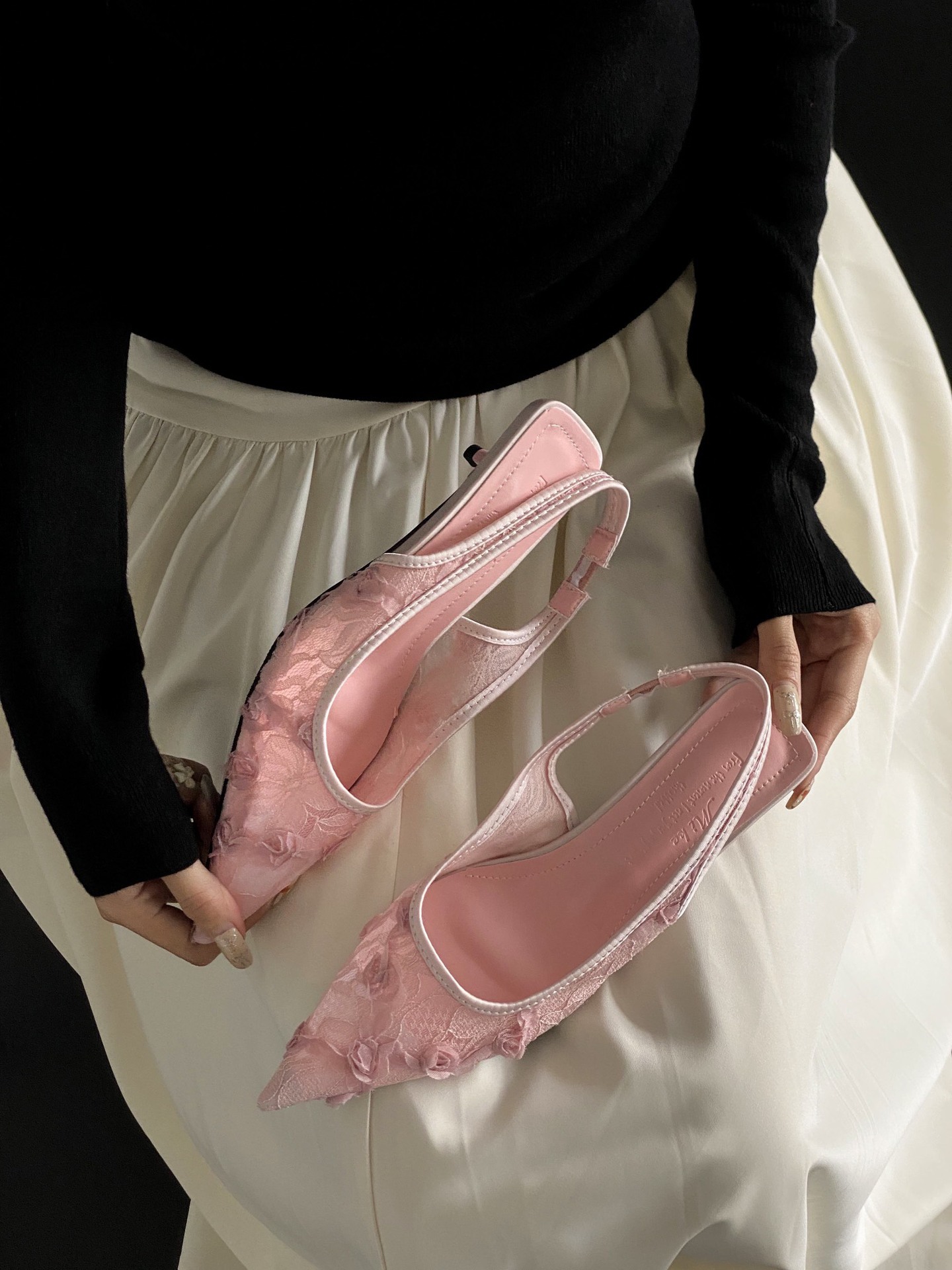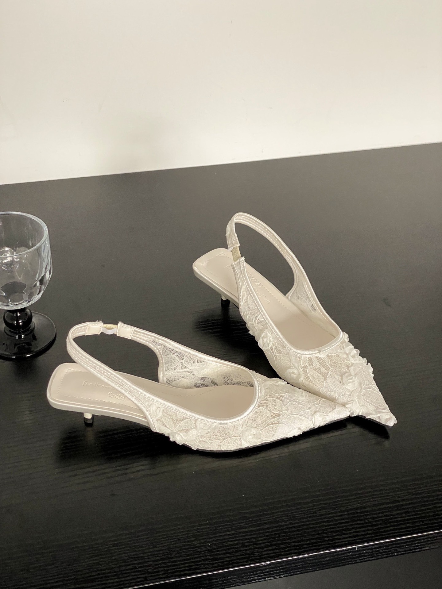 프랑스 레이스 포인팅 발가락 힐 오픈 백 샌들