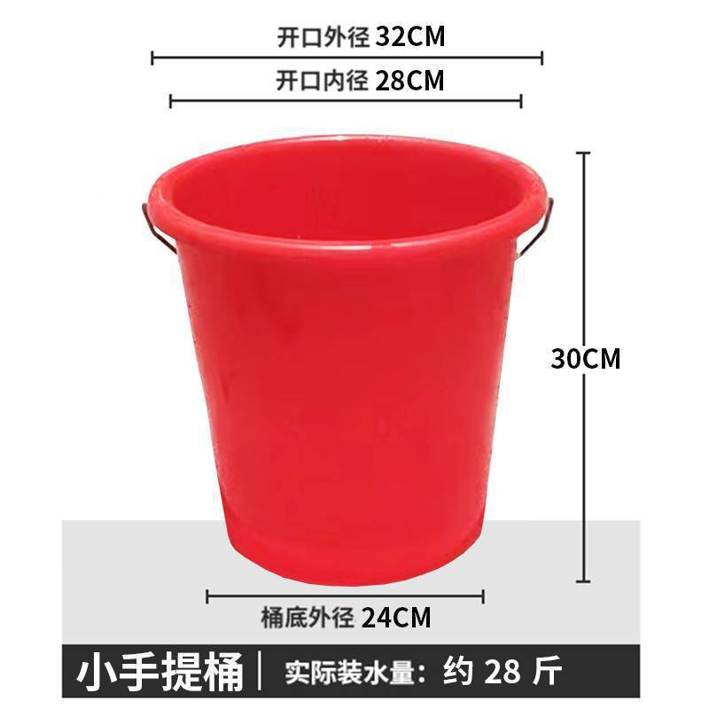 • 빨간색 작은 손으로 들고 다니는 뚜껑이 있는 양동이에 물이 약 14kg 정도 채워져 있습니다.