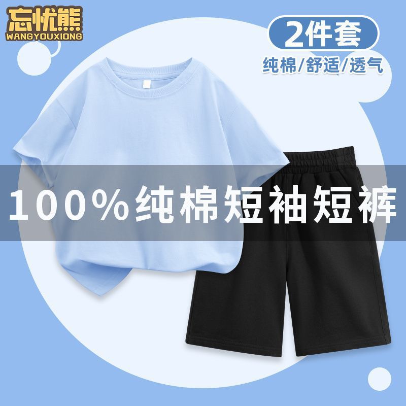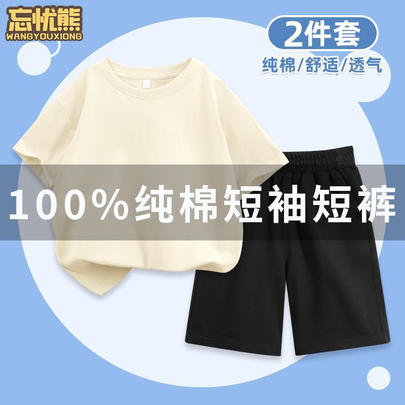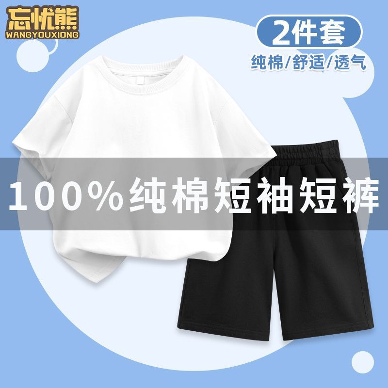 어린이 세트 화이트 솔리드 컬러 반팔 티셔츠 2024 새로운 스타일 코튼 걸스 여름 착용 소년 아동복 반바지스토어 가기