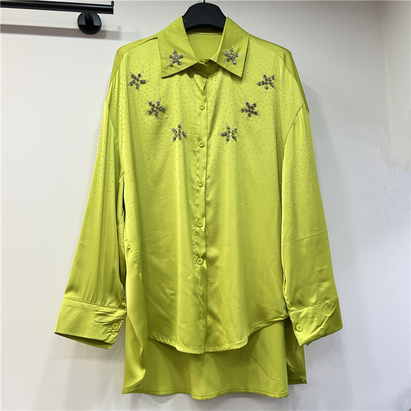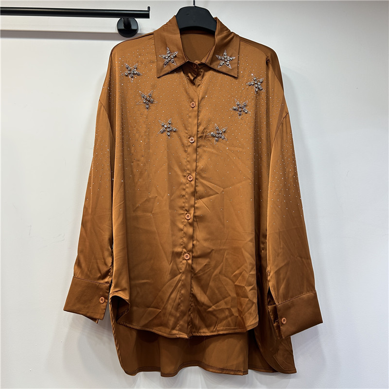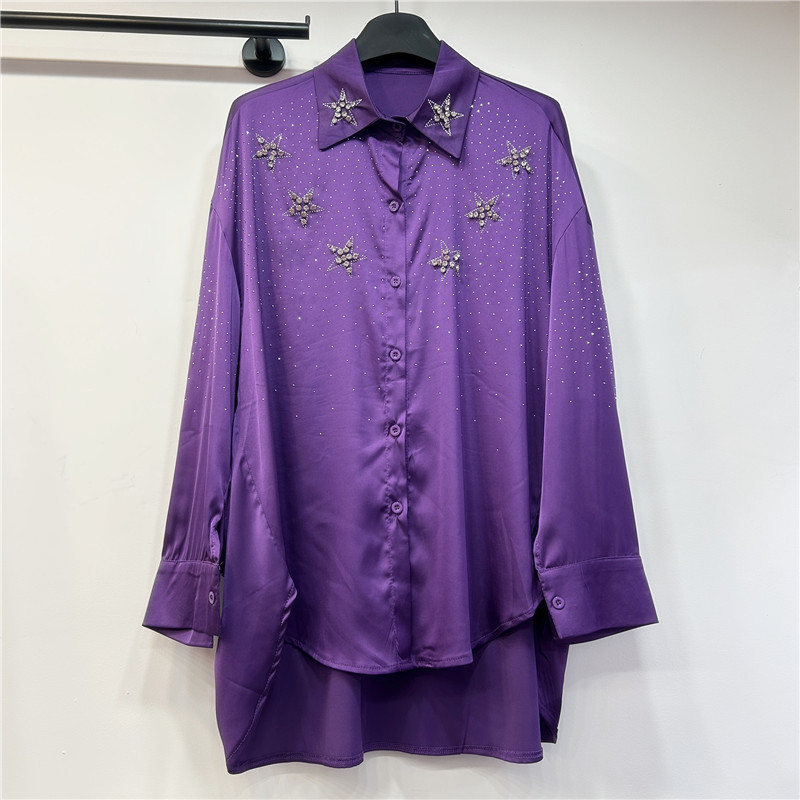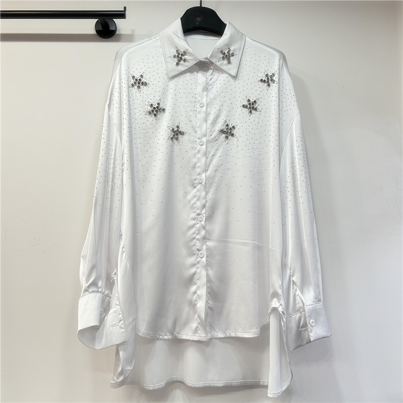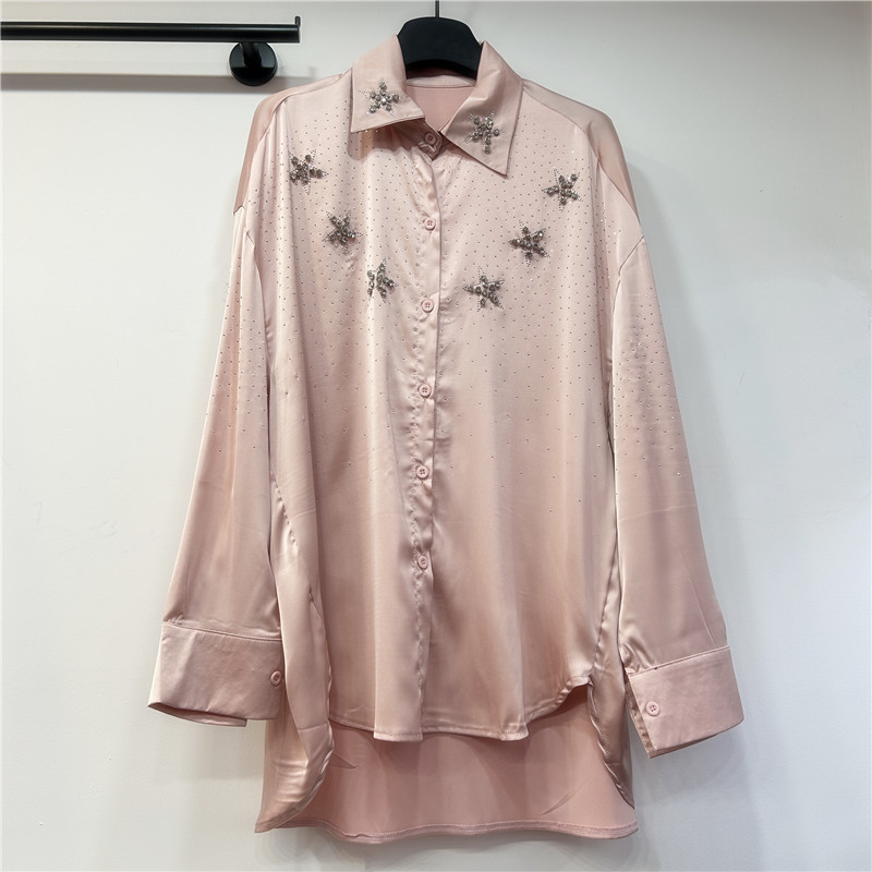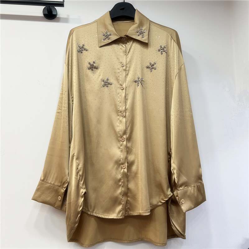 2025 봄과 여름 새로운 일본 스타일 달콤한 스타 핫 다이아몬드 프로필 쉬폰 선스크린 셔츠 여성용 게으른 스타일 루즈 셔츠