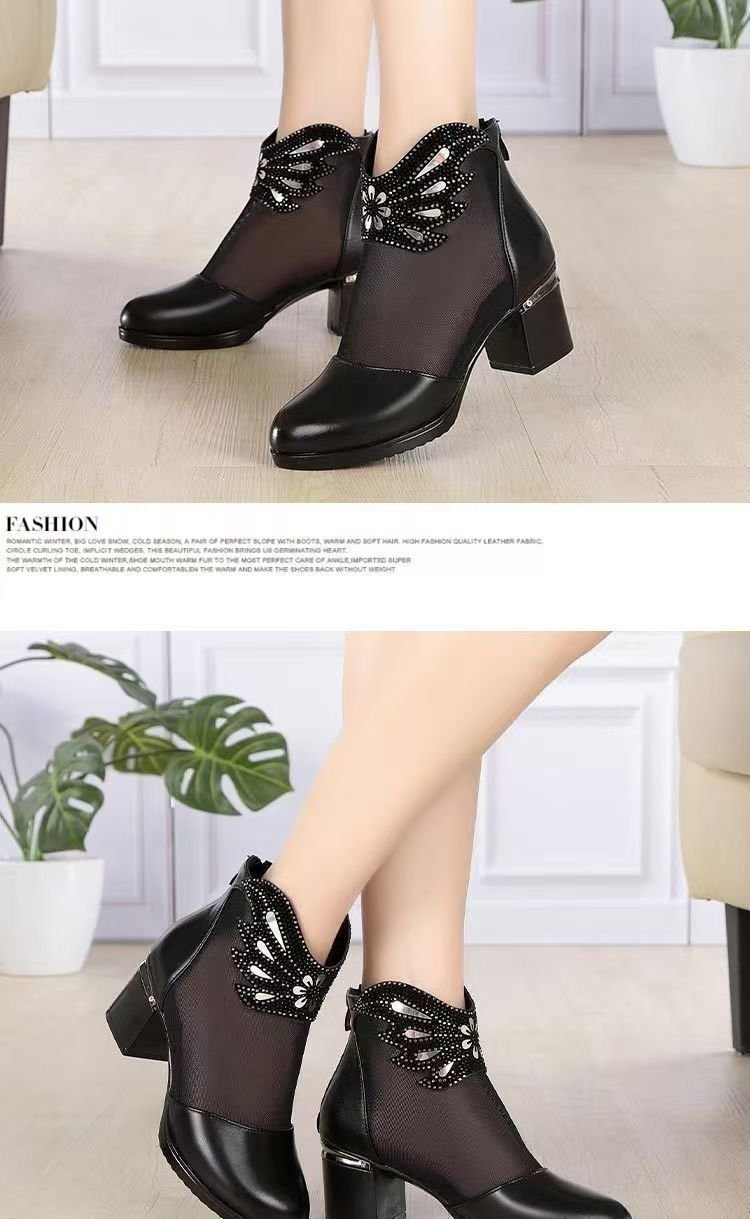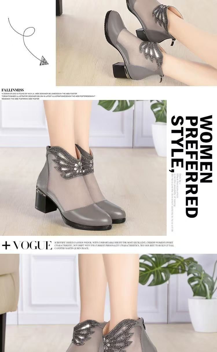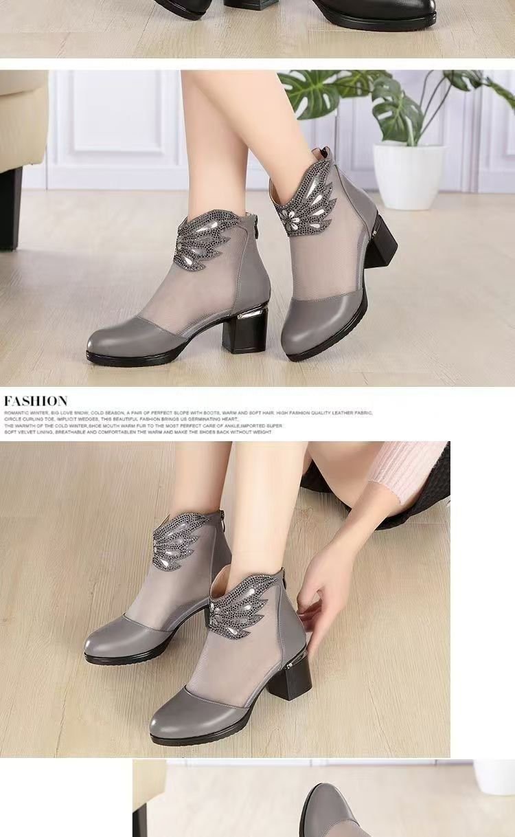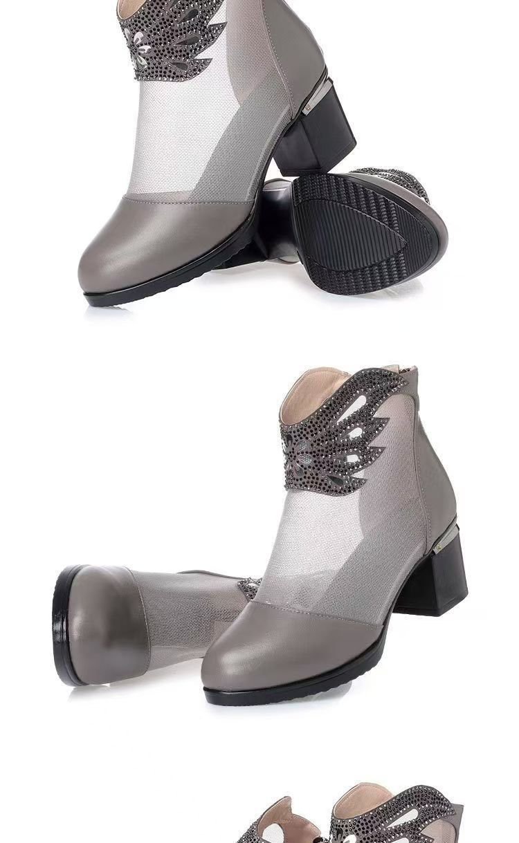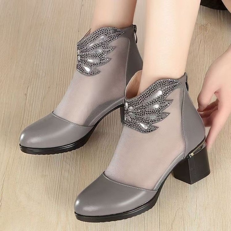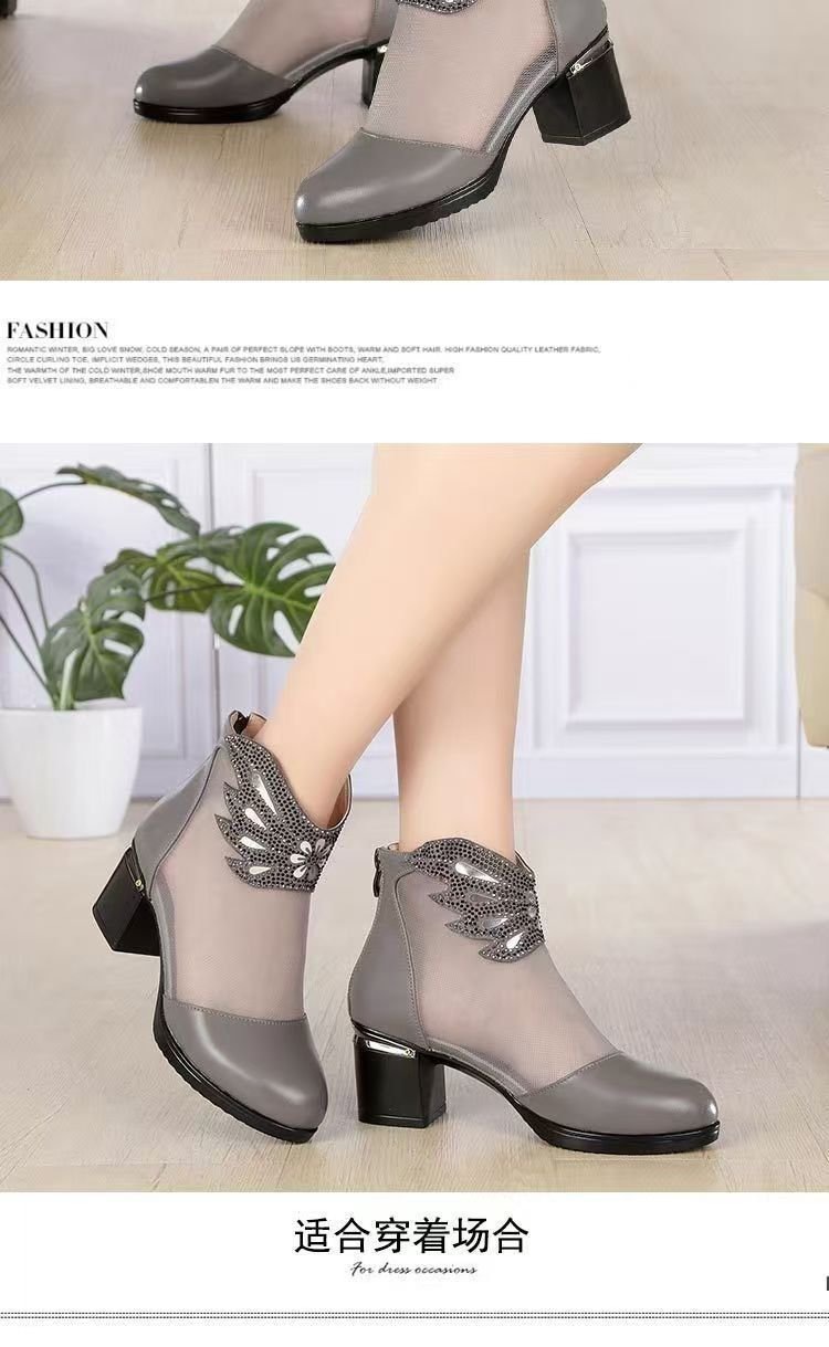 2025 새로운 여성용 샌들 하이힐 샌들 여성용 샌들 여성용 메쉬 부츠 미드 힐 두꺼운 엄마 신발 싱글 부츠 발목 부츠스토어 가기