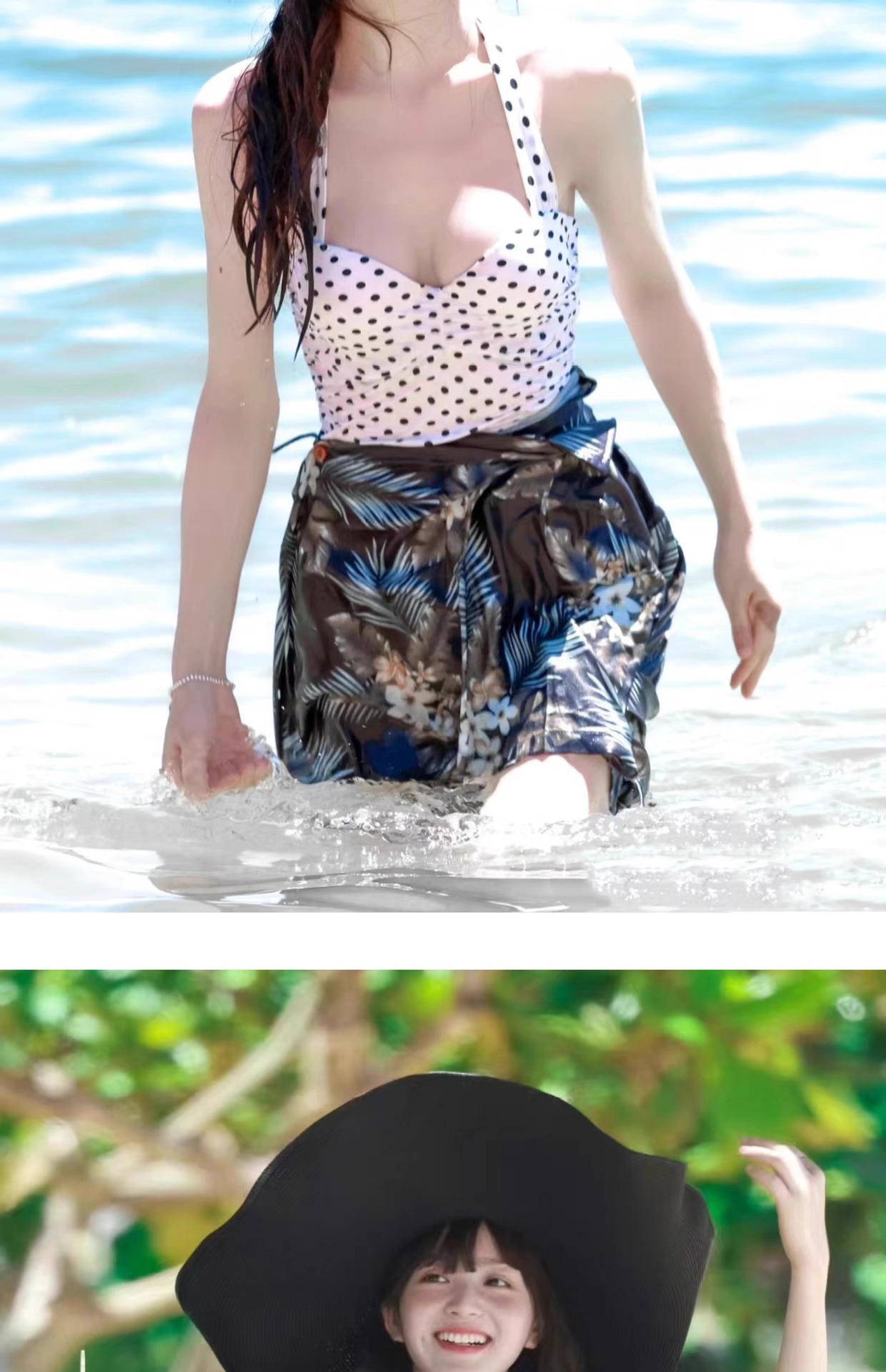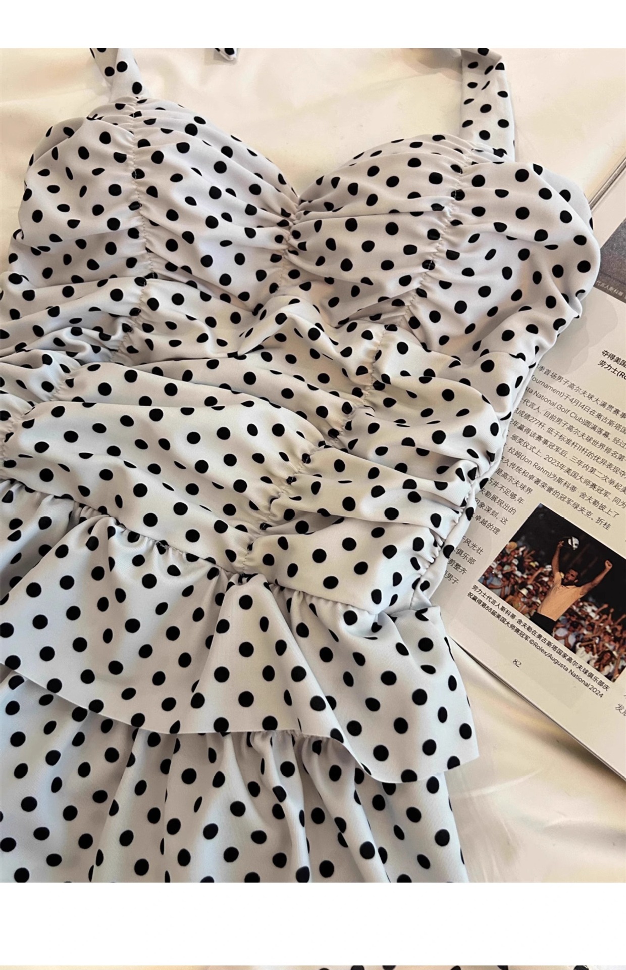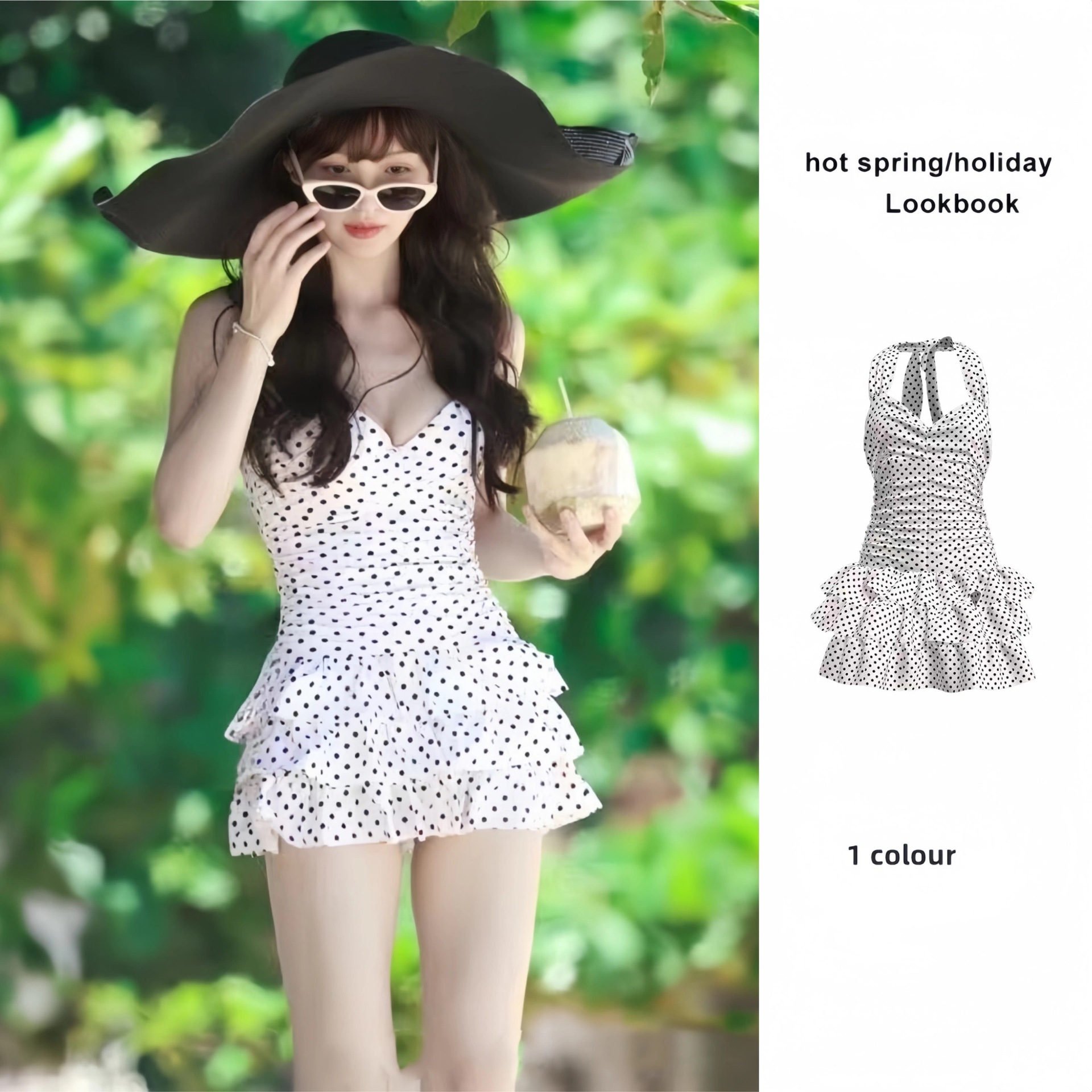 2025 새로운 원피스 스커트 스타일 웨이브 포인트 약간 통통한 수영복 여성 온천 목욕 보수적 슬리밍 섹시한 큰 가슴