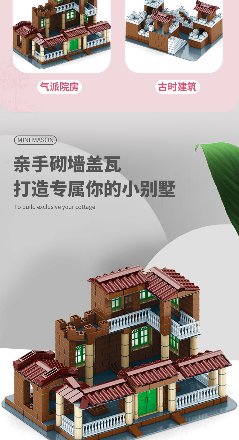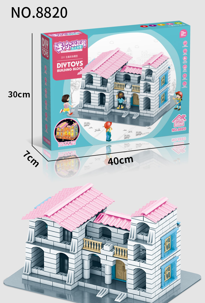 뜨거운 판매 작은 벽돌공 diy 오두막 시뮬레이션 미니 벽돌 건물 빌라 건물 집 어린이 교육 장난감스토어 가기