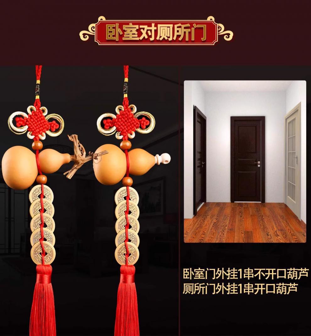진짜 조롱박 펜던트는 문 맞은 편 입구 길조 매듭을 해결합니다. 5 명의 황제 돈 열기 문 순수한 구리 구리