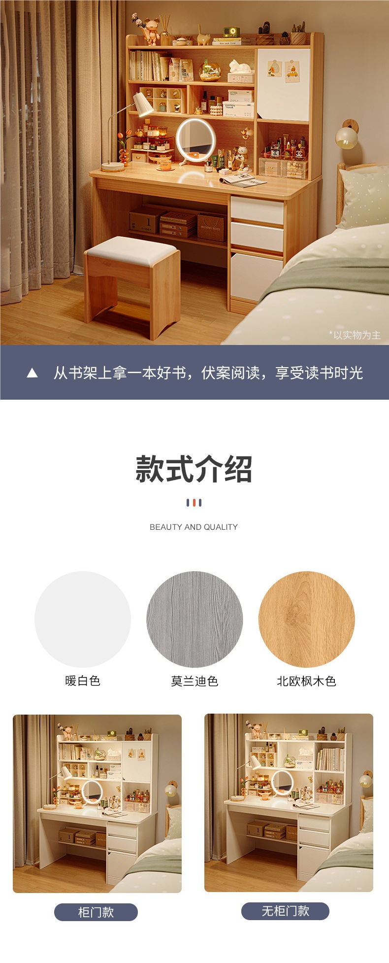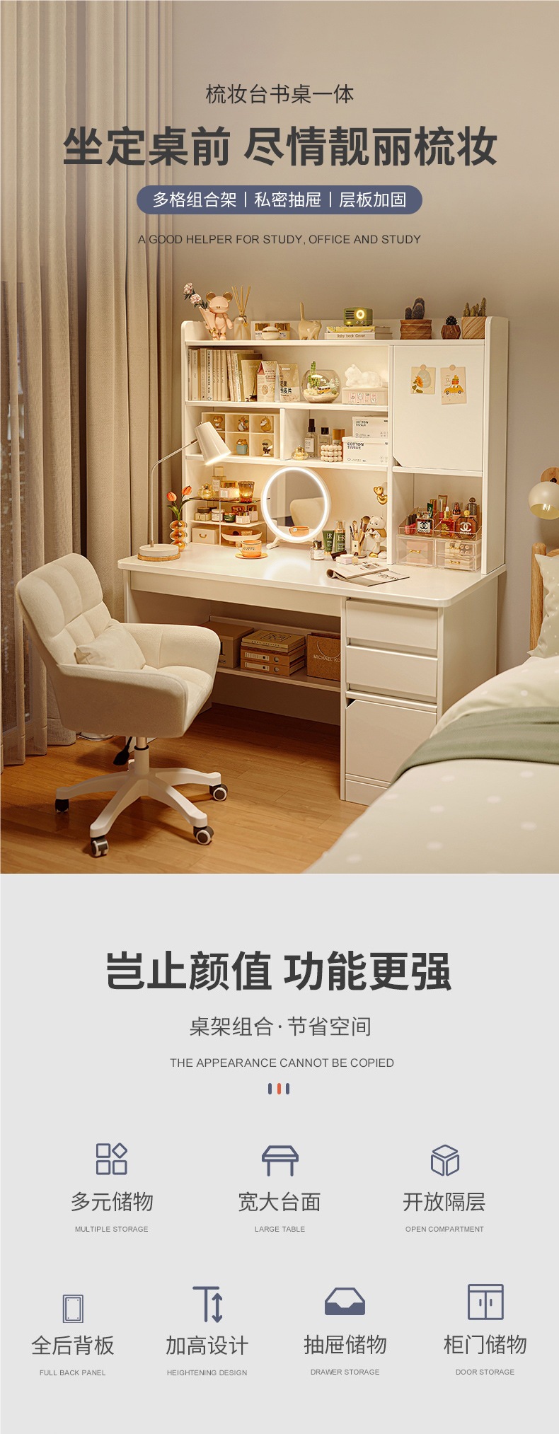 컴퓨터 책상 드레싱 테이블 통합 침실 간단한 현대 책상 메이크업 테이블 2 대 1 메이크업 캐비닛 거울 침대 옆 새로운스토어 가기