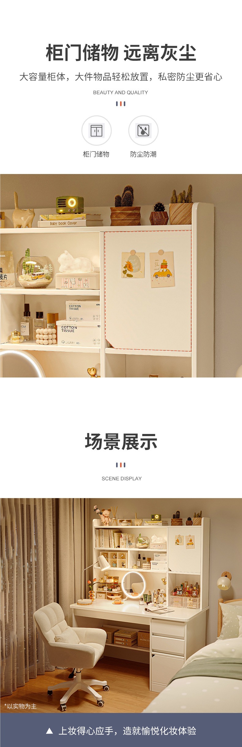• + 크로스보더 + [메인사진 업그레이드] 100cm 테이블 + LED 조명거울 + 컴퓨터 의자 모란디 컬러